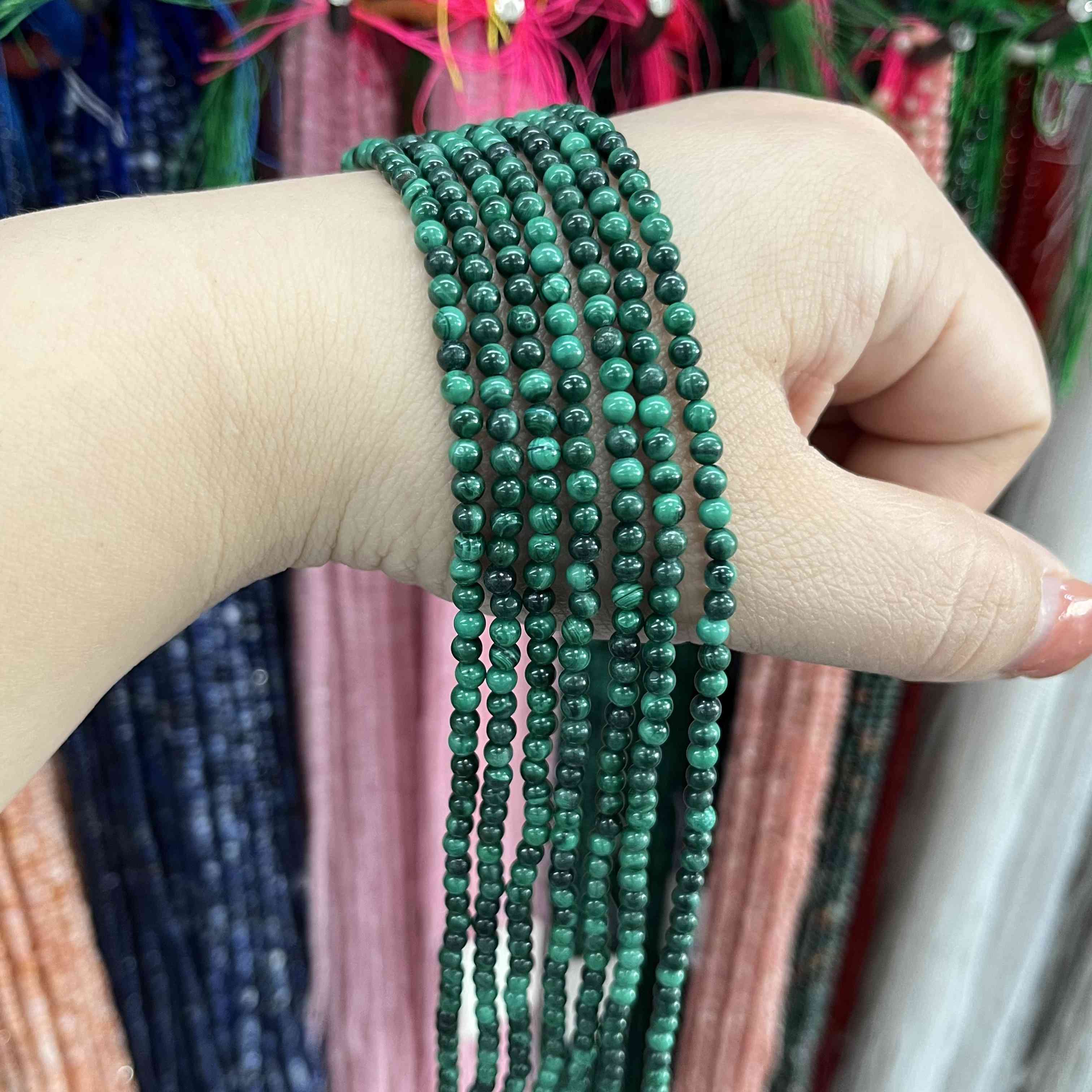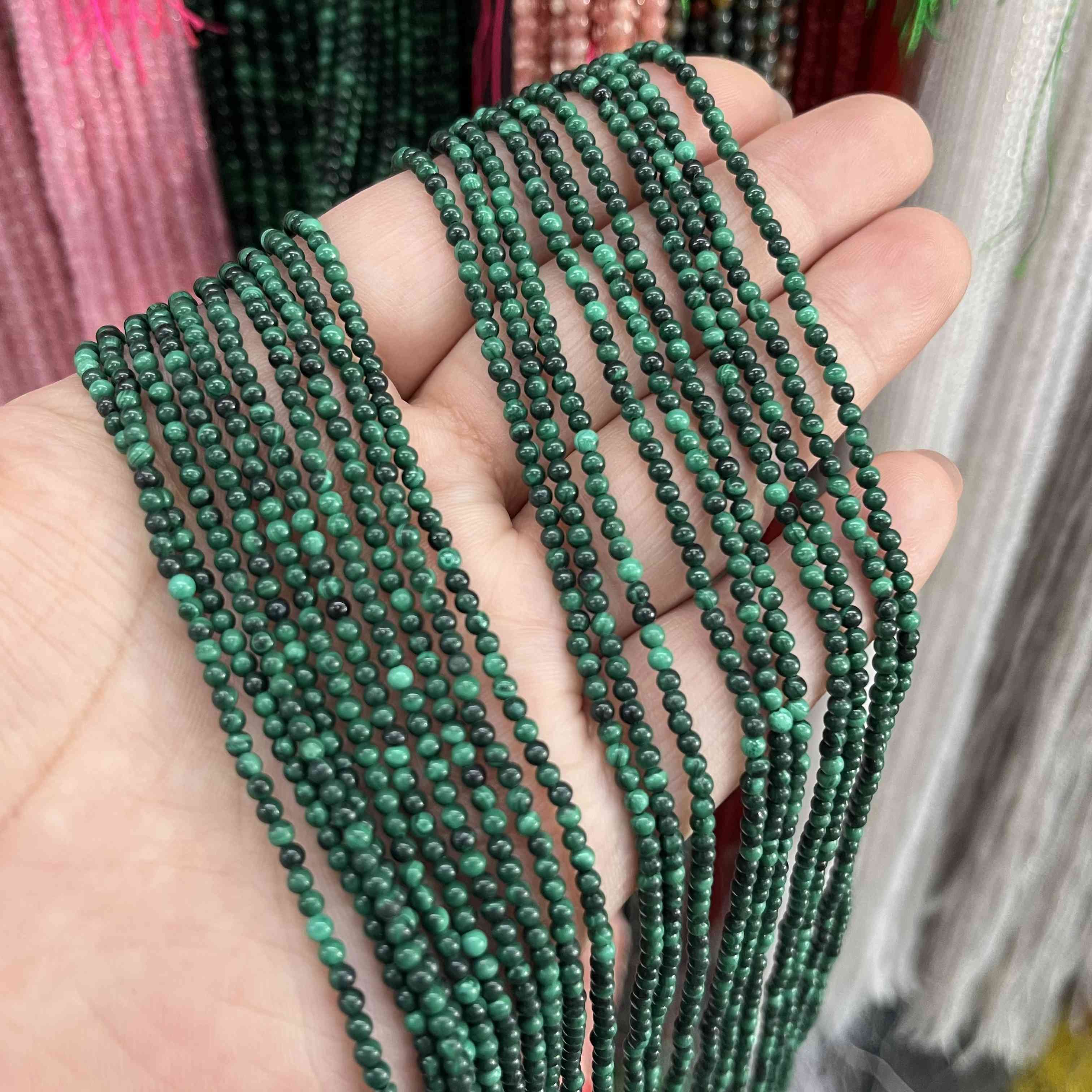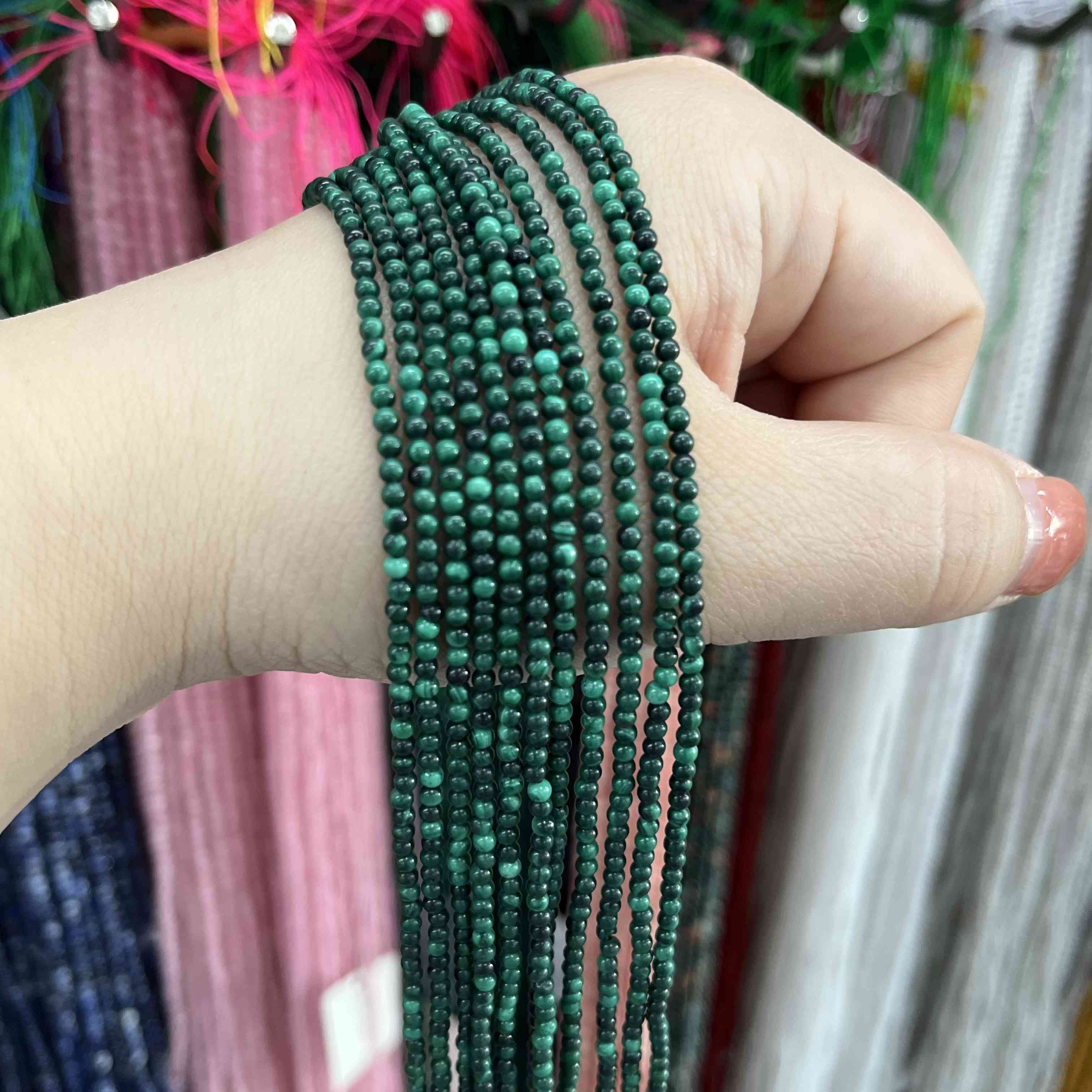 Golden fork natural green 3mm malachite round beads loose beads semi-finished necklace bracelet with beads hand-beaded jewelry accessories 2mm