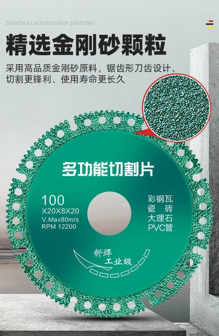 Shushe composite multi-functional cutting piece, ceramic tile, rock slab, marble, color steel tile, iron sheet, metal angle grinder, brazing and dry slicing, sharp and durable/quick cutting, 5 pieces in a pack, four free