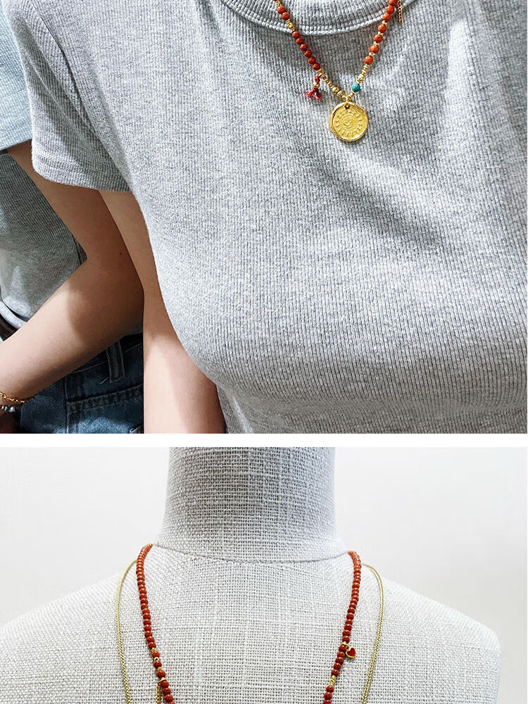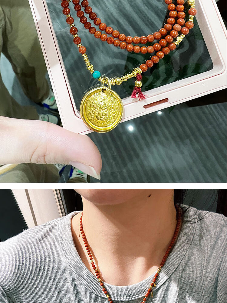 Ouyin Natural South Red Agate Necklace Millet Beads Clavicle Chain Sweater Chain Yellow God of Wealth Life Year Wealth Bracelet Chain Universal Chain South Red Necklace