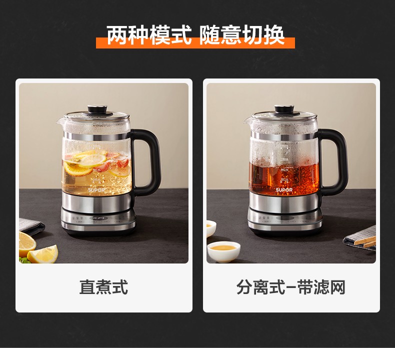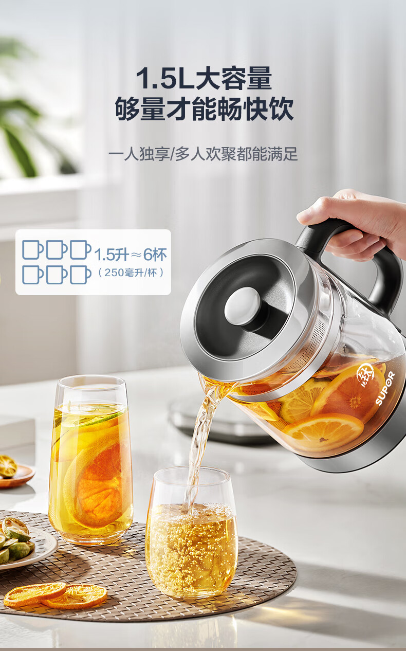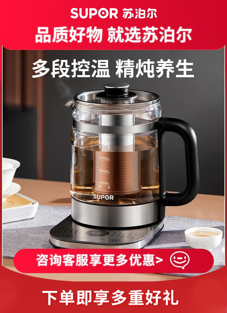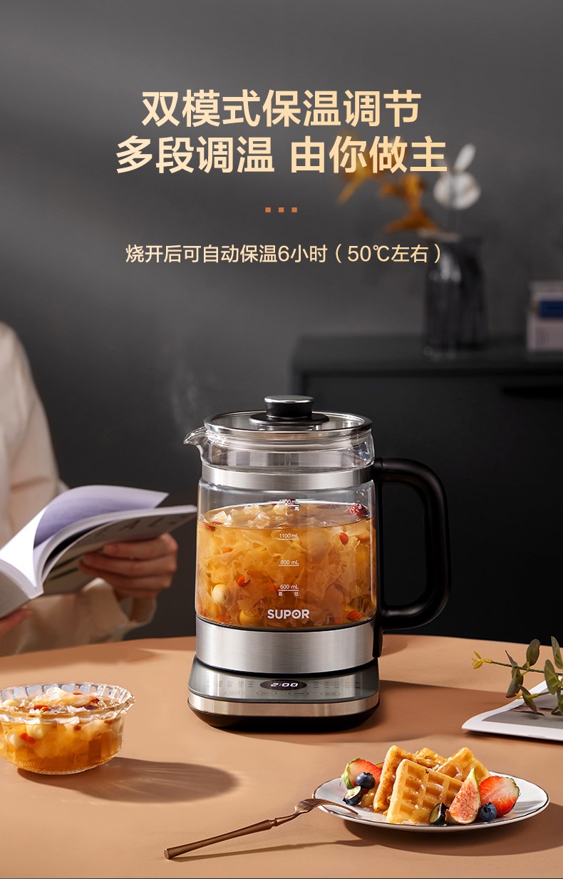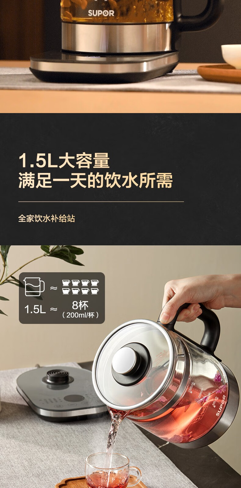 SUPOR Health Kettle Business Tea Boiler Tea Kettle Thickened Glass Bird's Nest Kettle 1.5L Electric Kettle Electric Kettle Scented Tea Electric Tea Kettle Tea Boiler New Product Launch/1.5L Upgraded Pure Titanium Heating Plate