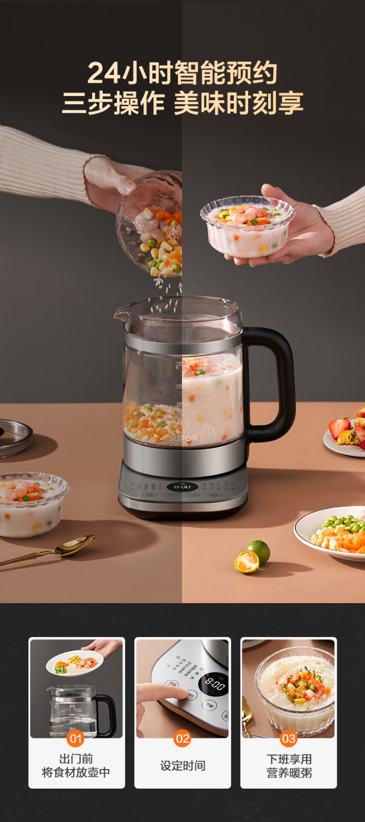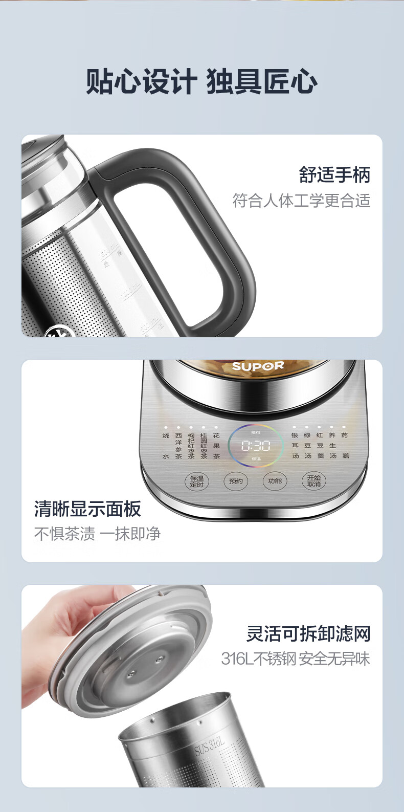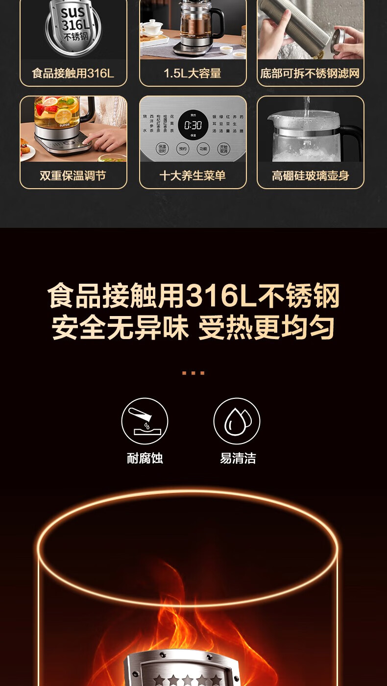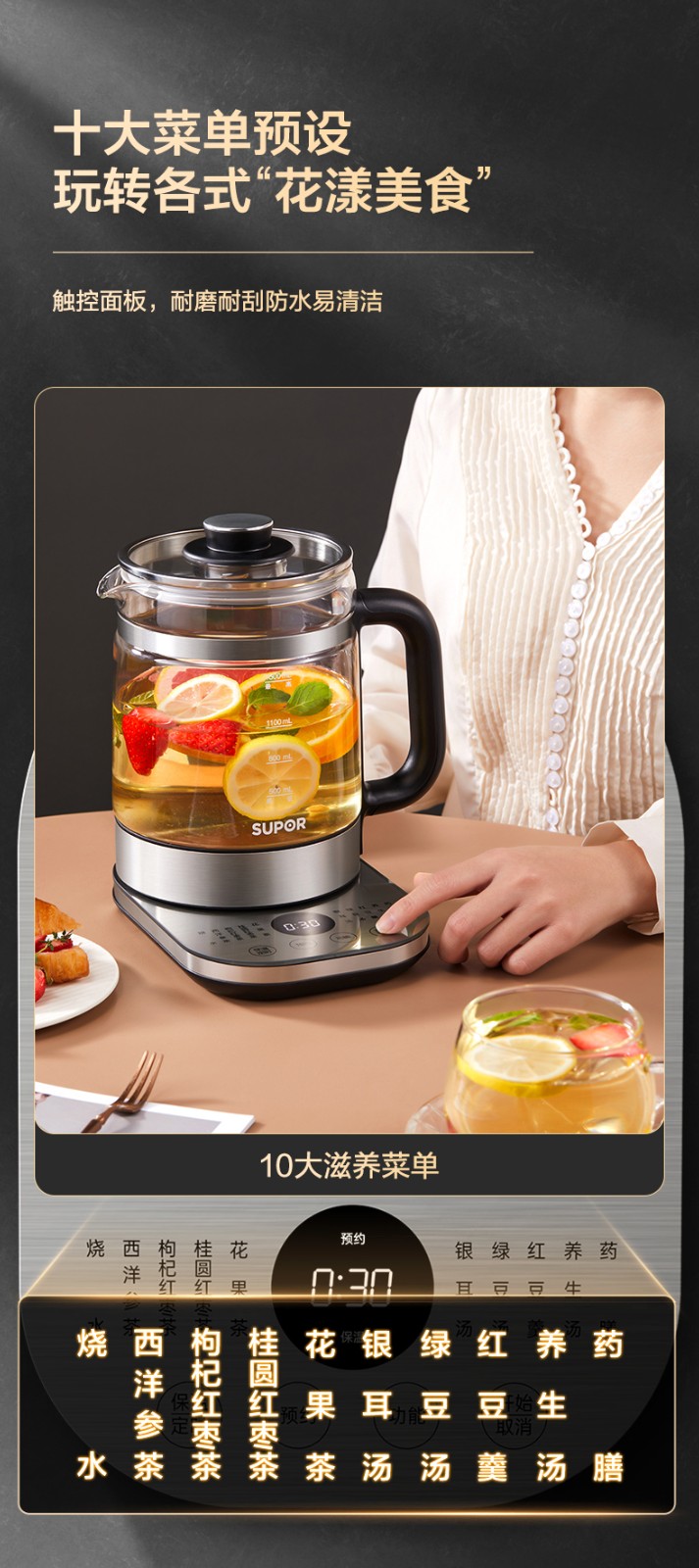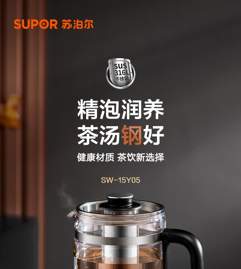 SUPOR Health Kettle Business Tea Boiler Tea Kettle Thickened Glass Bird's Nest Kettle 1.5L Electric Kettle Electric Kettle Scented Tea Electric Tea Kettle Tea Boiler New Product Launch/1.5L Upgraded Pure Titanium Heating Plate