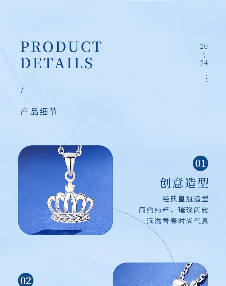 China Gold (CHINA GOLD) Crown Platinum Pendant for Women PT950 Platinum Necklace Clavicle Chain Wedding and Birthday Gift for Girlfriend and Wife Platinum Crown Pendant About 1.3g Free Silver Chain