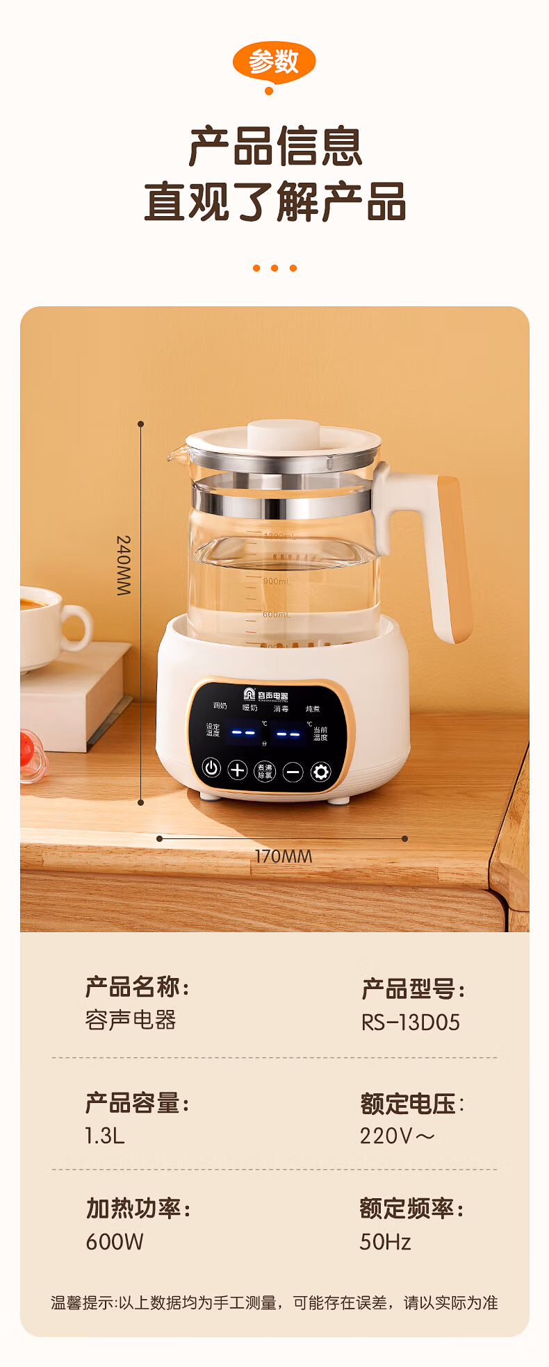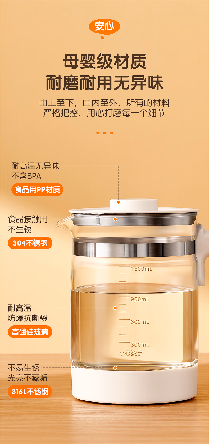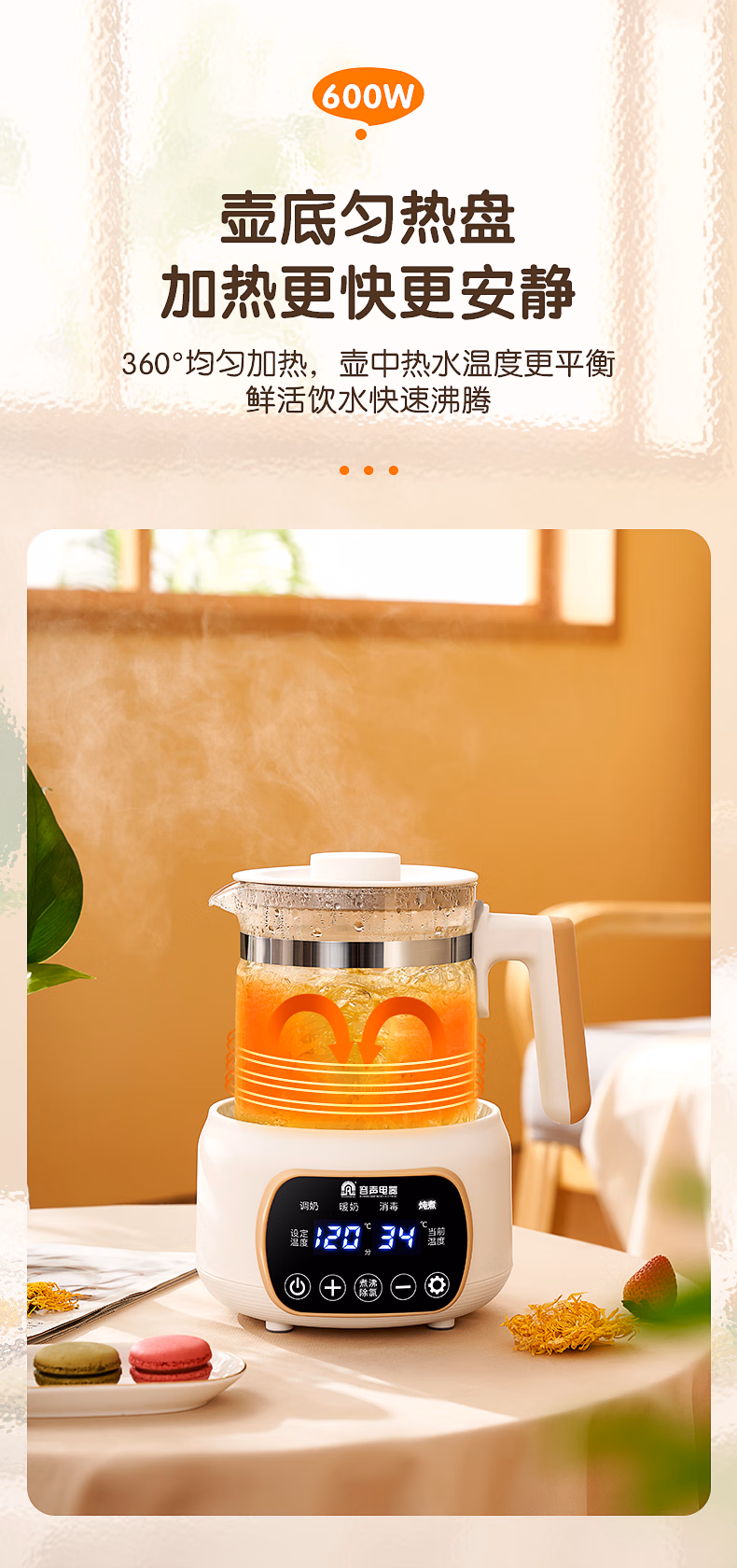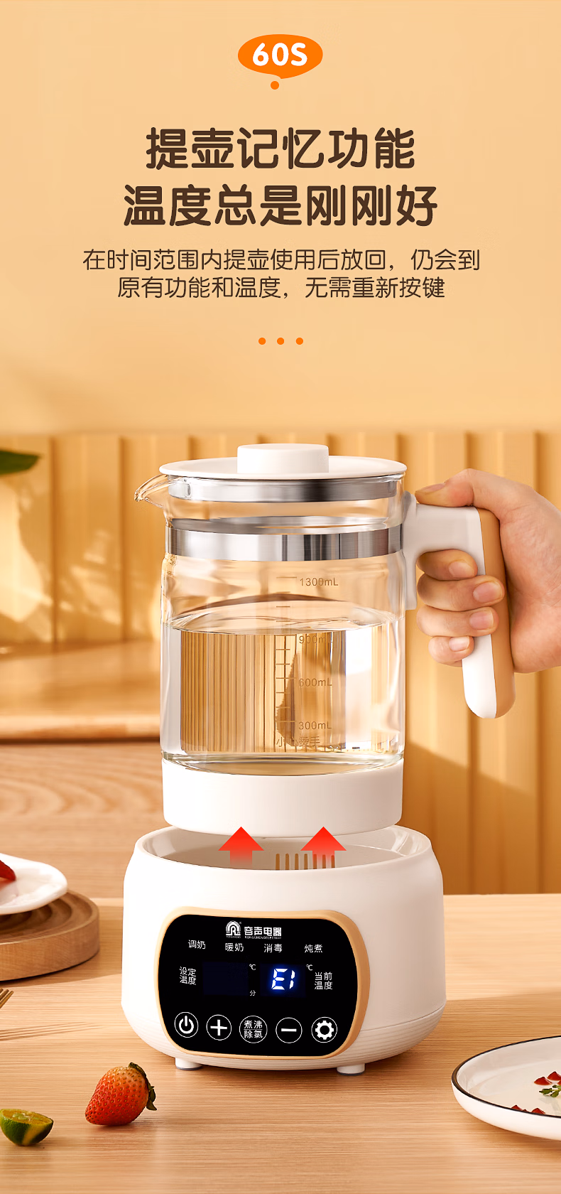 RONGSHENG Health Pot Large Capacity Fully Automatic Thickened Glass Multifunctional Insulation Electric Kettle Flower Teapot Health Cup Constant Temperature Kettle White 1.3L With Filter