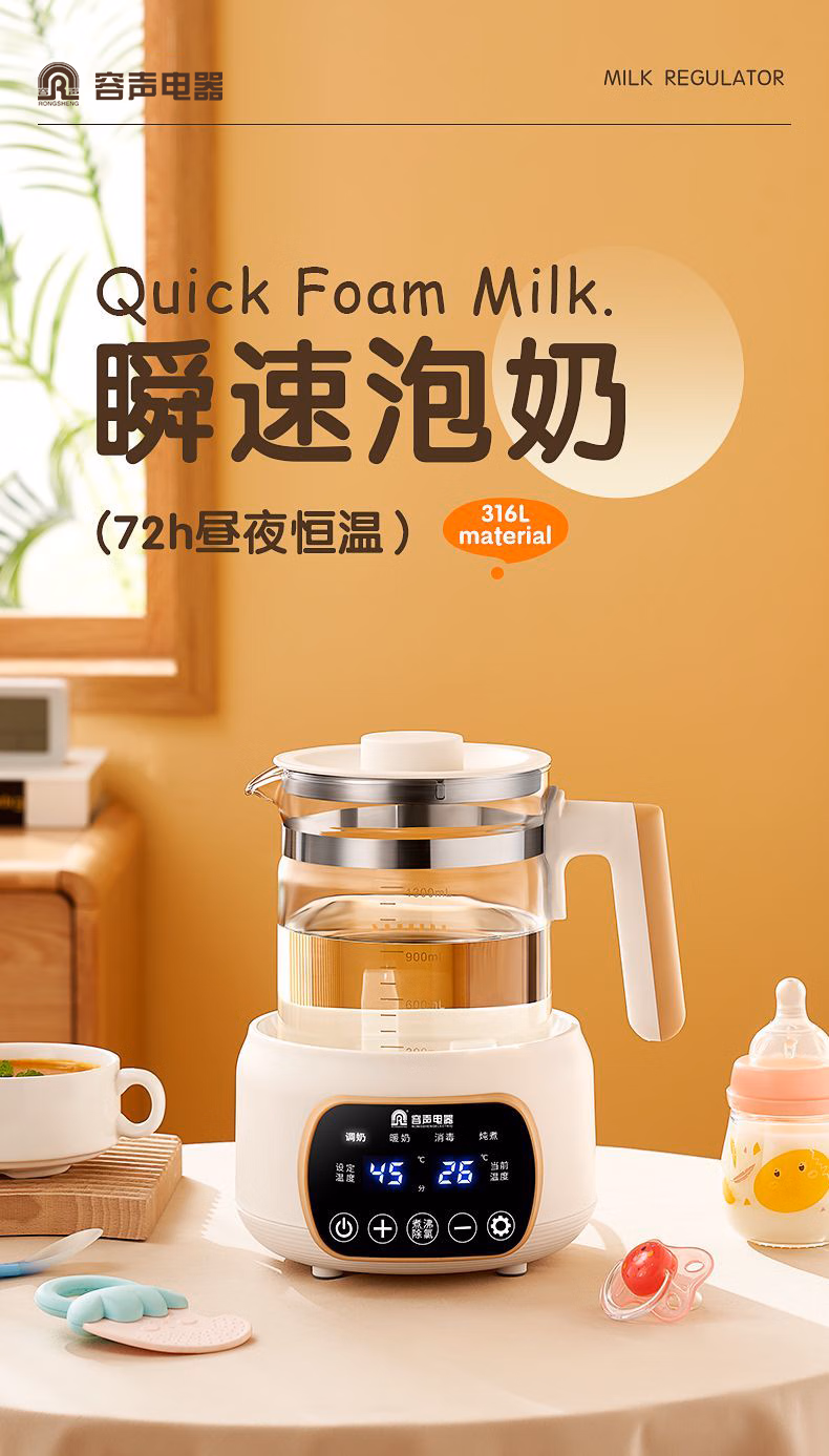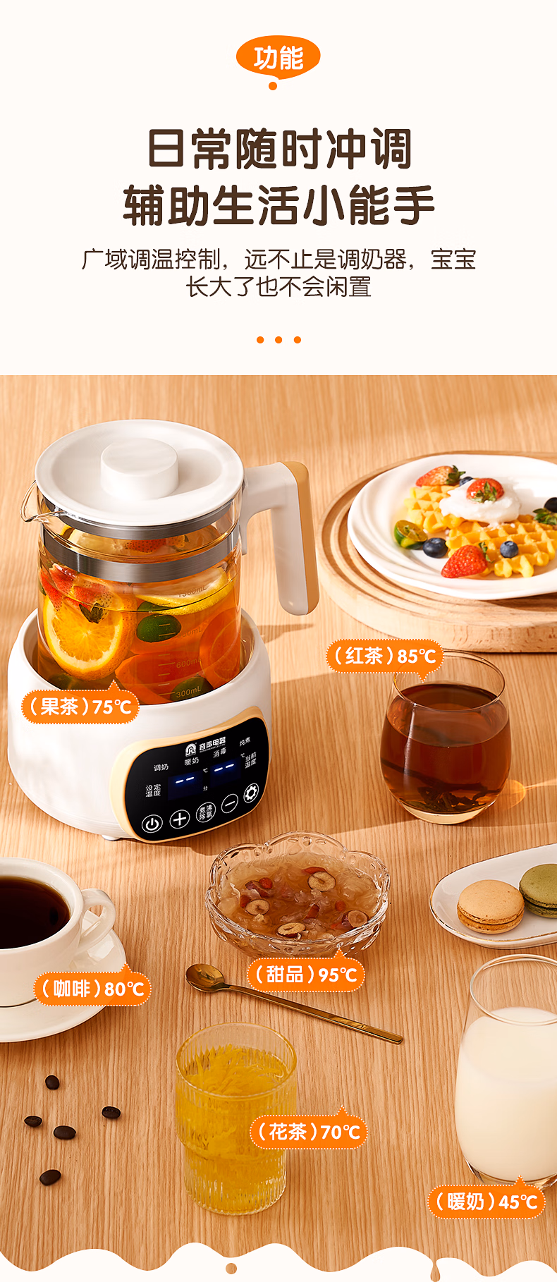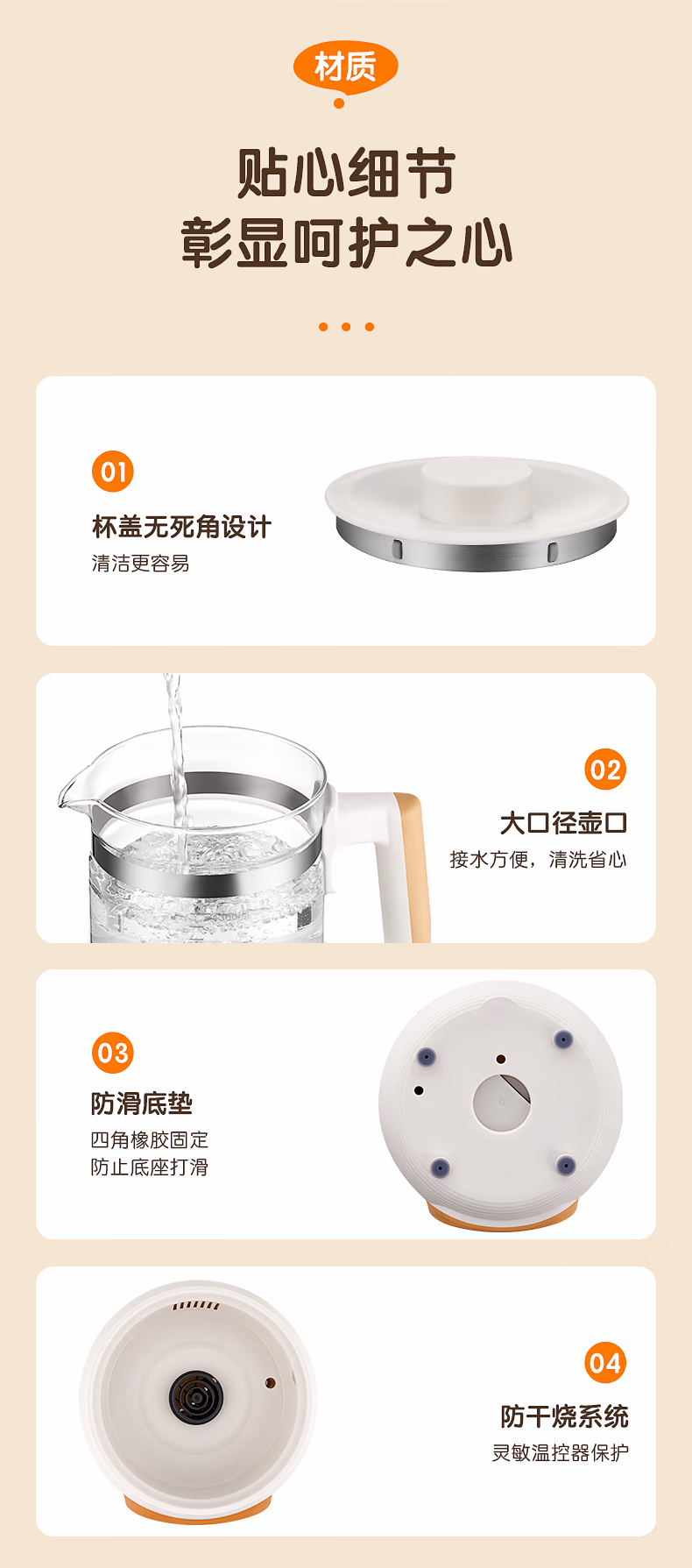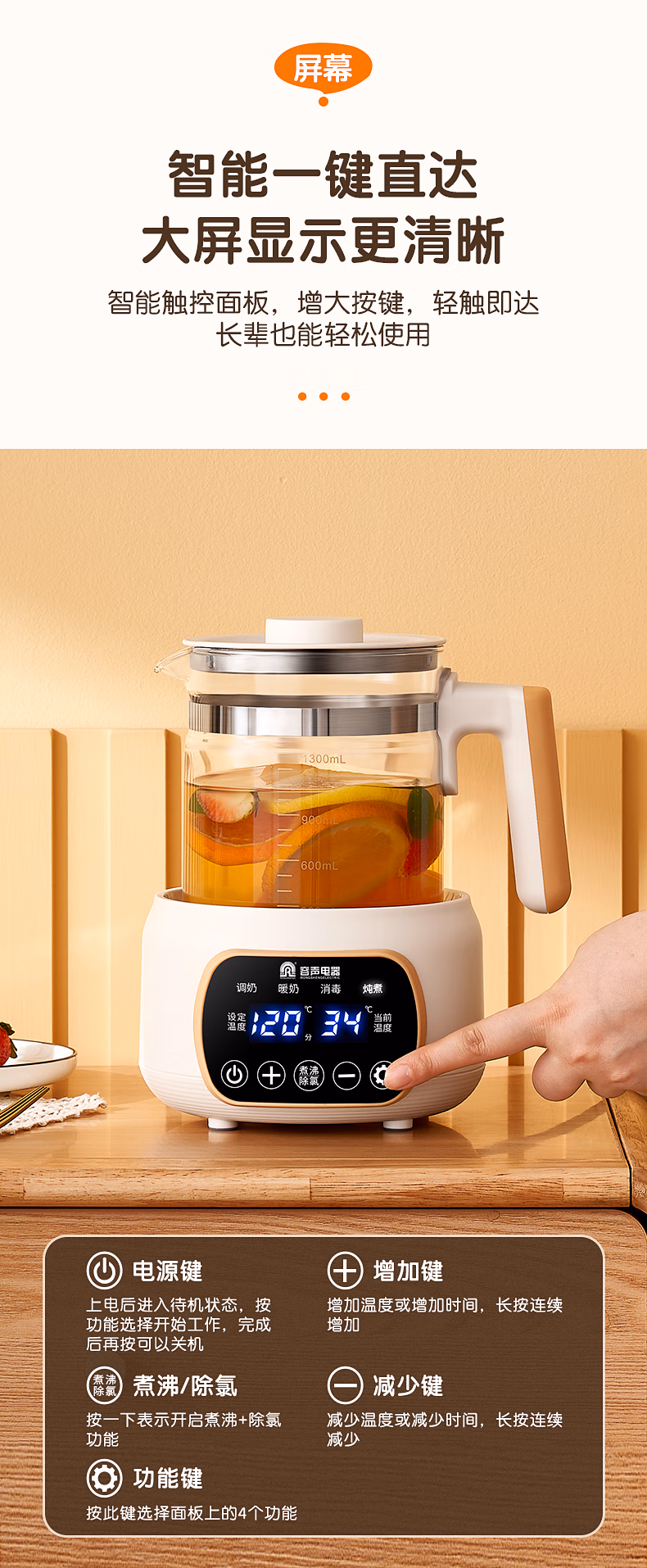 RONGSHENG Health Pot Large Capacity Fully Automatic Thickened Glass Multifunctional Insulation Electric Kettle Flower Teapot Health Cup Constant Temperature Kettle White 1.3L With Filter
