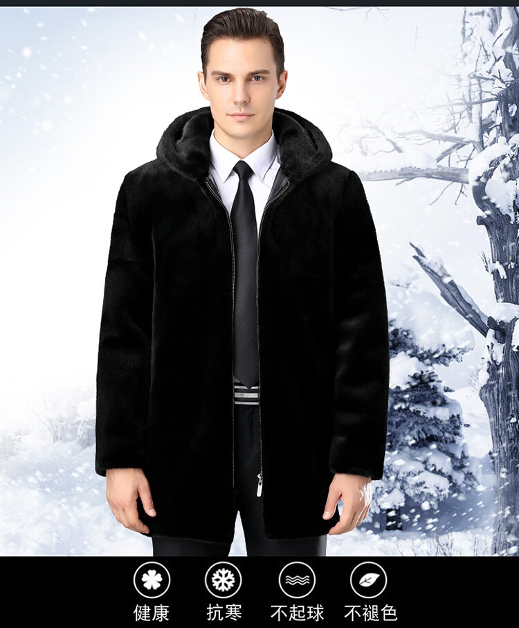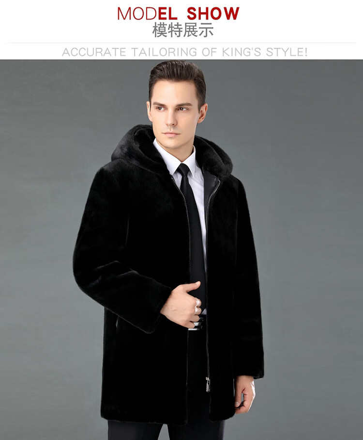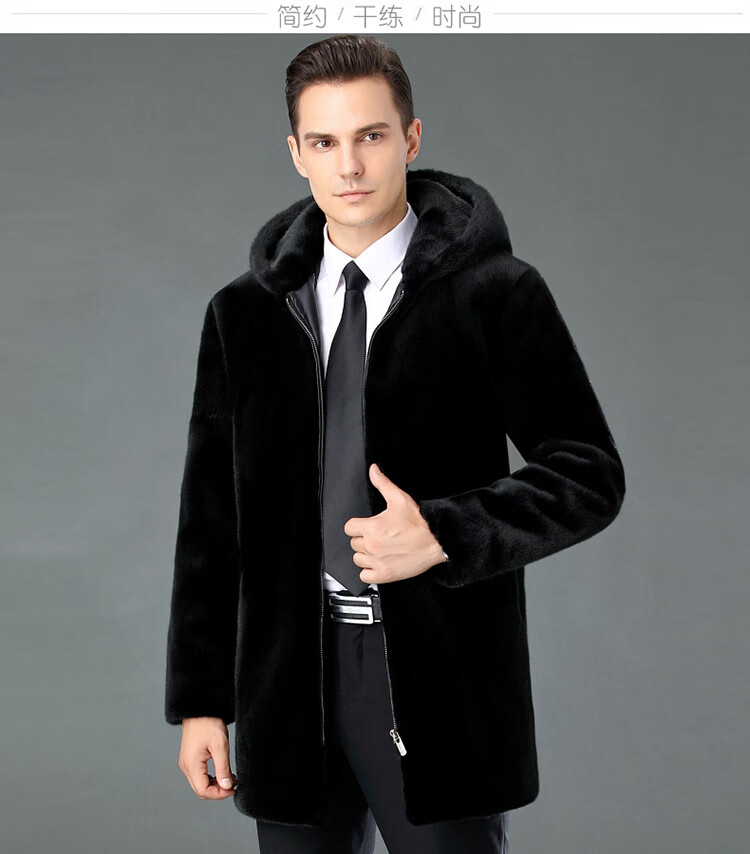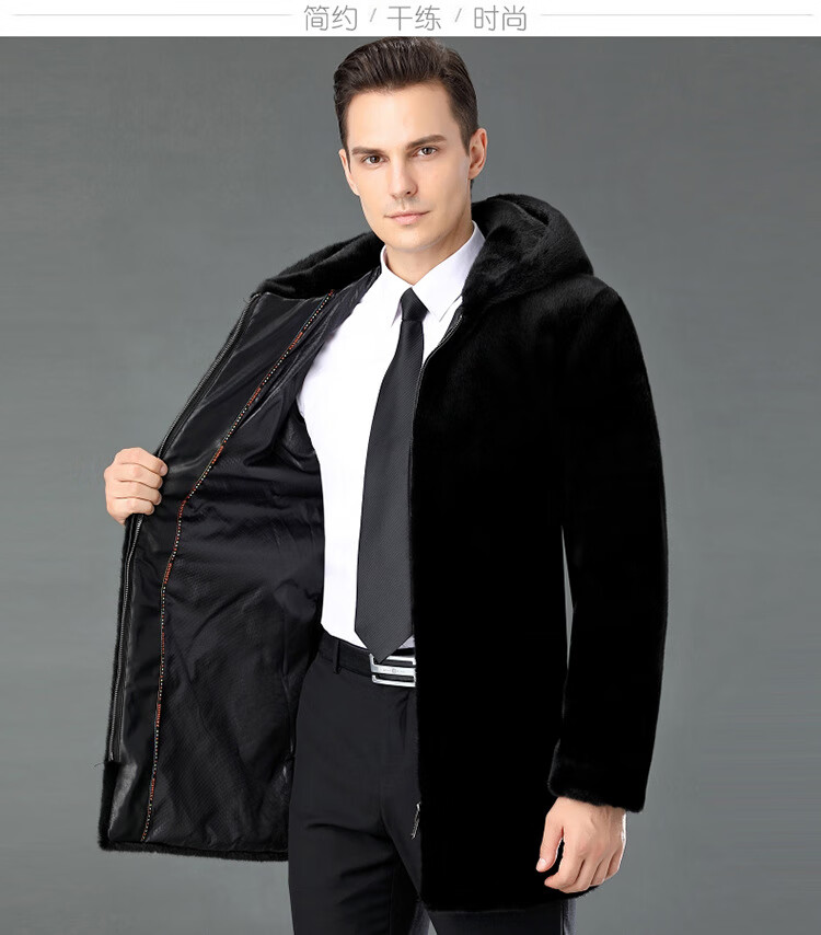 MONTAGUT New Montagut 2024 New Haining Mink Fur Jacket Men's Lapel Fashion Whole Mink Mink Men's Leather Black L 175