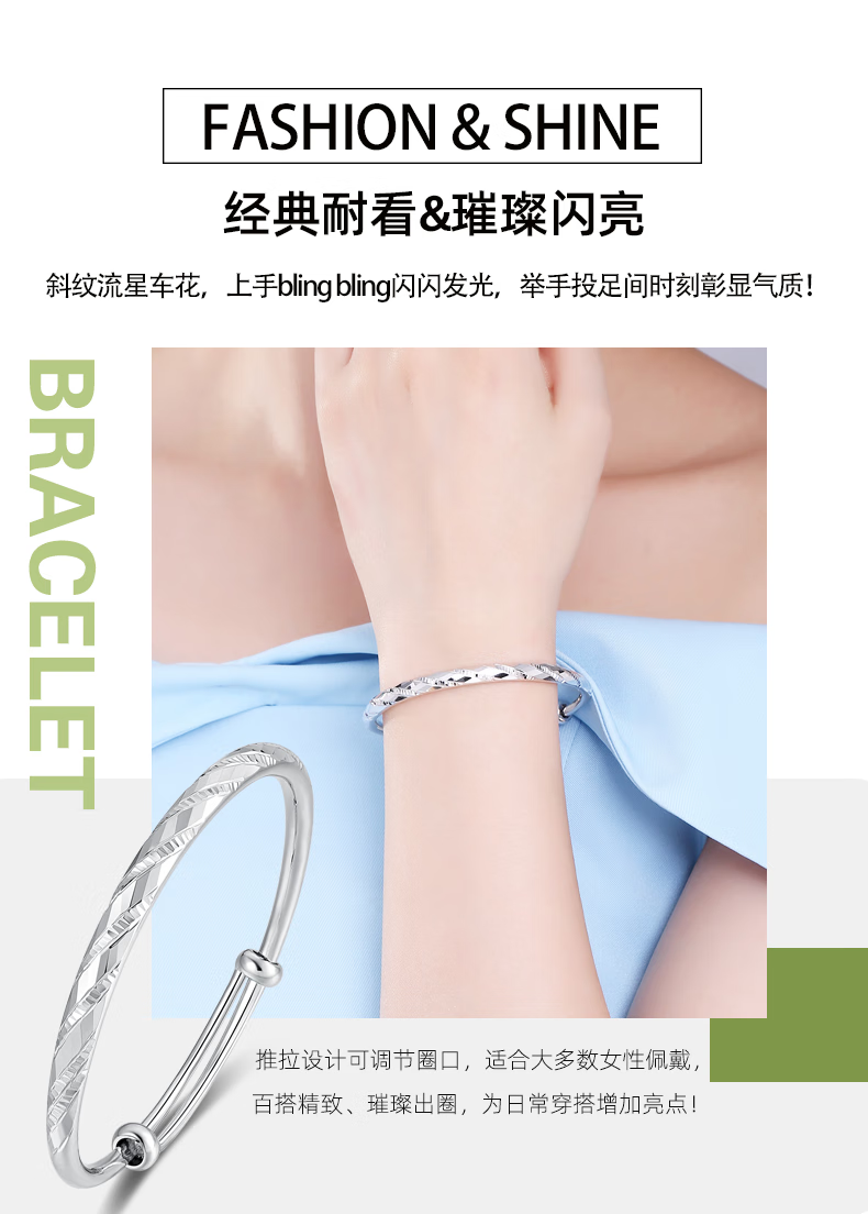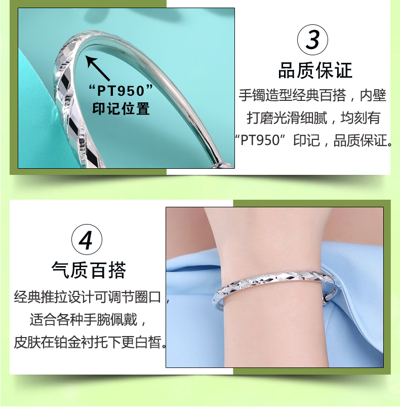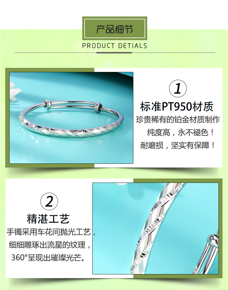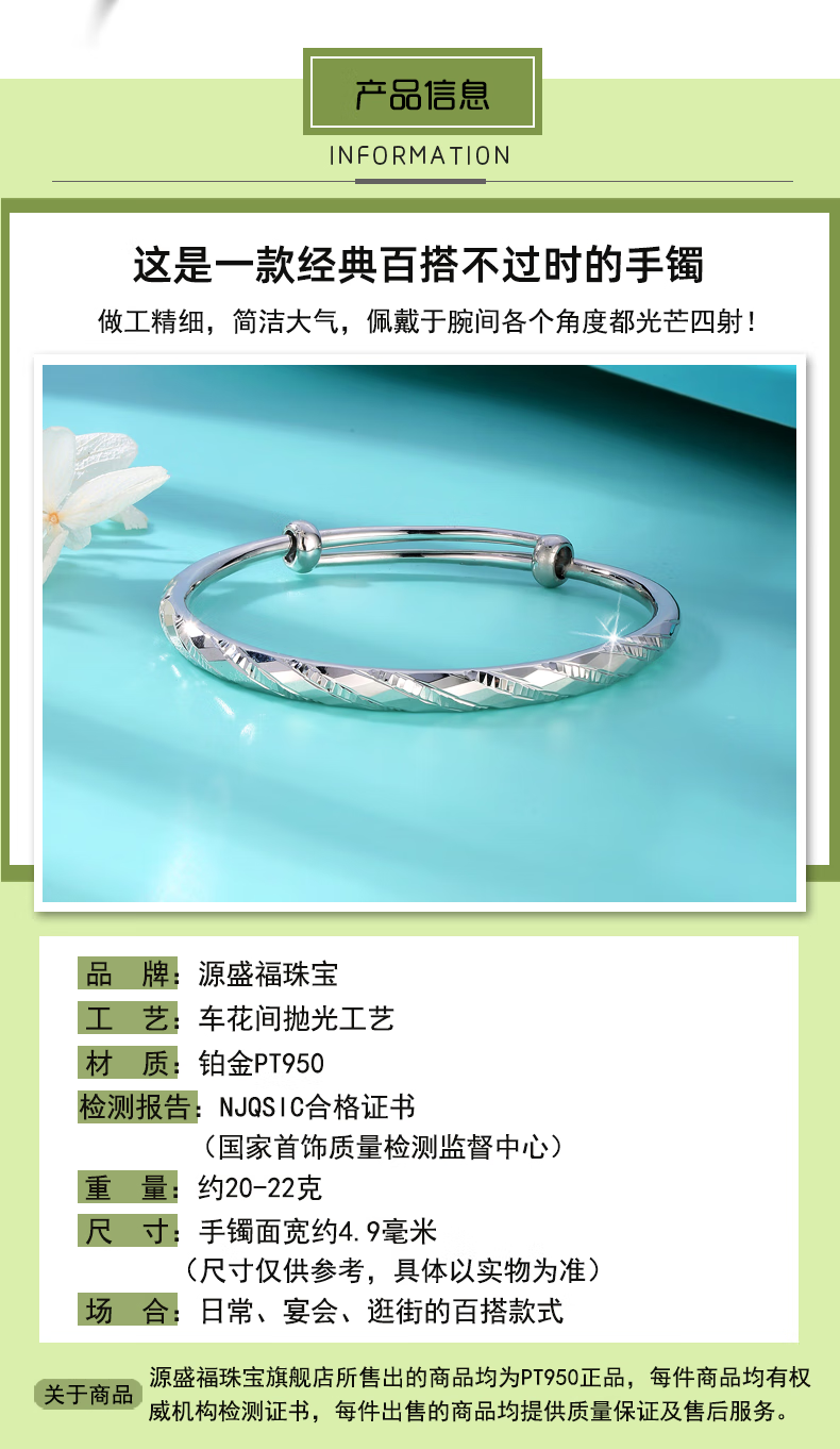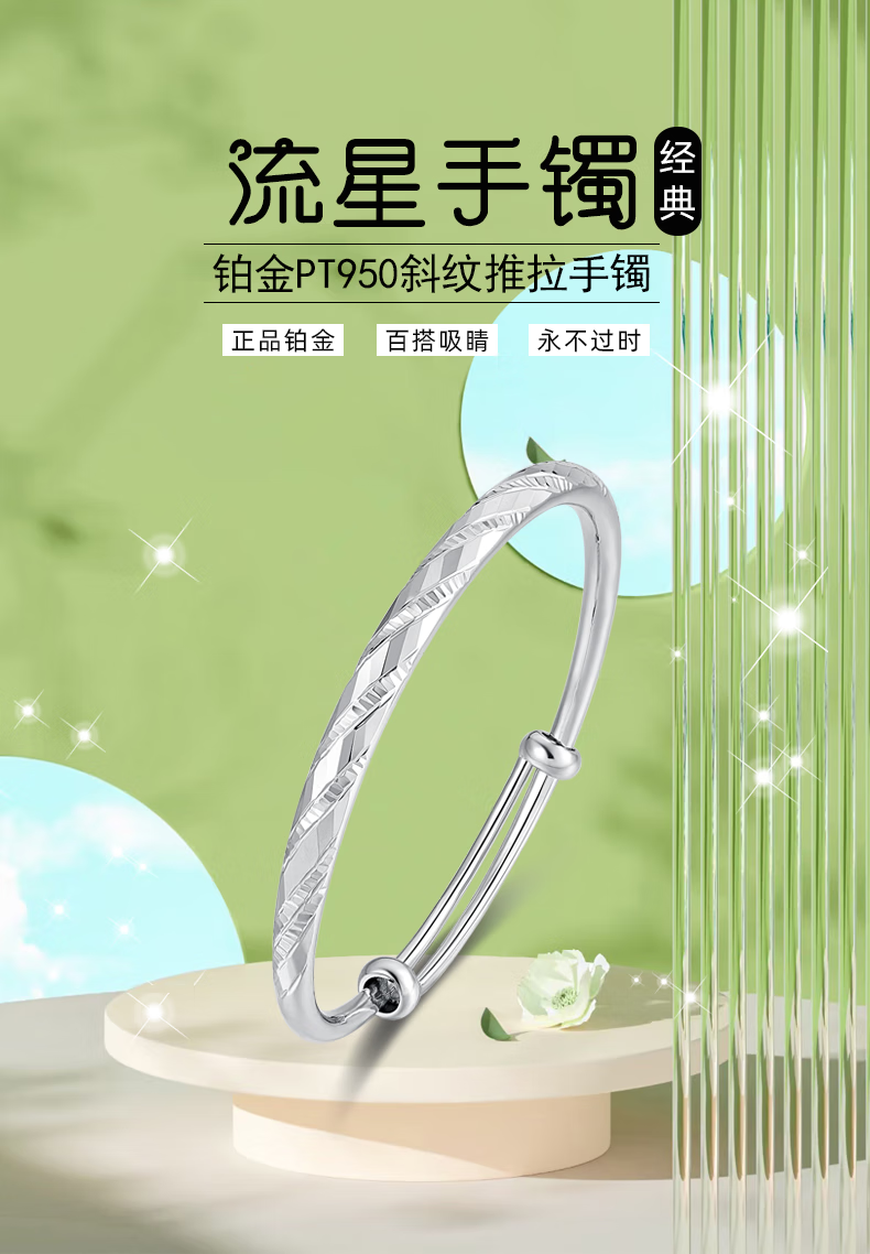 Yuan Shengfu's new PT950 push-pull twill meteor platinum bracelet, genuine women's platinum adjustable bracelet, 24.81 grams