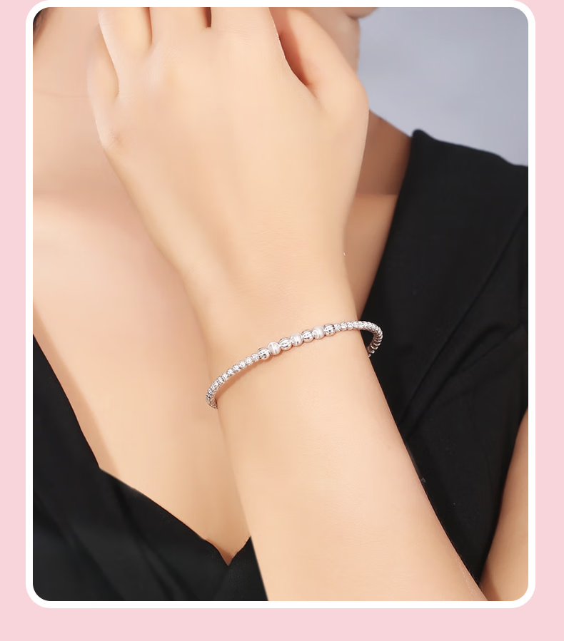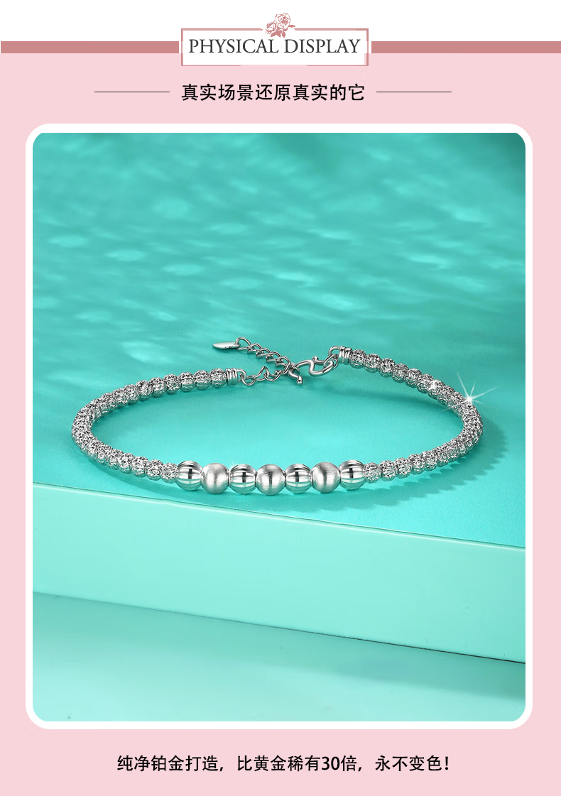 Yuan Shengfu's new PT950 fashionable, simple and versatile double-ball platinum bracelet, genuine platinum round ball open bracelet, 7.93g/ring 56mm