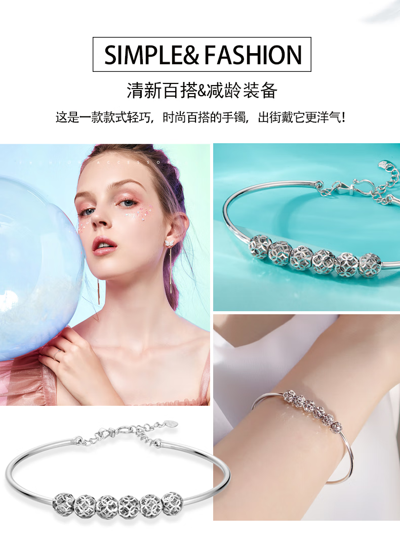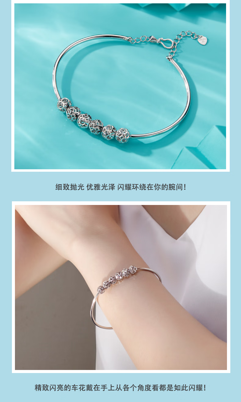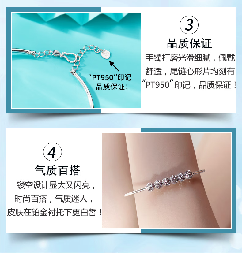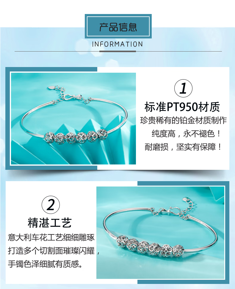 Yuan Shengfu's new PT950 high-quality fashionable hollow ball platinum bracelet, genuine platinum transfer beads, women's hand jewelry, 7.82g, 14-15.5CM