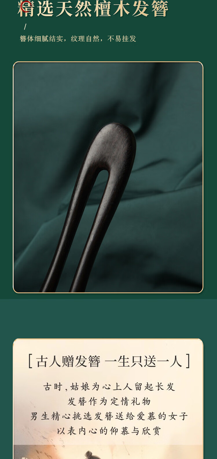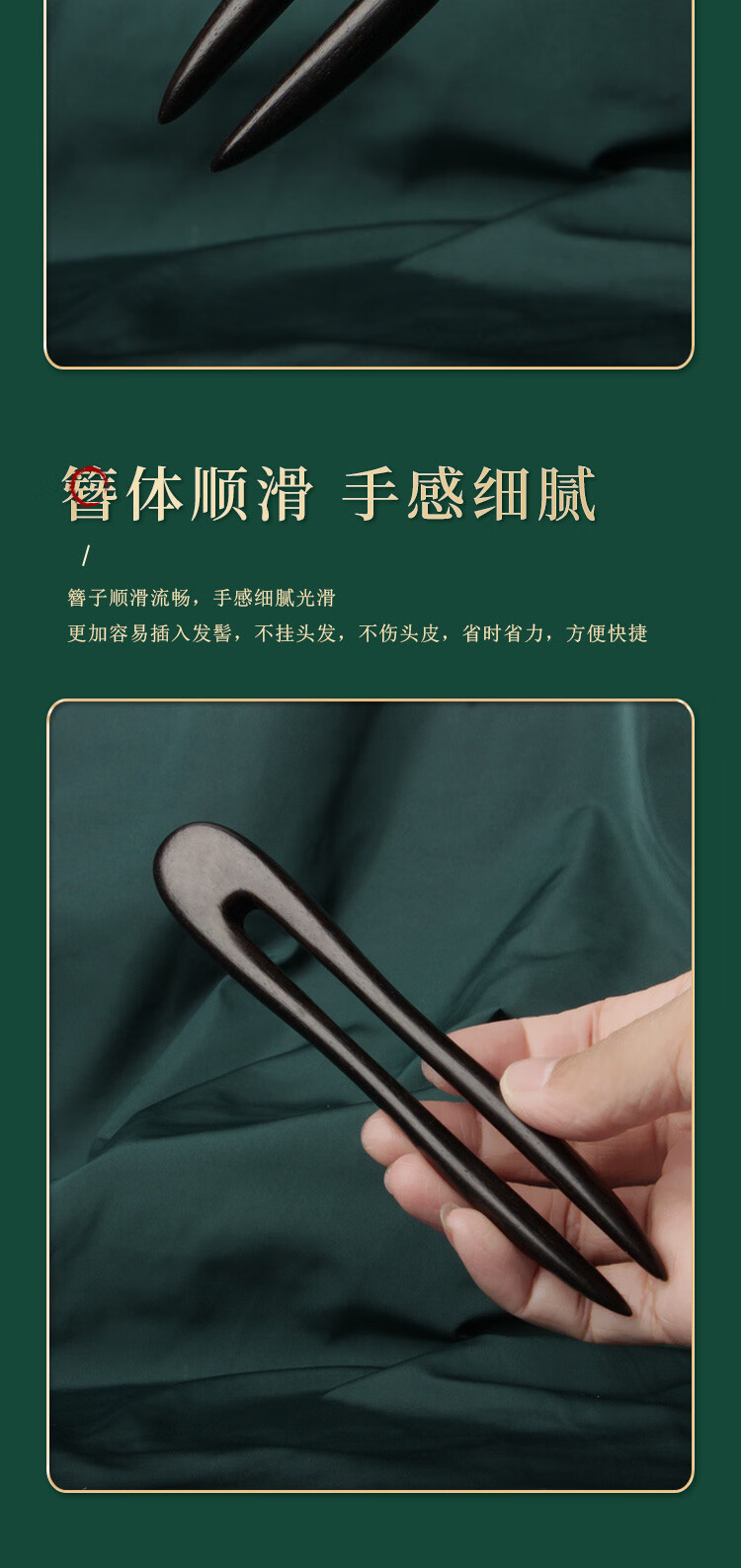 Beyou retro ebony hairpin U-shaped double hairpin extended women's high-end antique style new Chinese style hairpin daily hairpin U-shaped double hairpin ebony