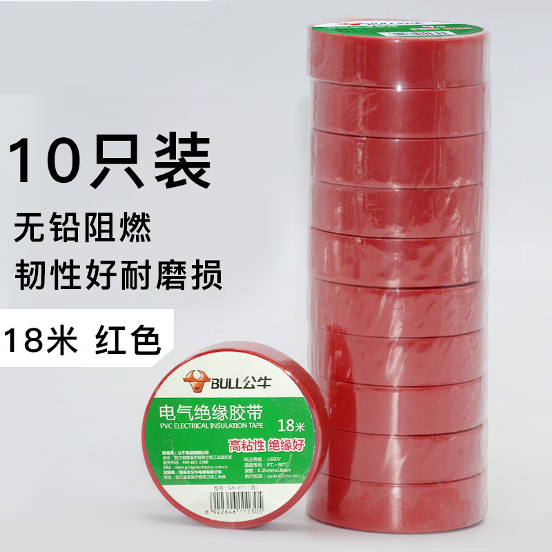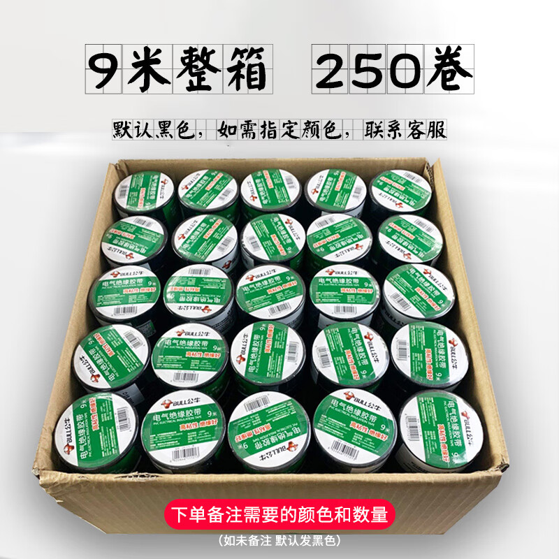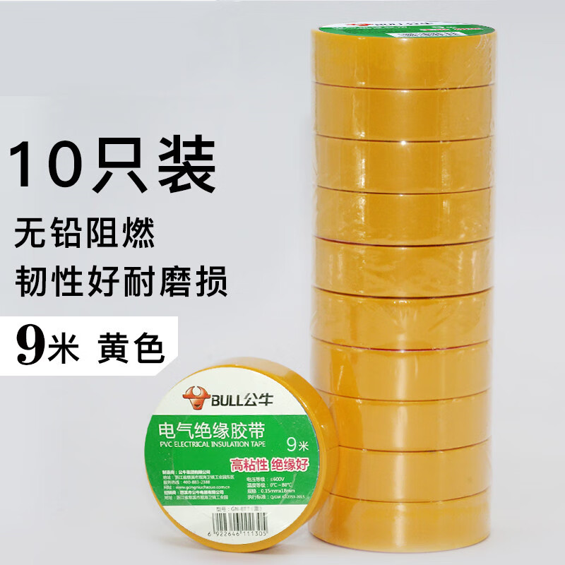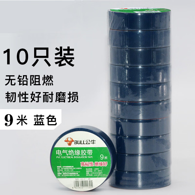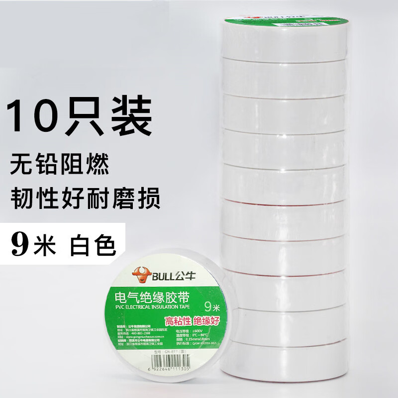 Bull brand wall switch accessories insulating tape lead-free flame retardant tape 9 meters electrical tape PVC tape custom black 9 meters 10 pieces