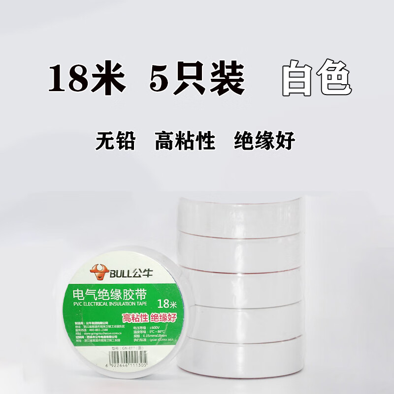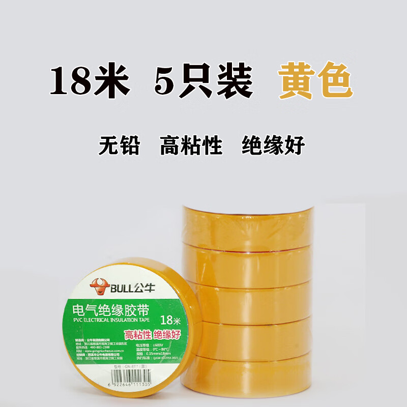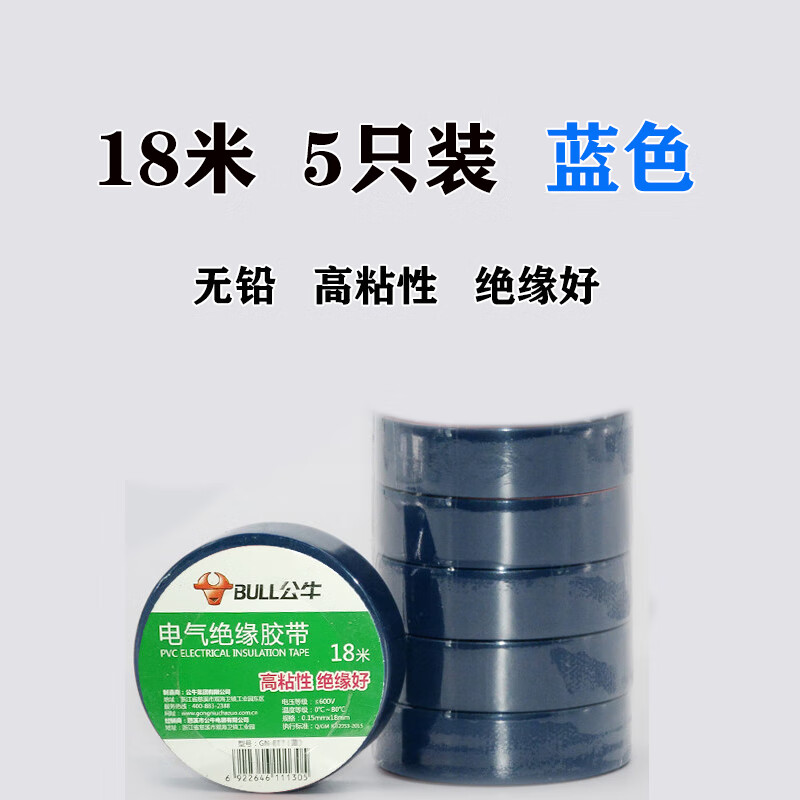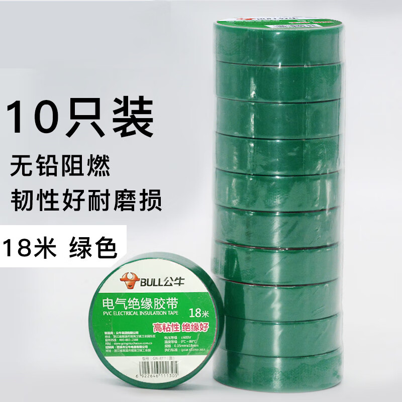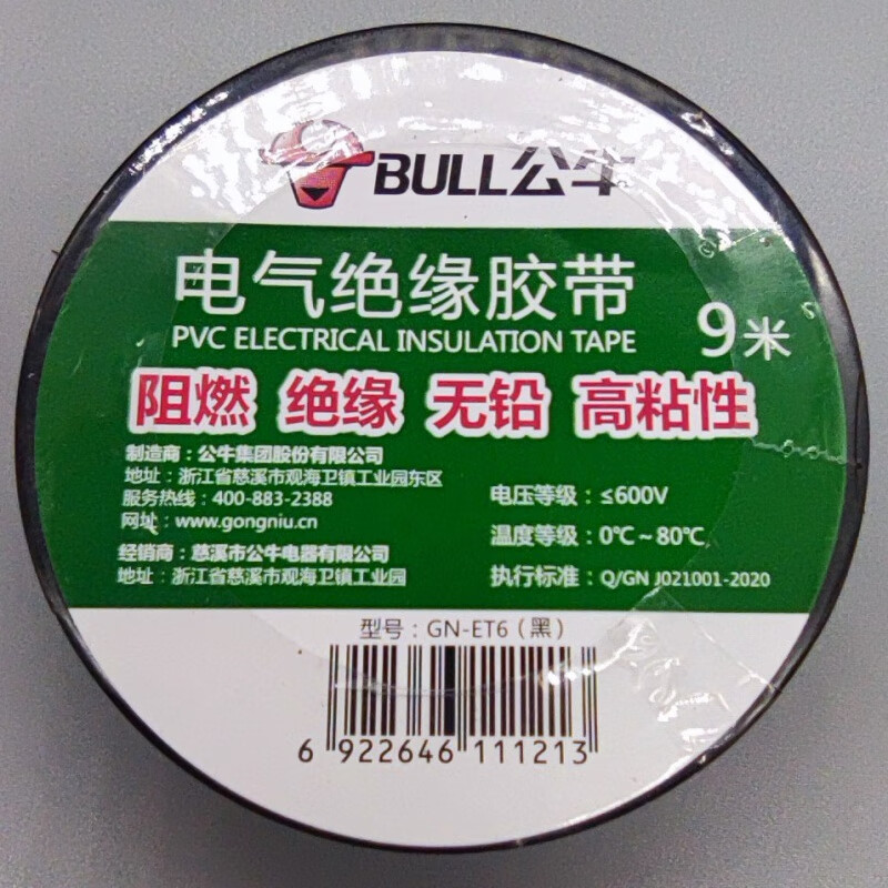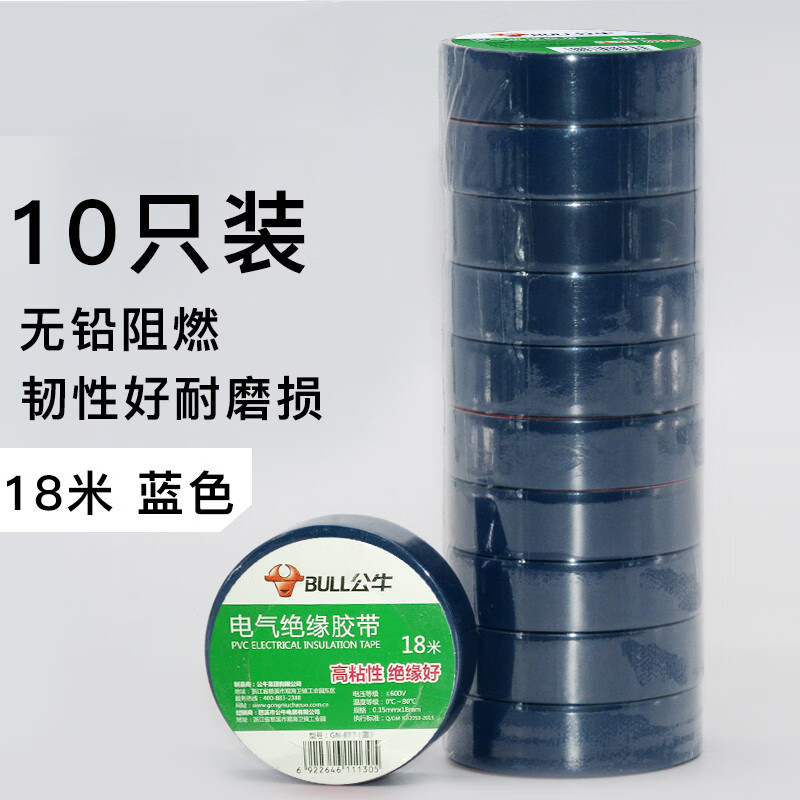 Bull brand wall switch accessories insulating tape lead-free flame retardant tape 9 meters electrical tape PVC tape custom black 9 meters 10 pieces