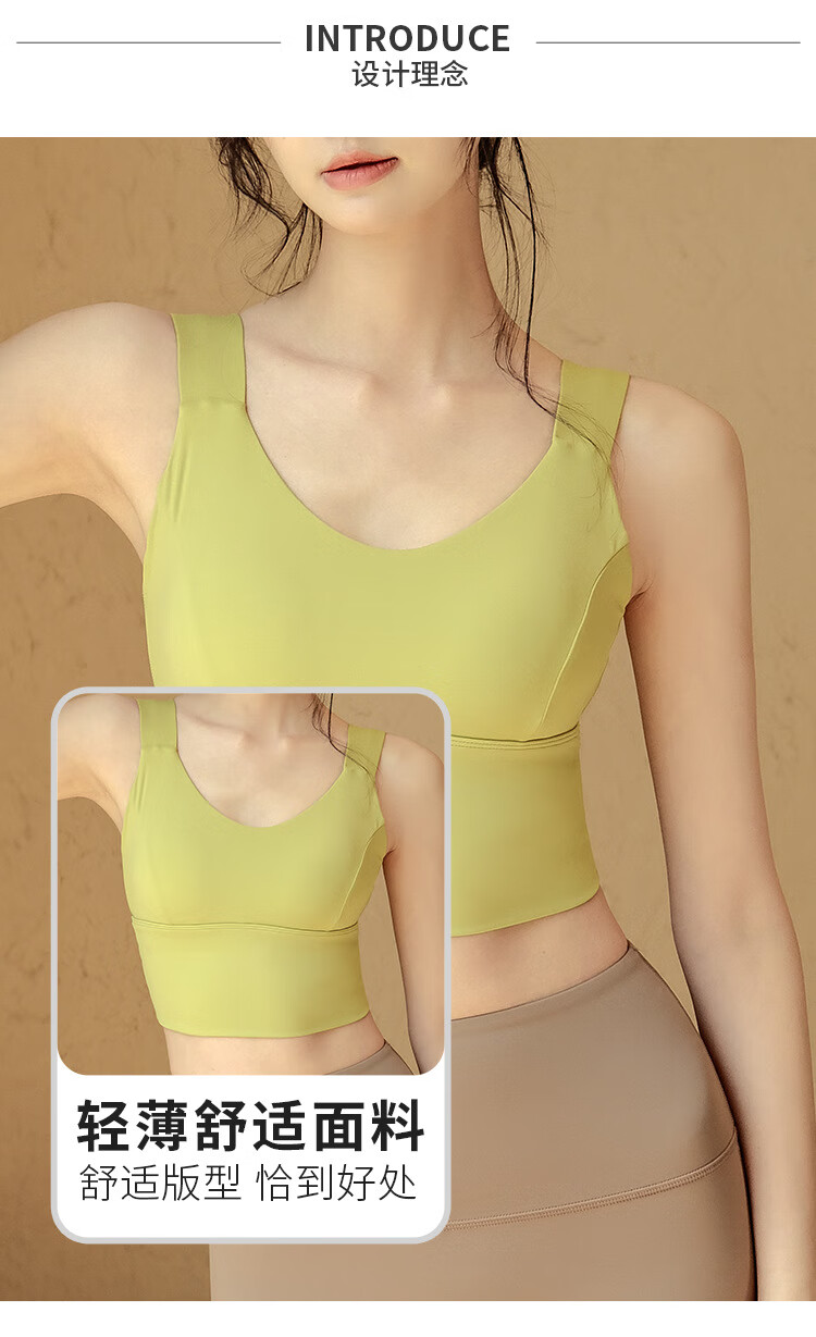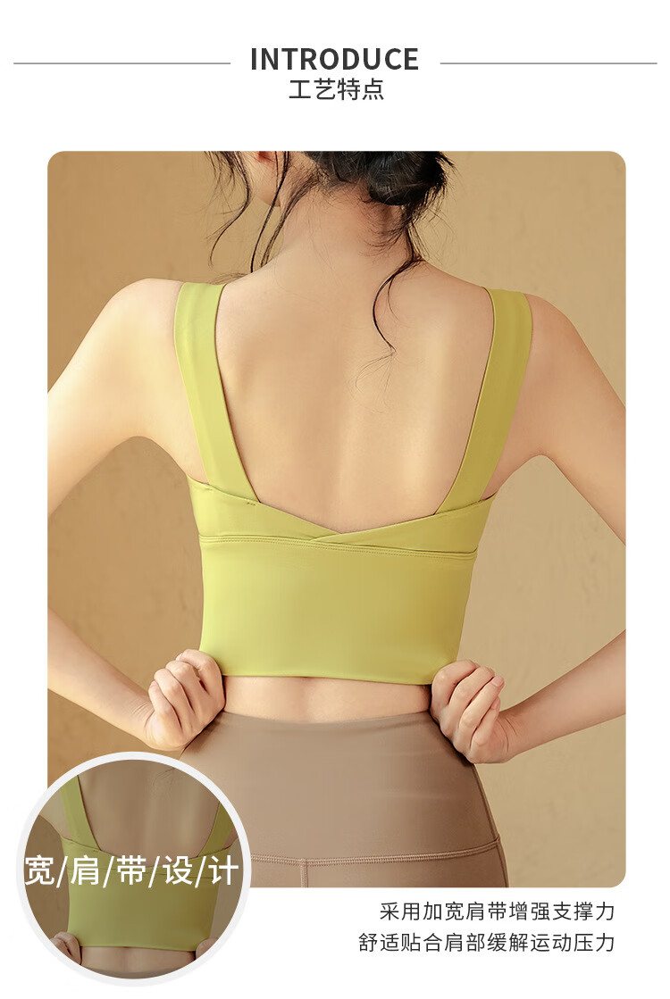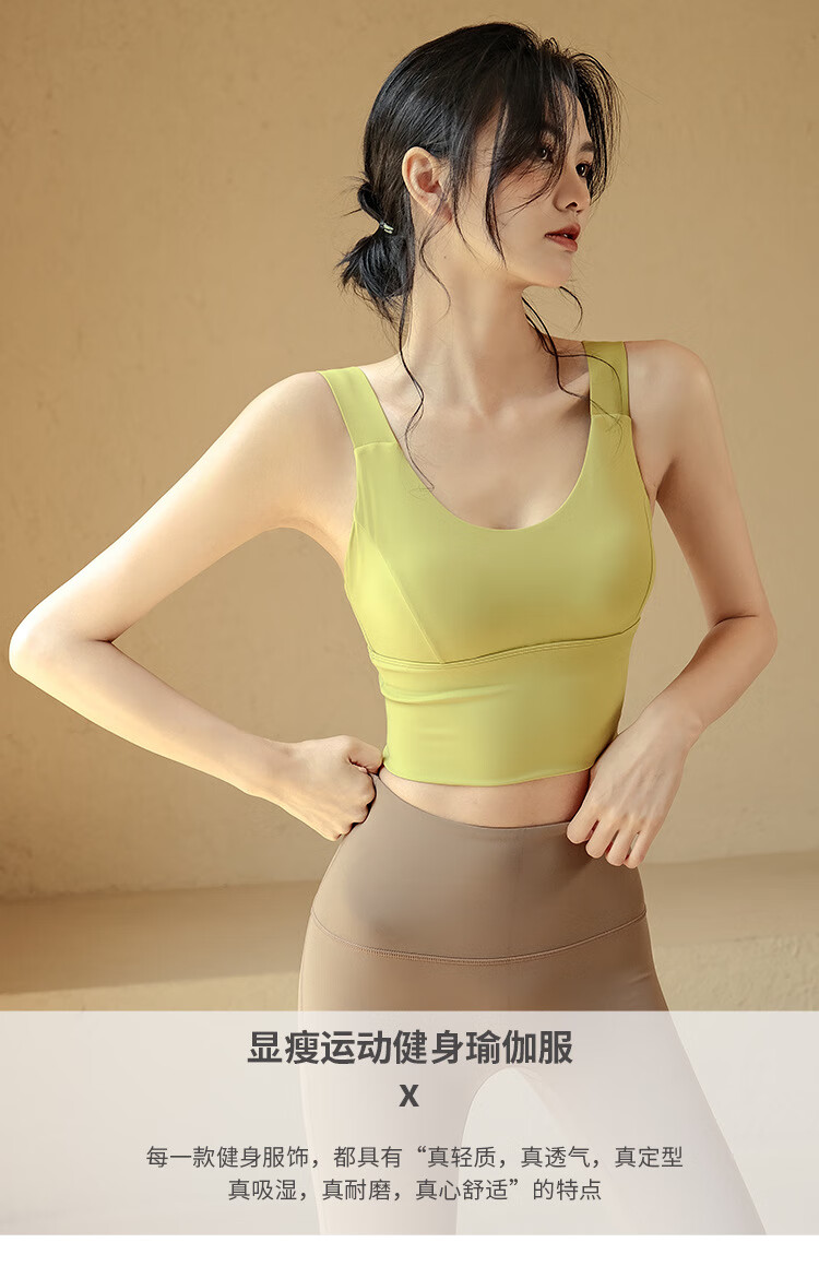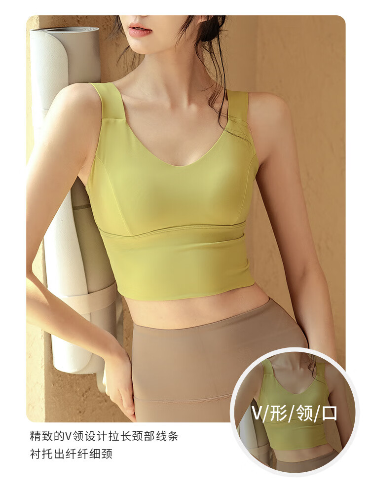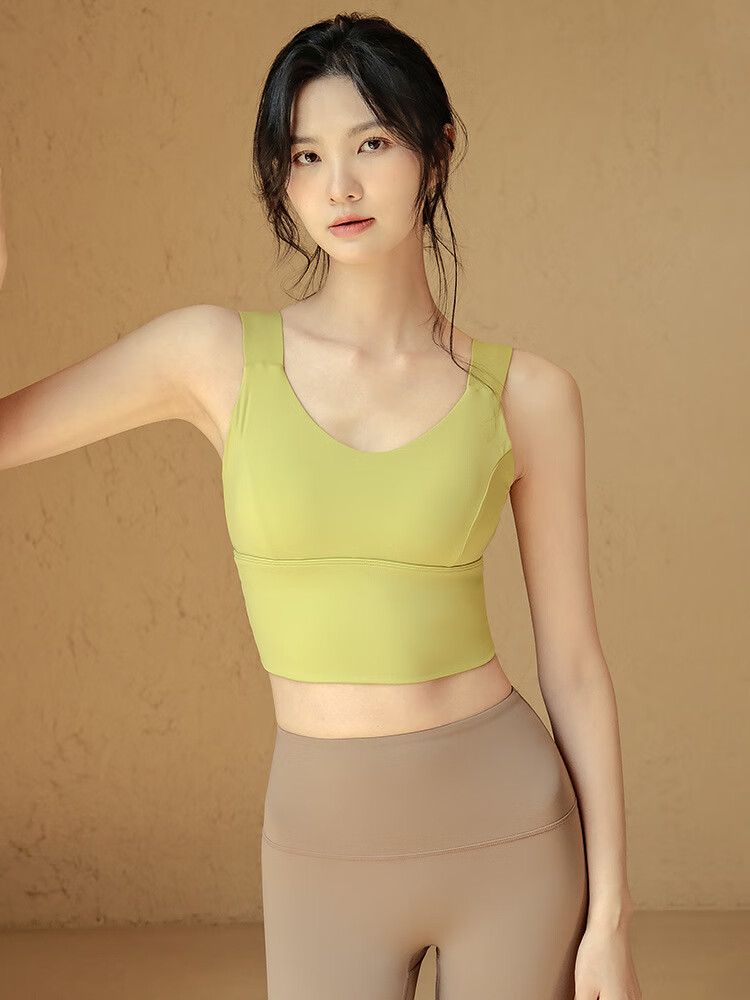 LULULOMDDW Sports Bra Women's Yoga Wear Vest All-in-one Shockproof Running Pilates Training Beautiful Back Fitness Bra Women Mustard Green Fixed Cup M