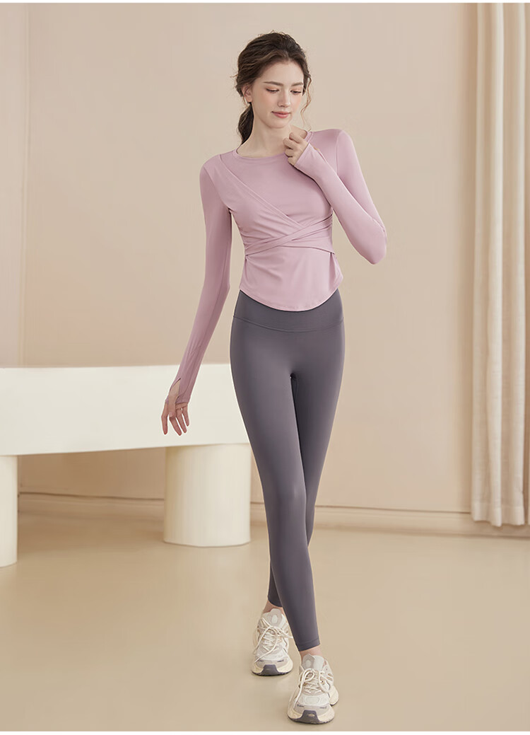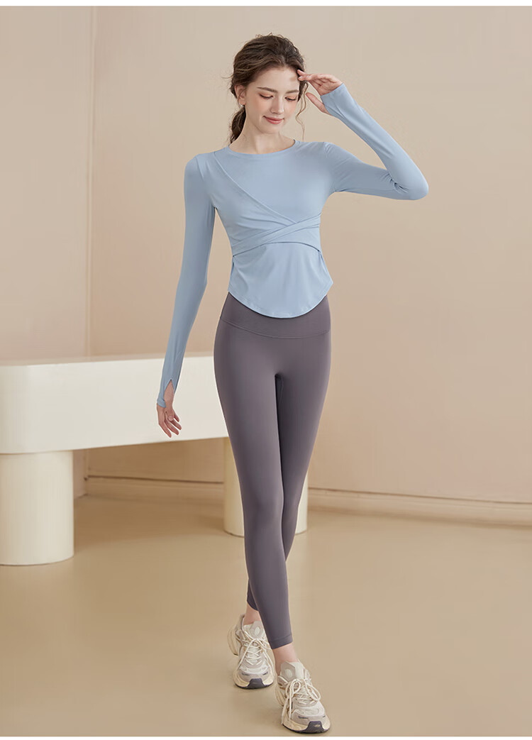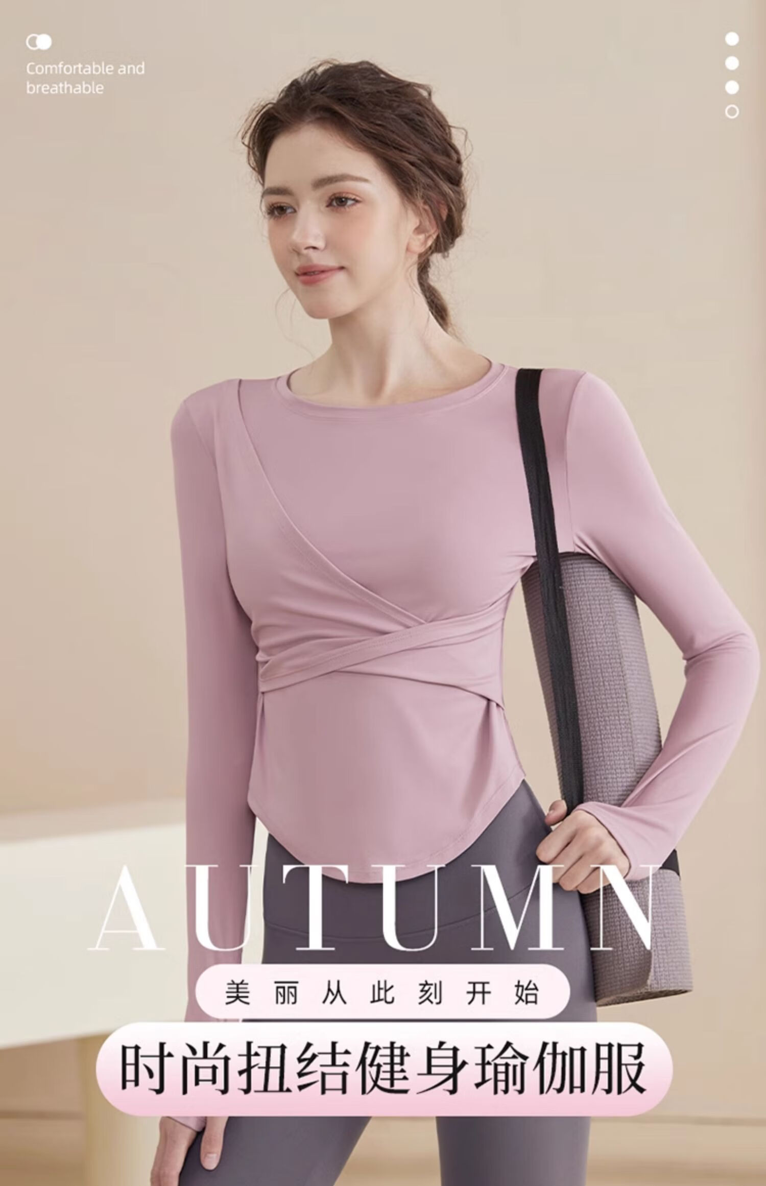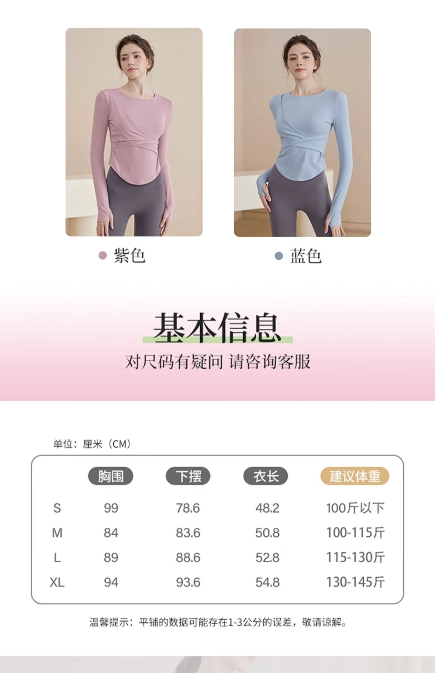 LULULOMDDW Yoga Wear Women's Autumn and Winter 2024 New Sports Top Long Sleeve Running Fitness Tight Pilates Training Wear Set Purple Top M Recommended Size 100-115Jin Jin is equal to 0.5 kg