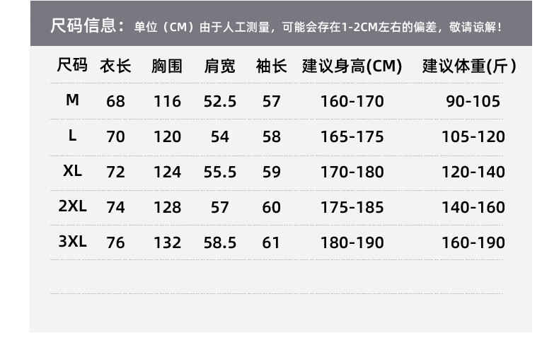China (cm) 165 / 88-90 170 / 96-98 175 / 108-110 180 / 118-122 185 / 126-130