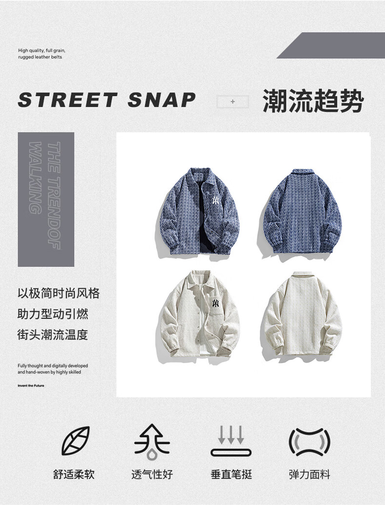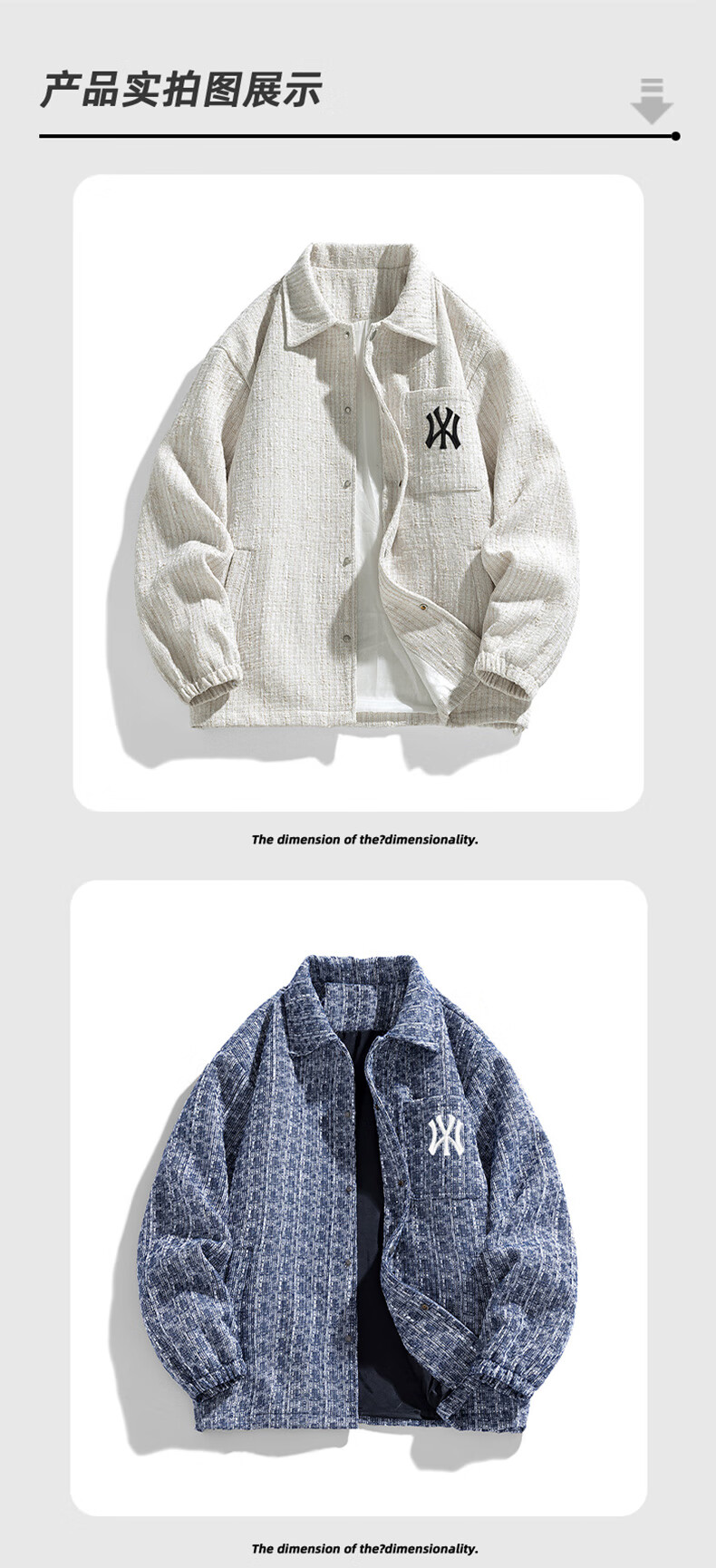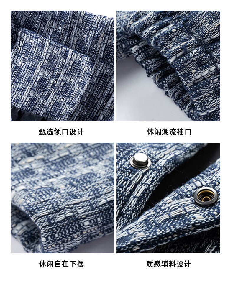 WYBT official brand jacket men's lapel casual top trendy brand handsome little fragrant style jacket cotton thickened couple wear blue XL (120-140Jin Jin equals 0.5 kg)