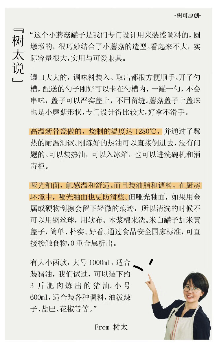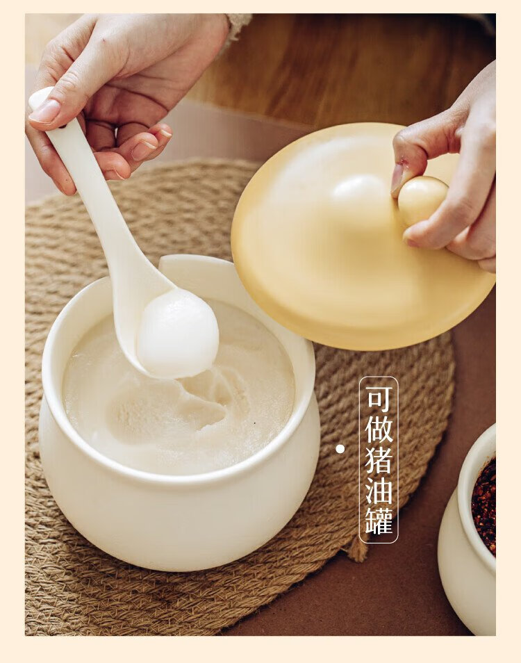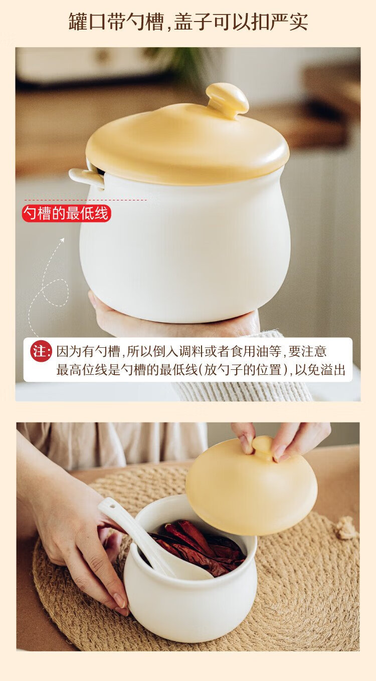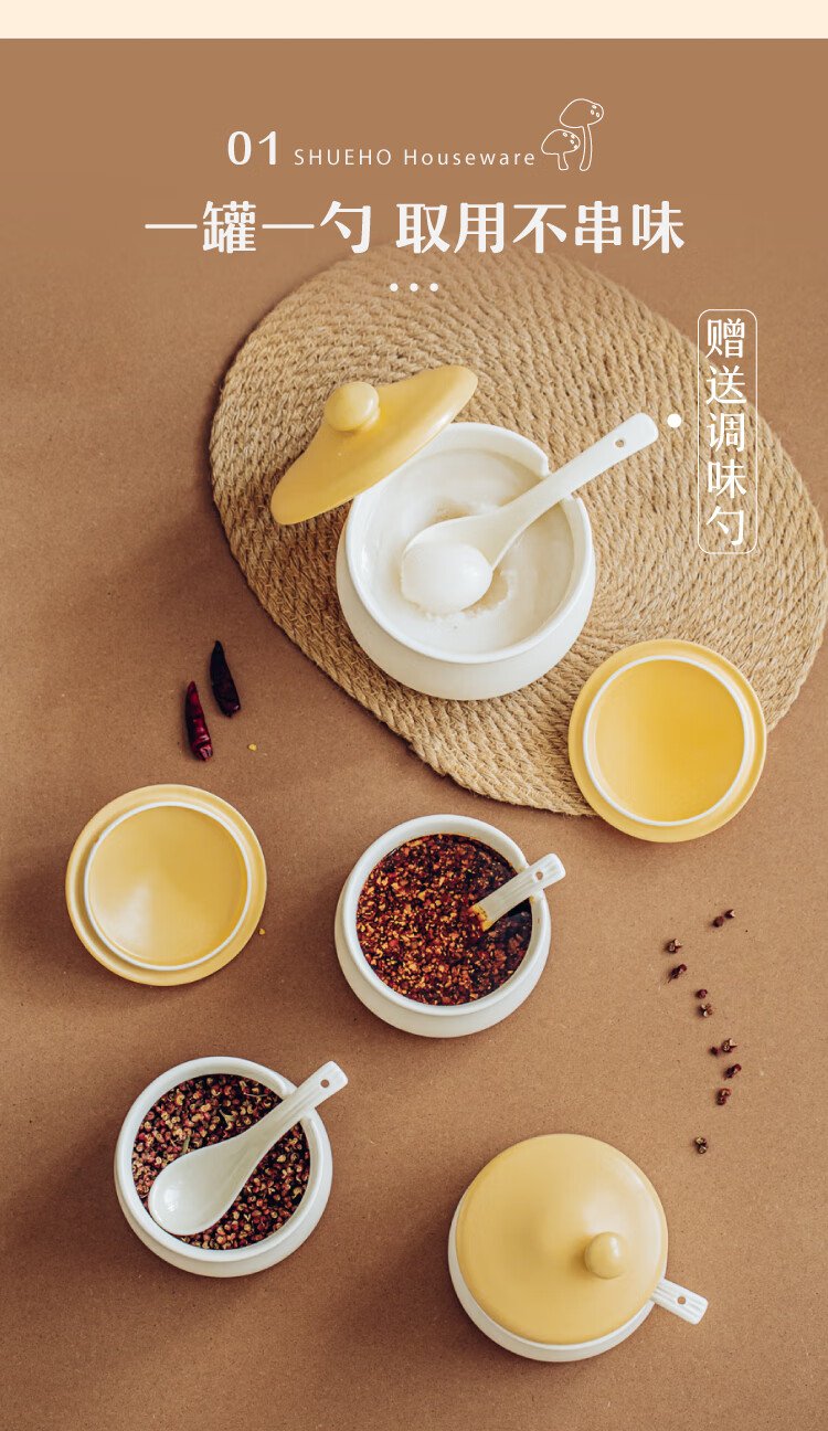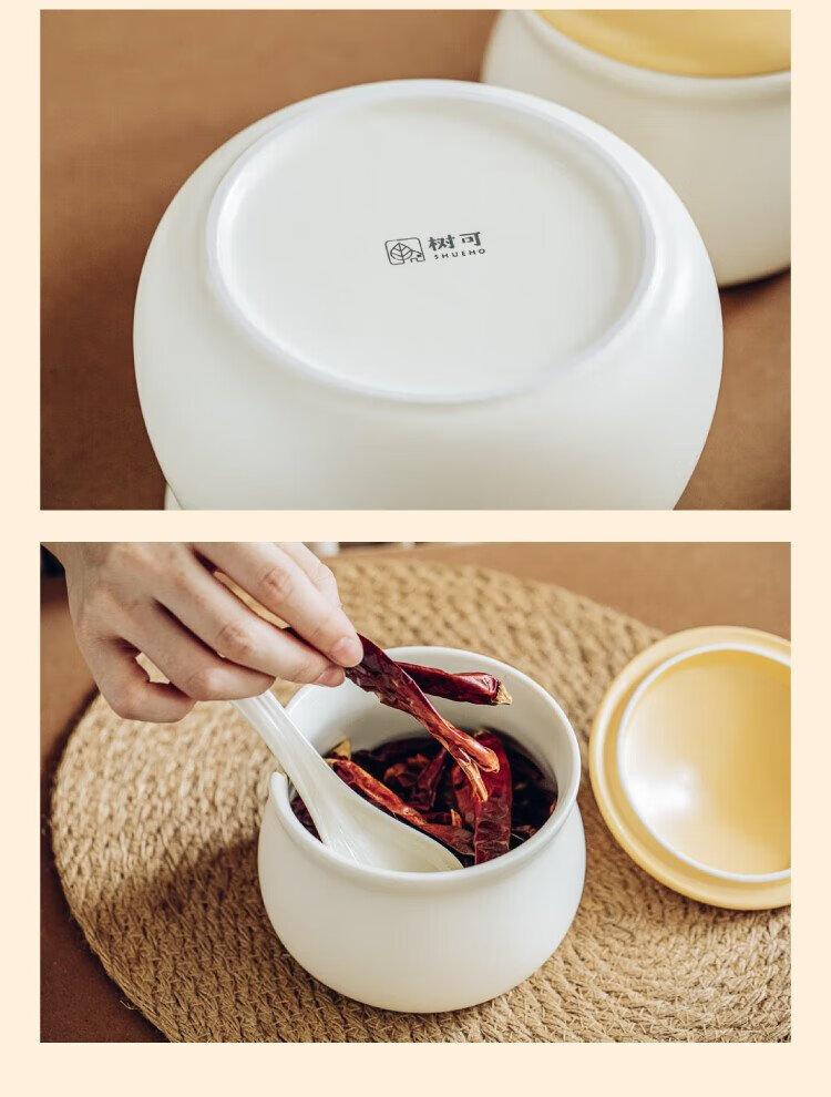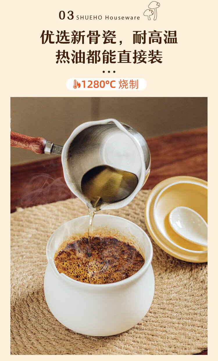 Shuke small mushroom lard jar home kitchen high temperature resistant ceramic chili spice storage seasoning meat and oil box mini size 370ml can be filled with salt, sugar