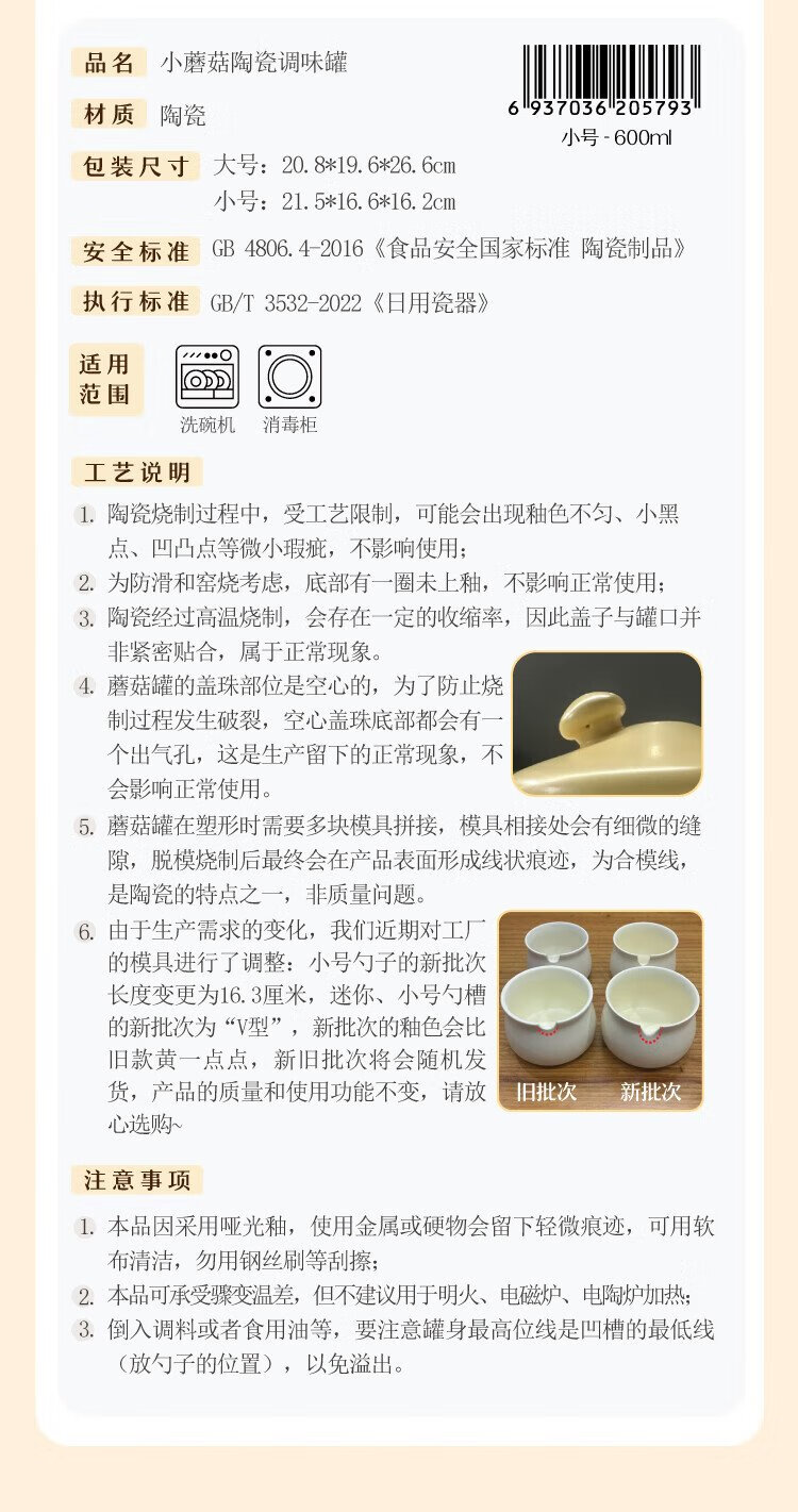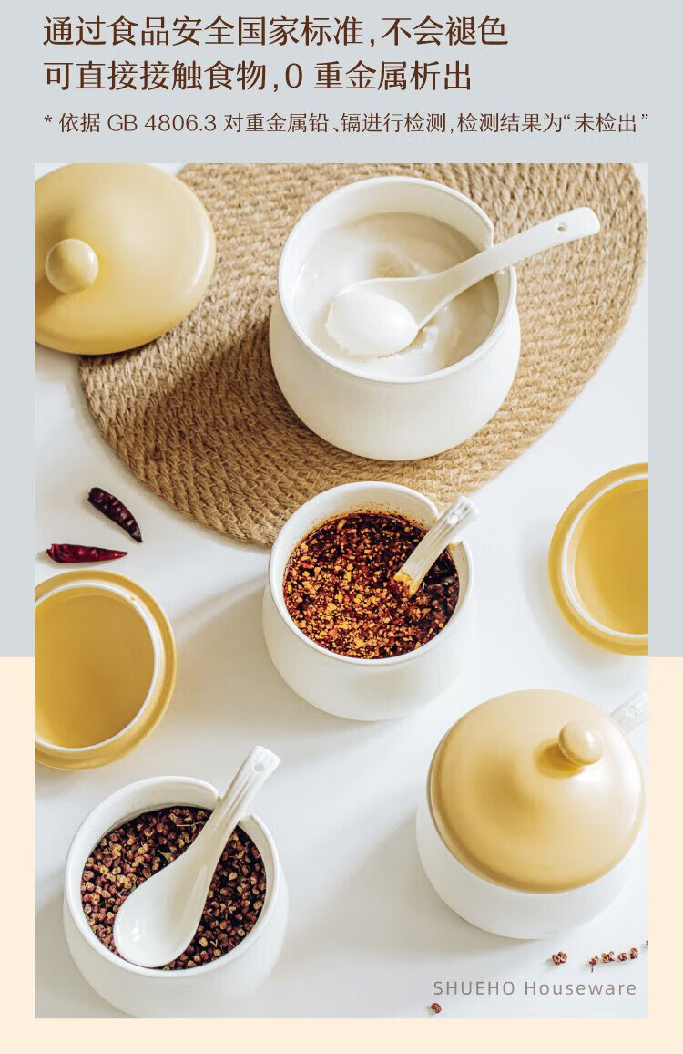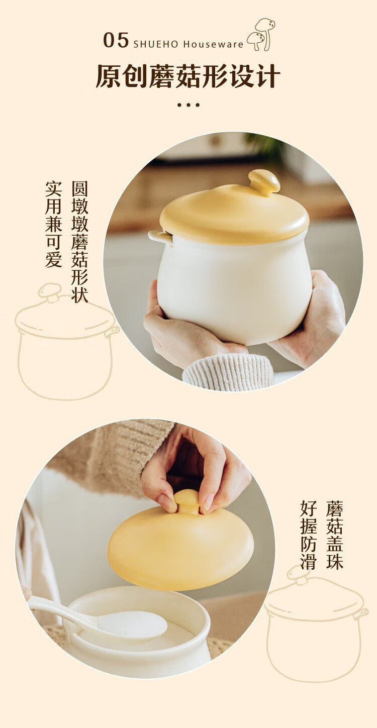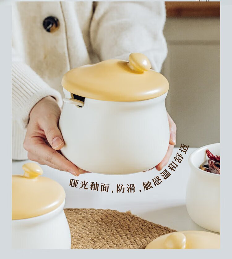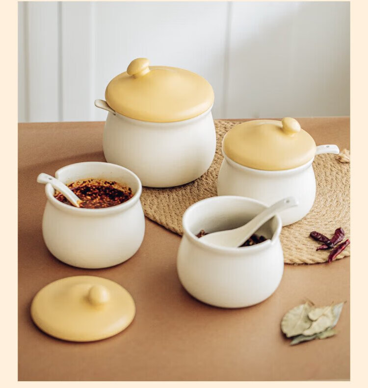 Shuke small mushroom lard jar home kitchen high temperature resistant ceramic chili spice storage seasoning meat and oil box mini size 370ml can be filled with salt, sugar