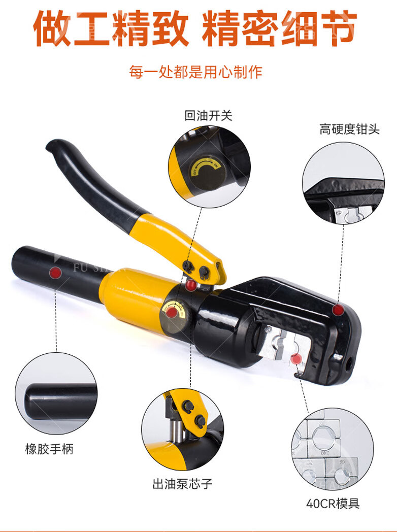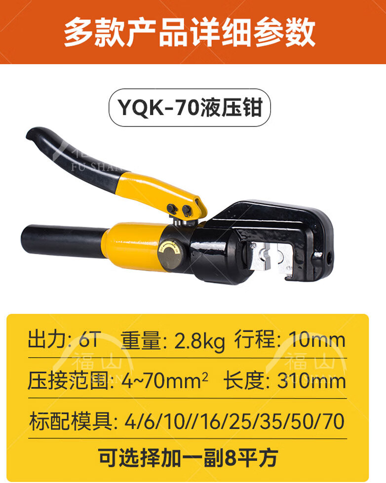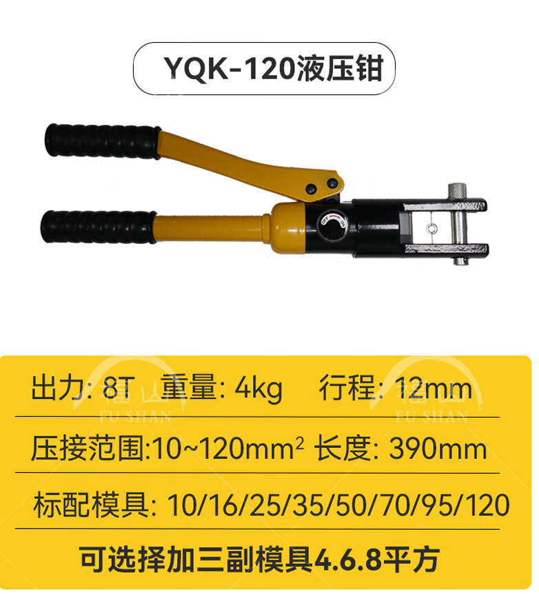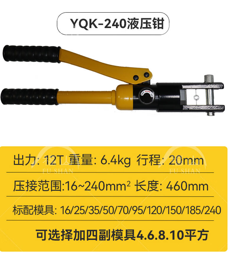 Yuhuan electrician hydraulic pliers manual hydraulic YQK70/120/240 copper aluminum nose terminal crimping pliers lug YQK-(4-70) yellow bare metal