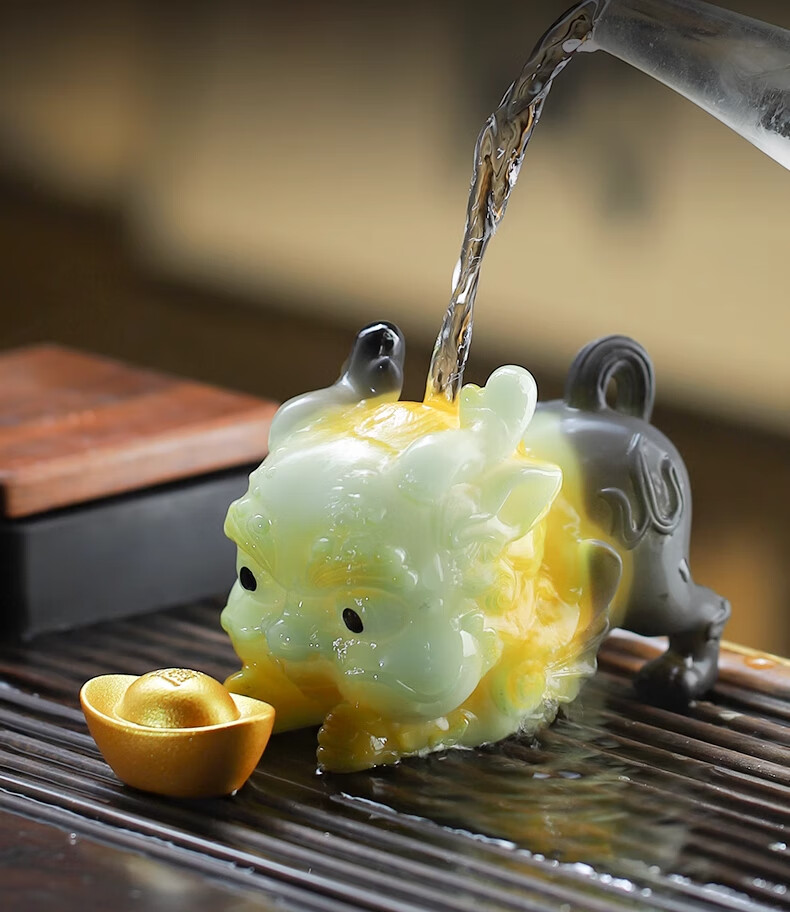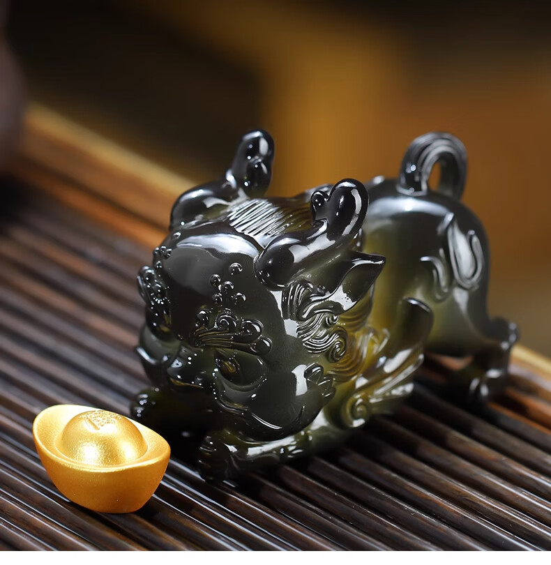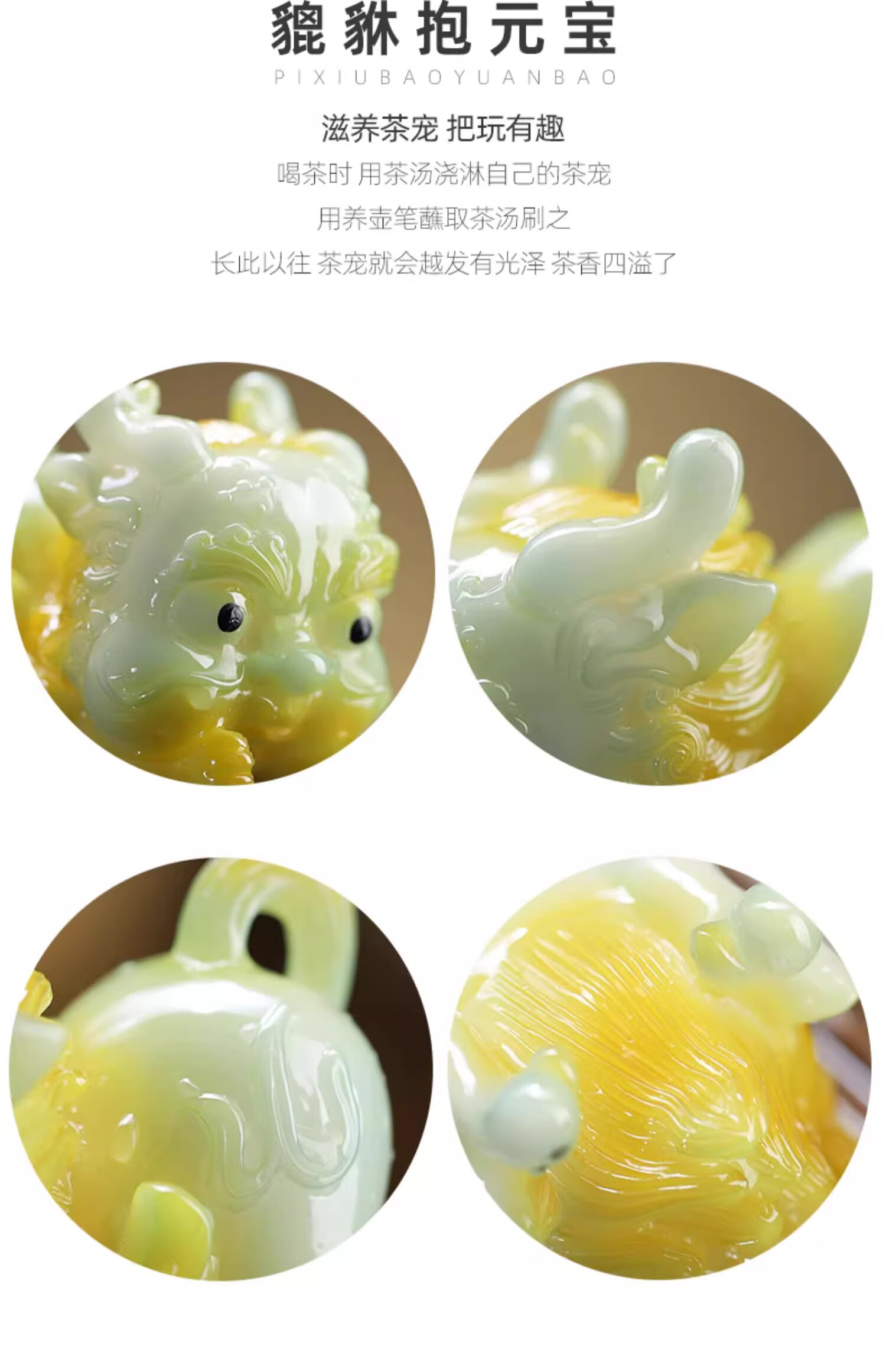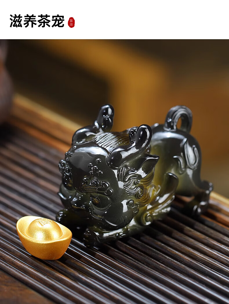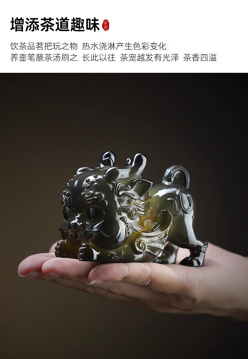Kunde's creation color-changing tea pet Pixiu to attract wealth and Zen tea table tabletop decorations pet tea play boutique tea set decorations high-end Pixiu holding ingot gift box