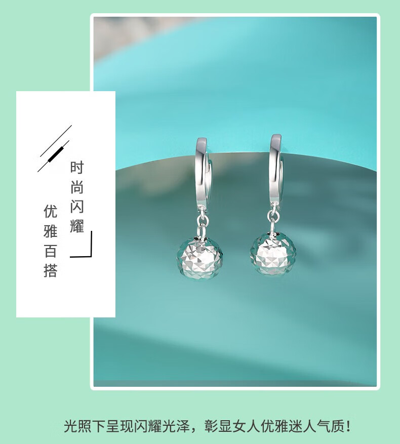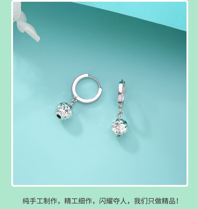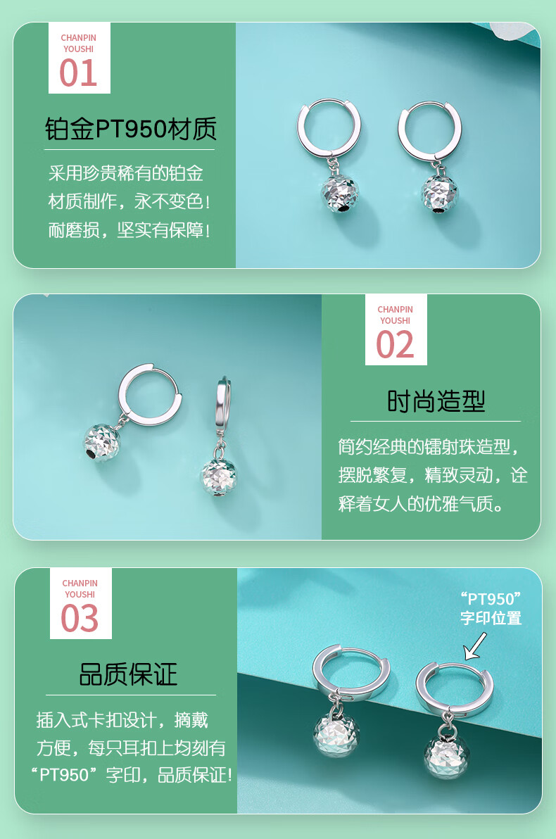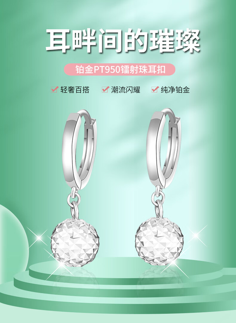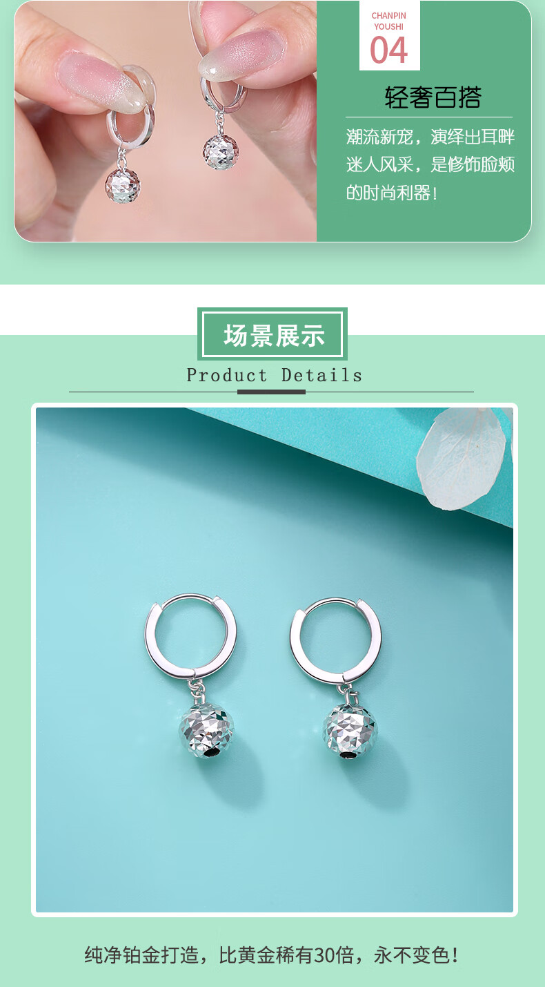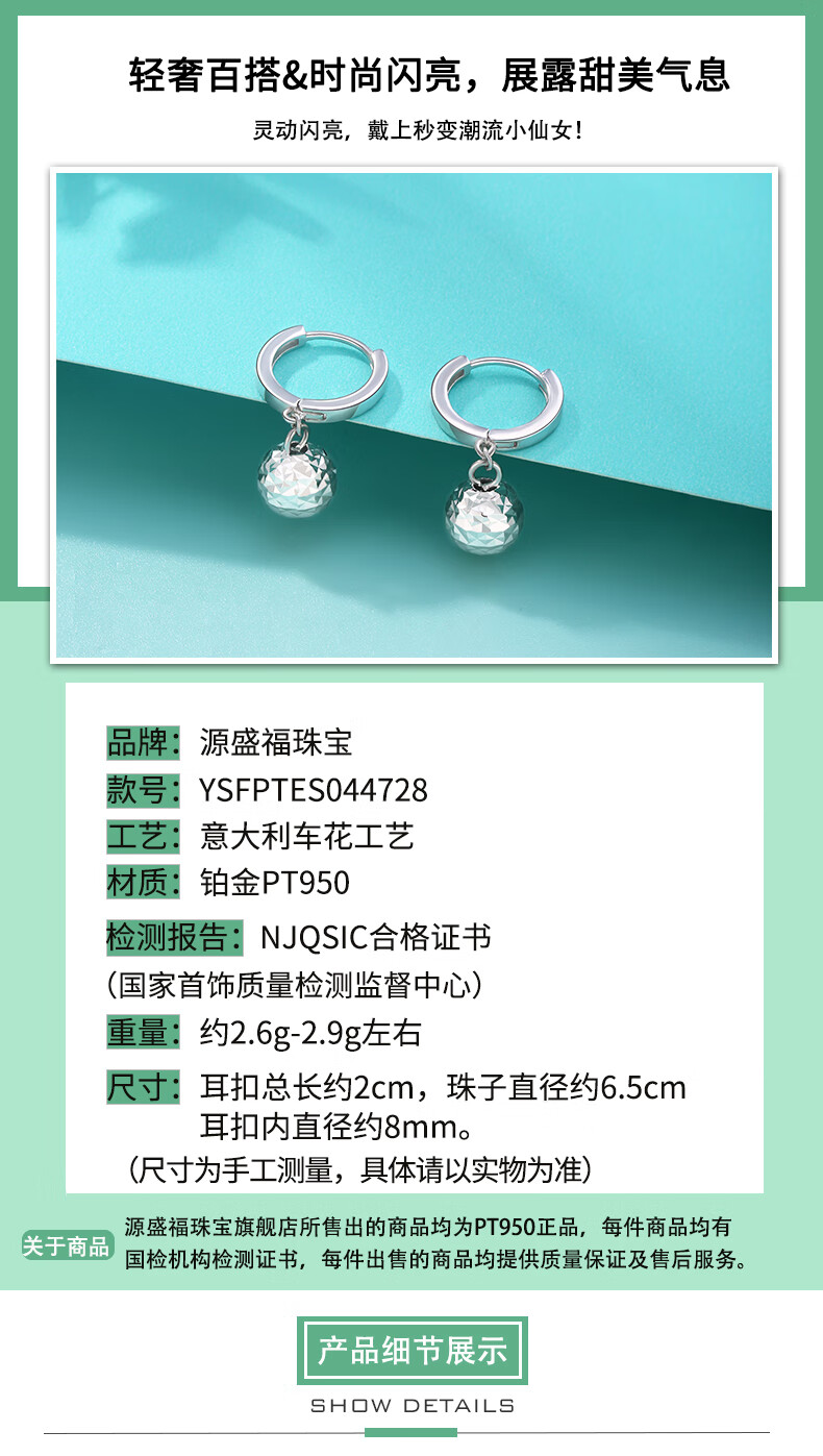 Yuan Shengfu's new PT950 high-quality laser bead platinum earrings, genuine platinum earrings, earrings, earrings for women, 2.97 grams