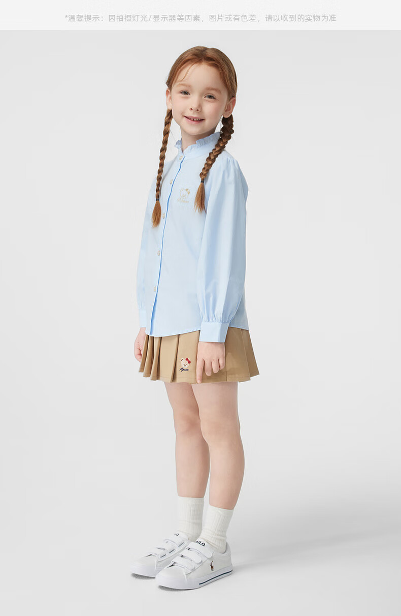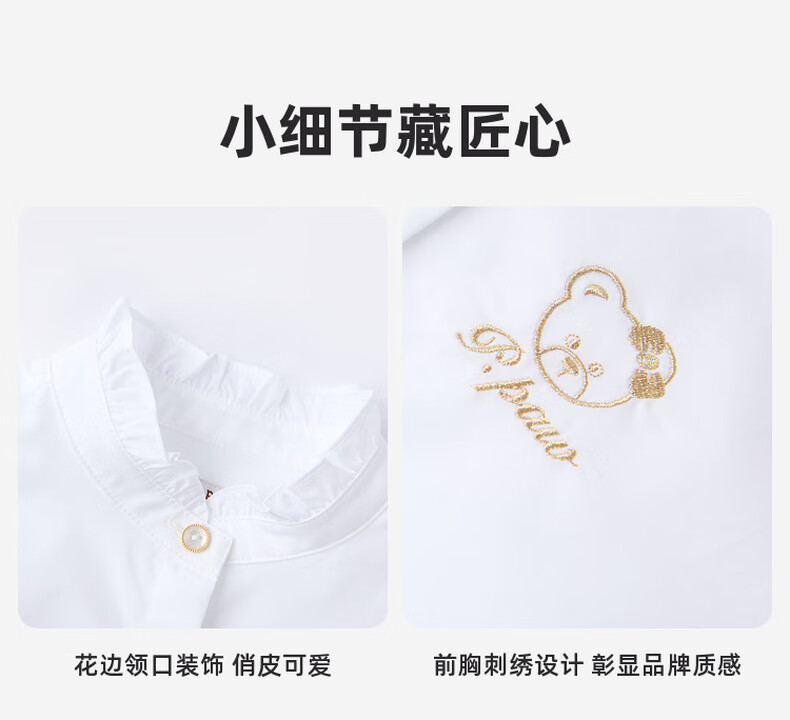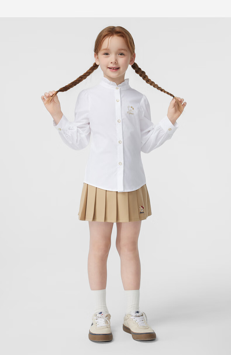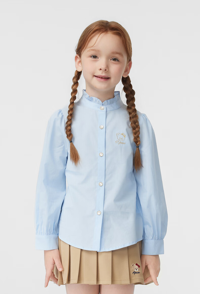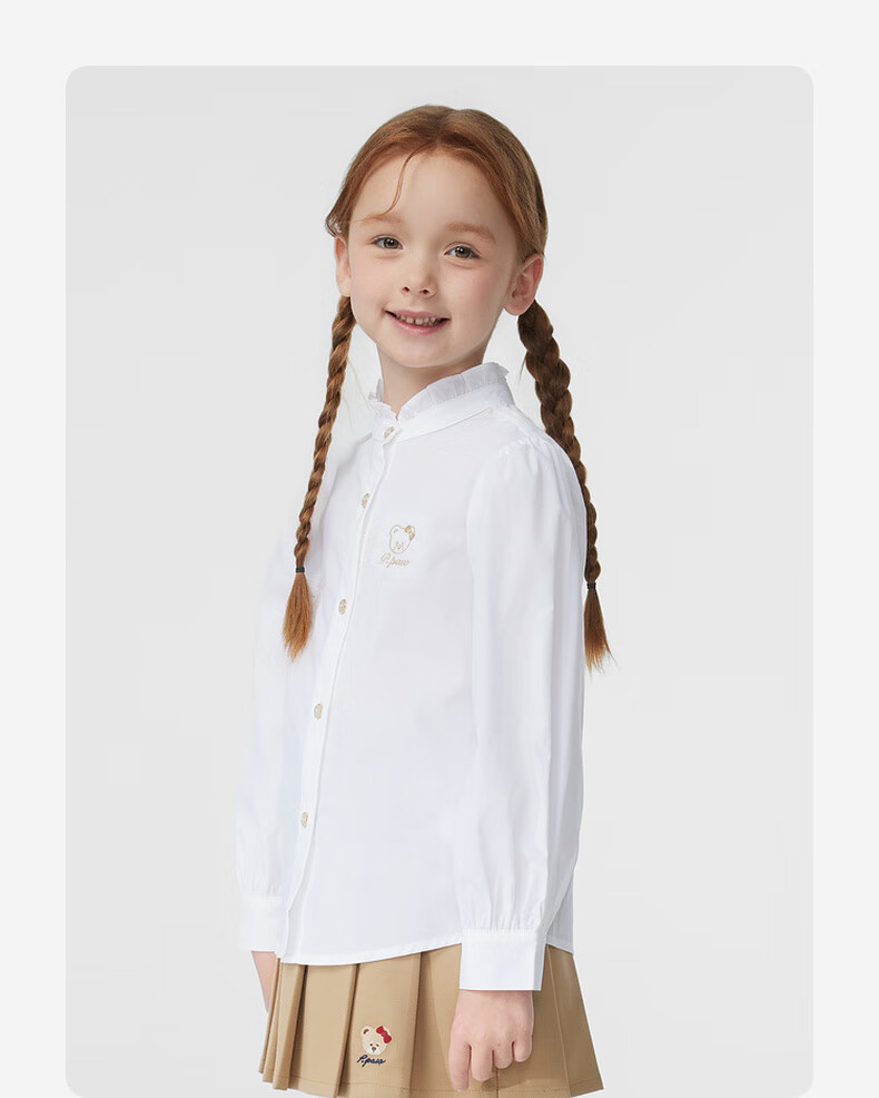 PawinPaw cartoon bear children's clothing 25 spring and summer new girls lace stand-up collar pure cotton long-sleeved shirt Ivory ivory/39 120