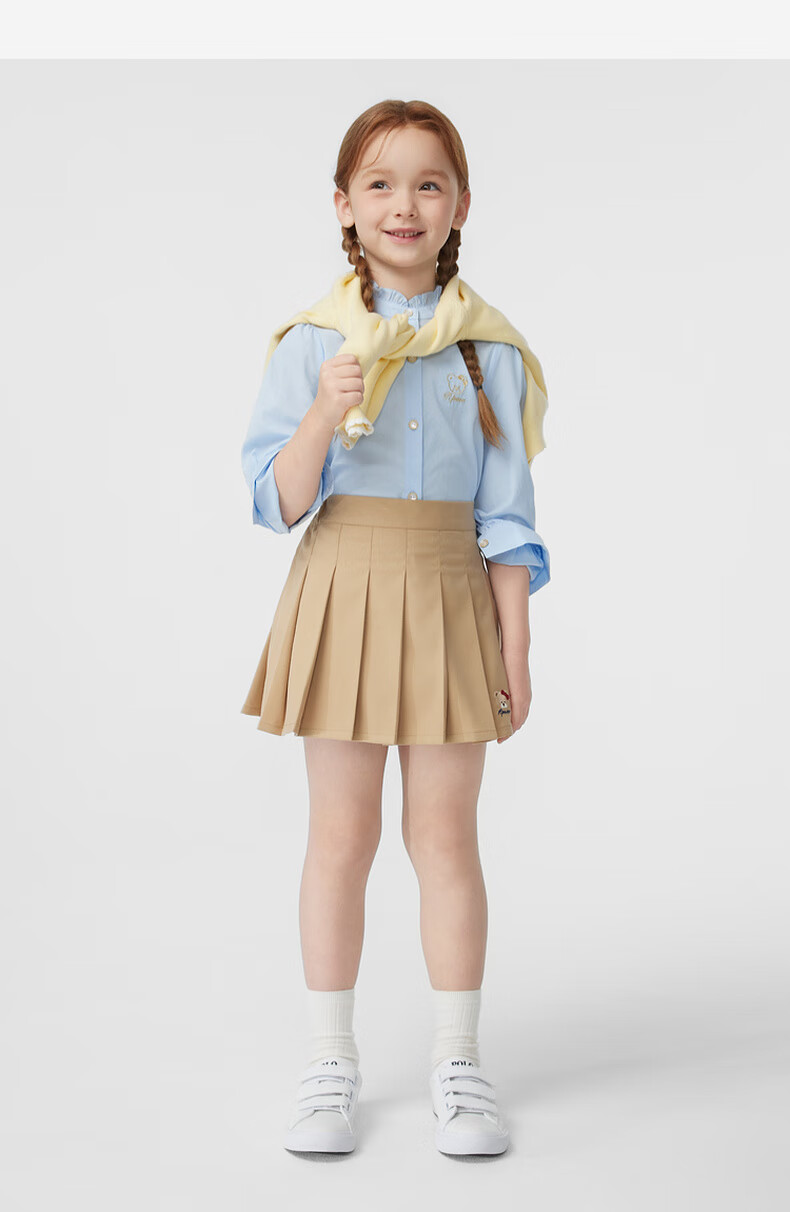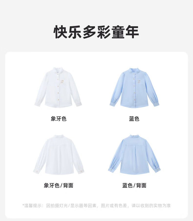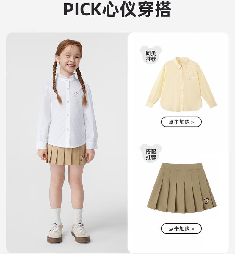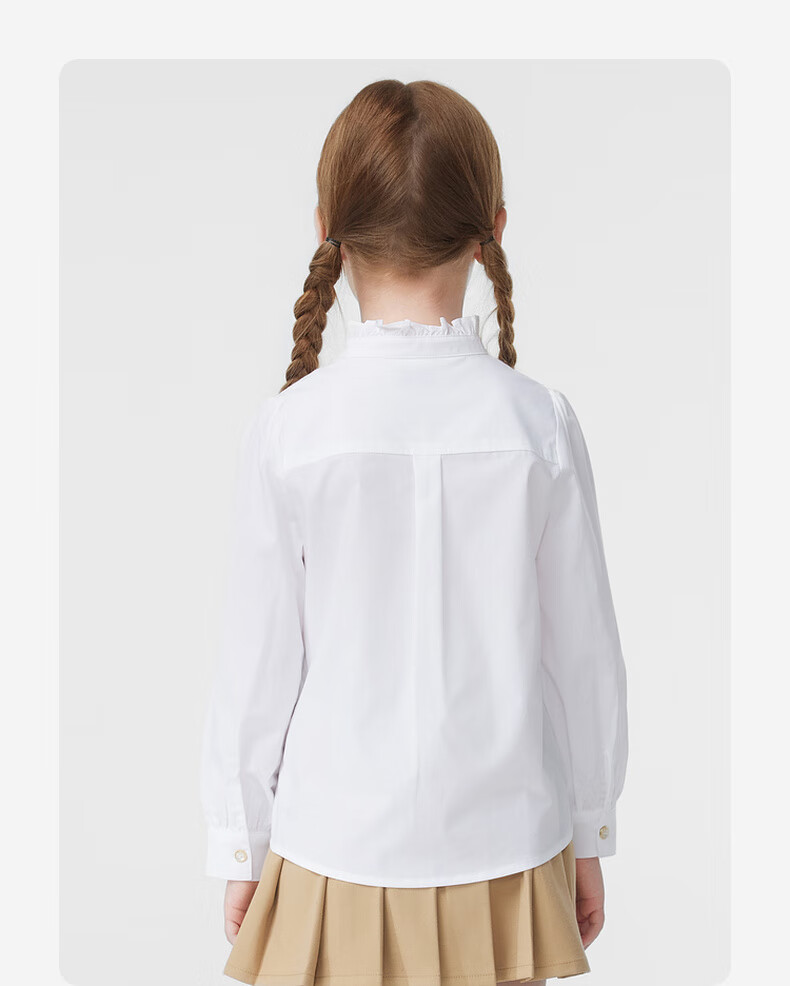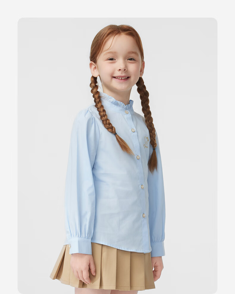 PawinPaw cartoon bear children's clothing 25 spring and summer new girls lace stand-up collar pure cotton long-sleeved shirt Ivory ivory/39 120