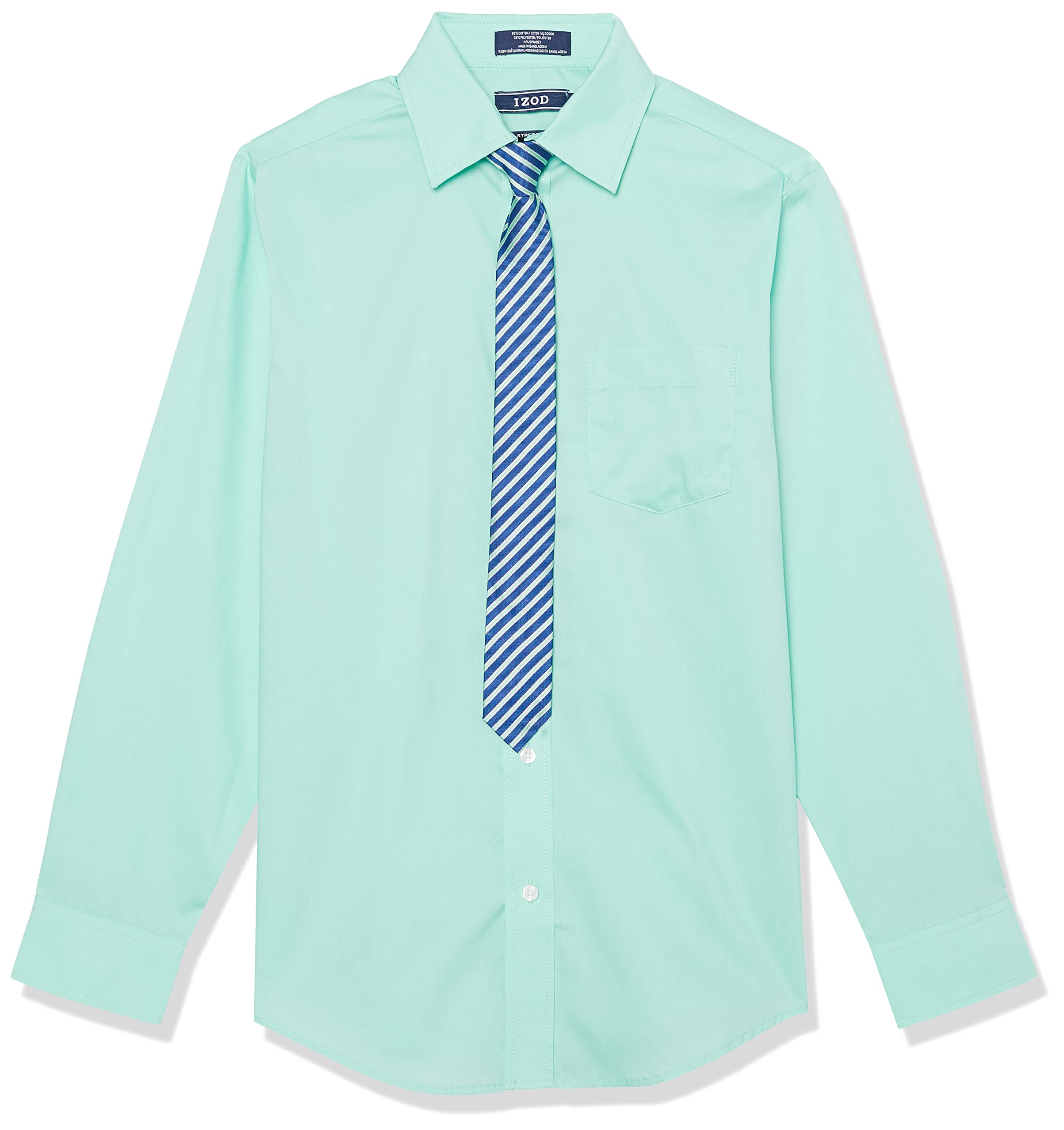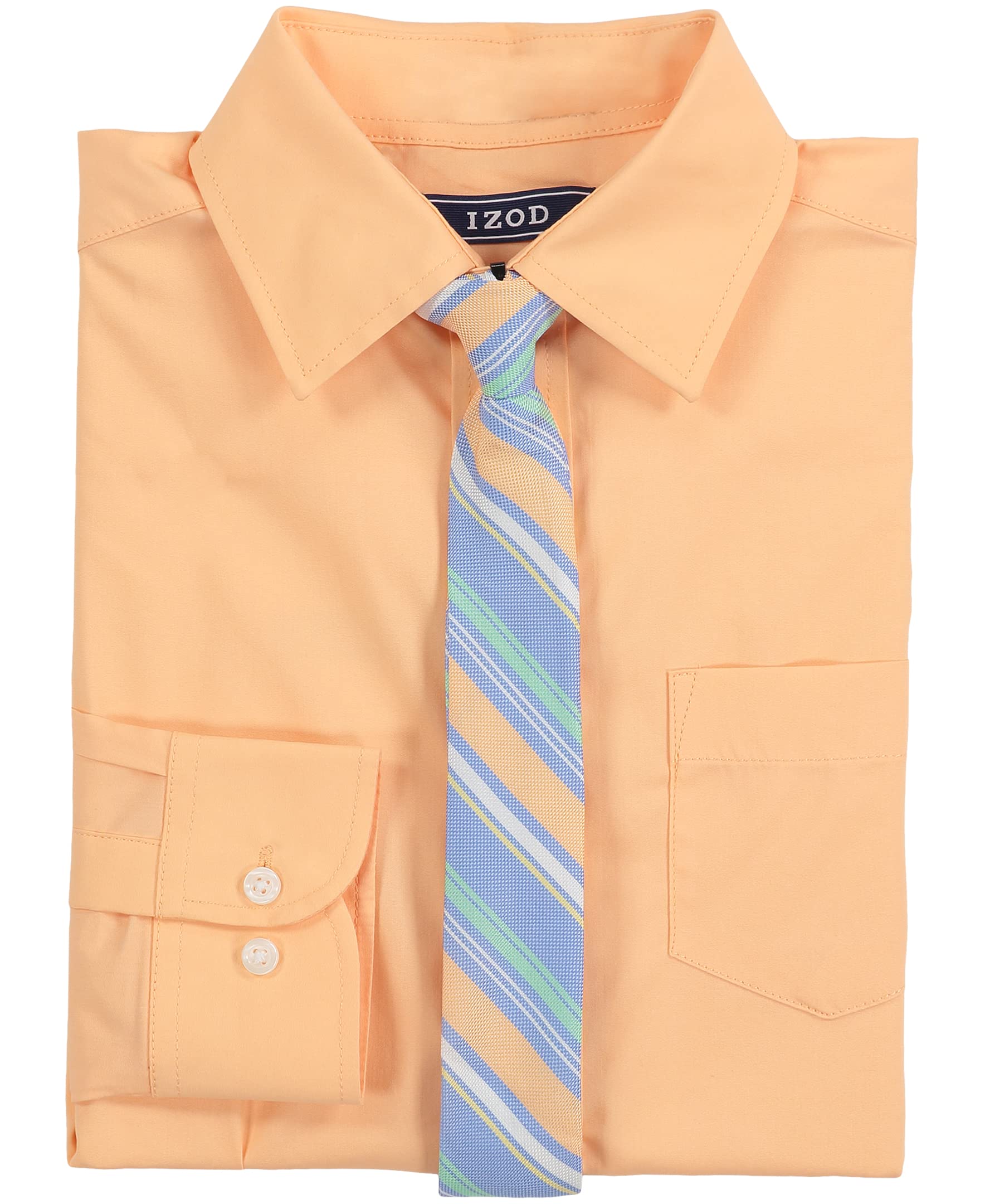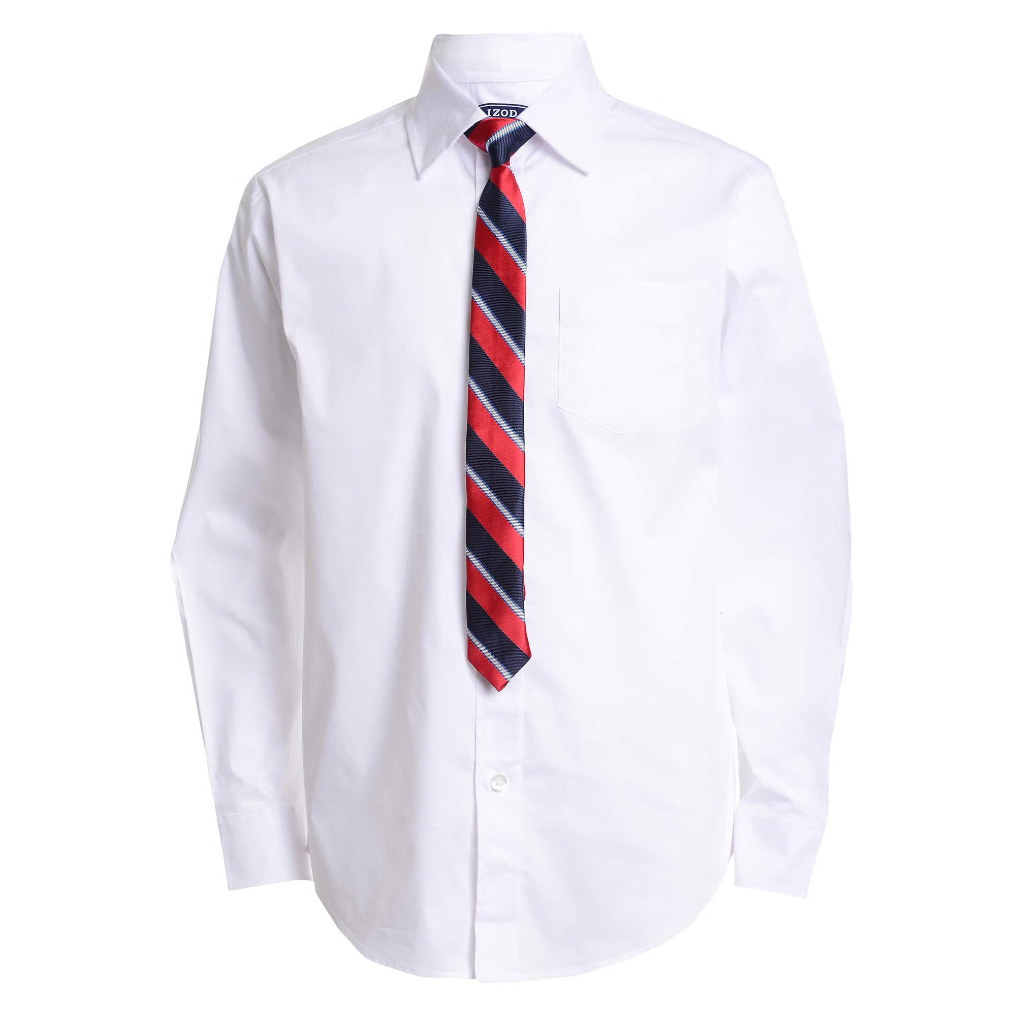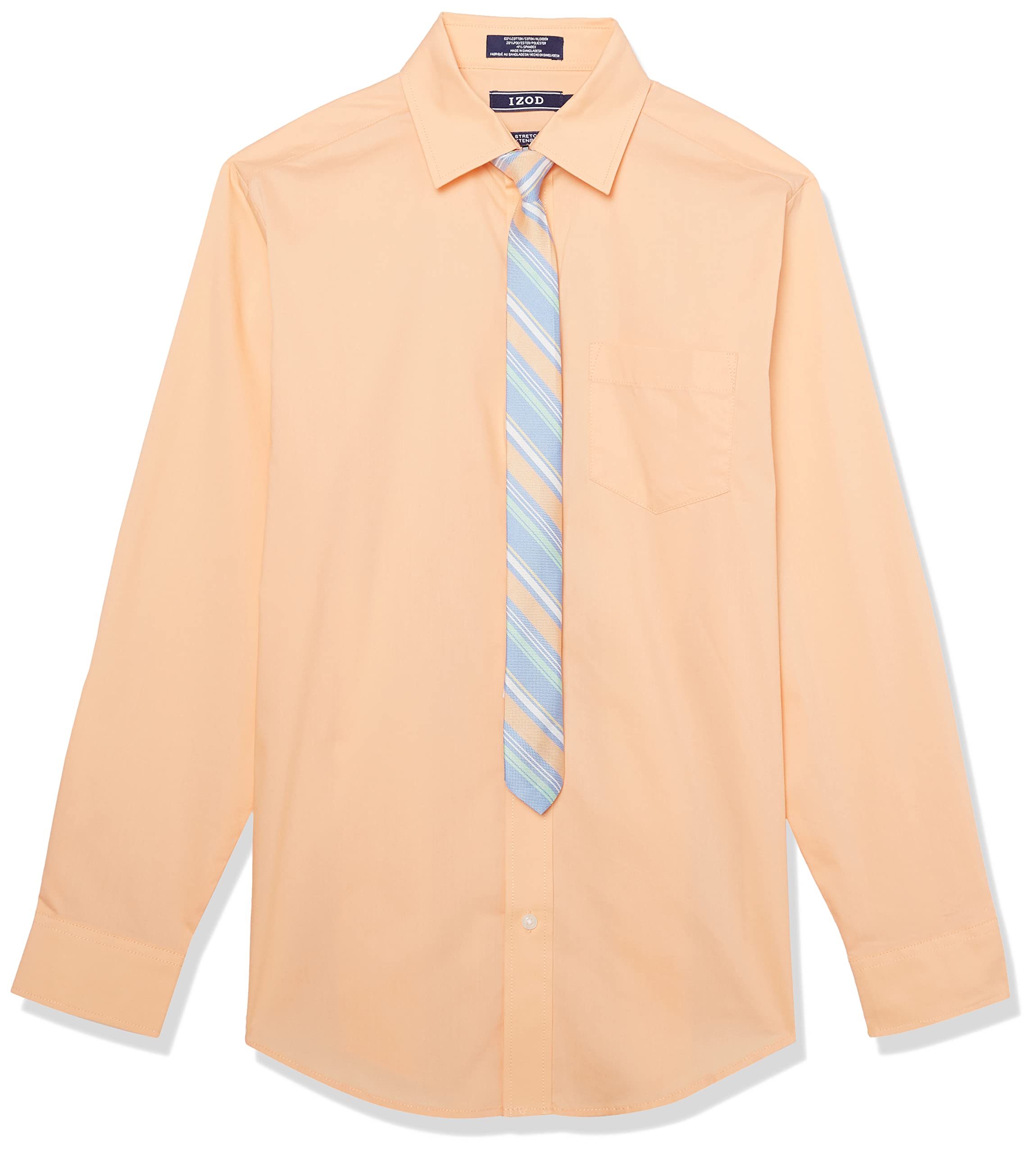 IZOD Boys Long Sleeve Button Collar Dress Shirt with Tie and Chest Pocket Dress White 18