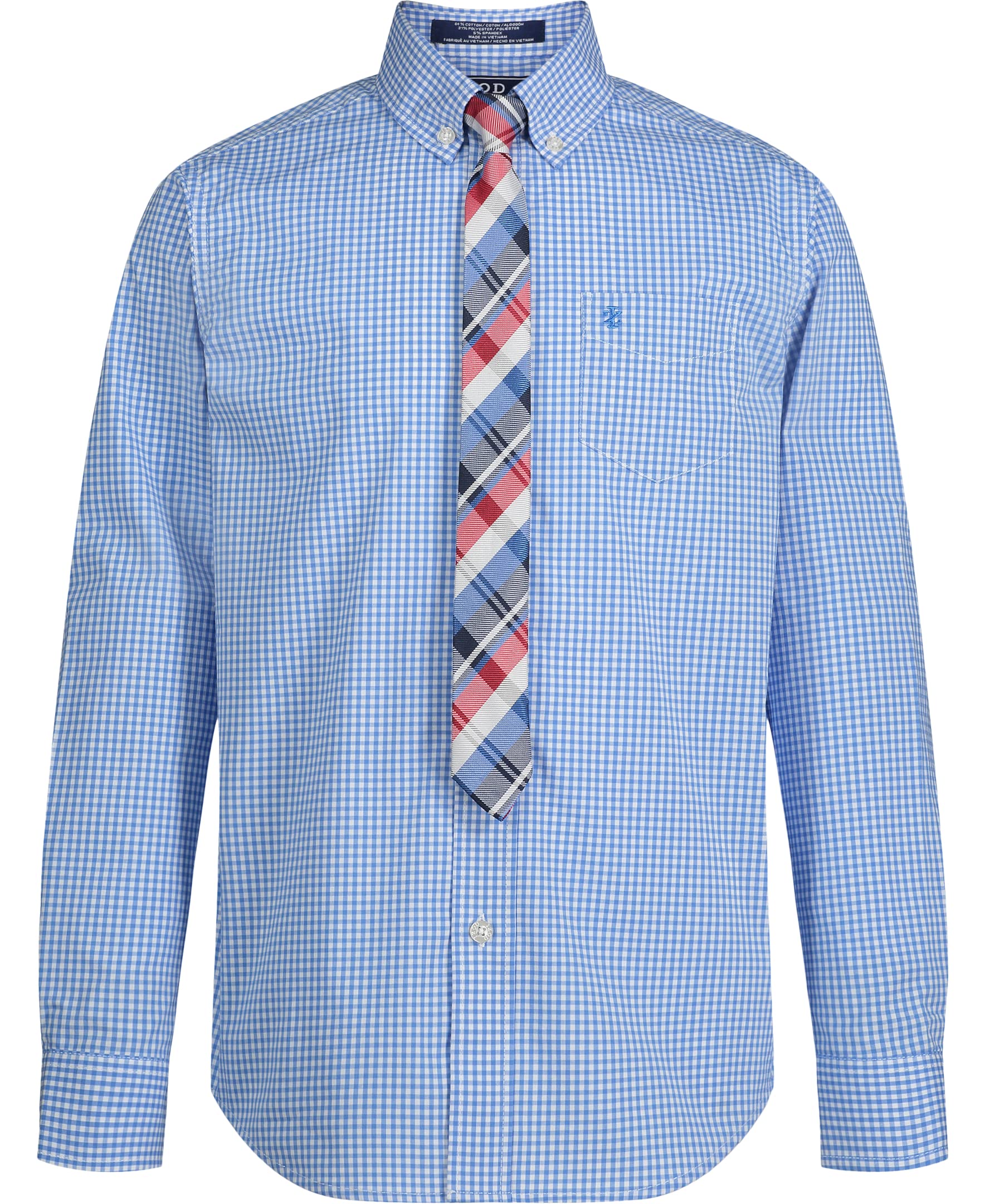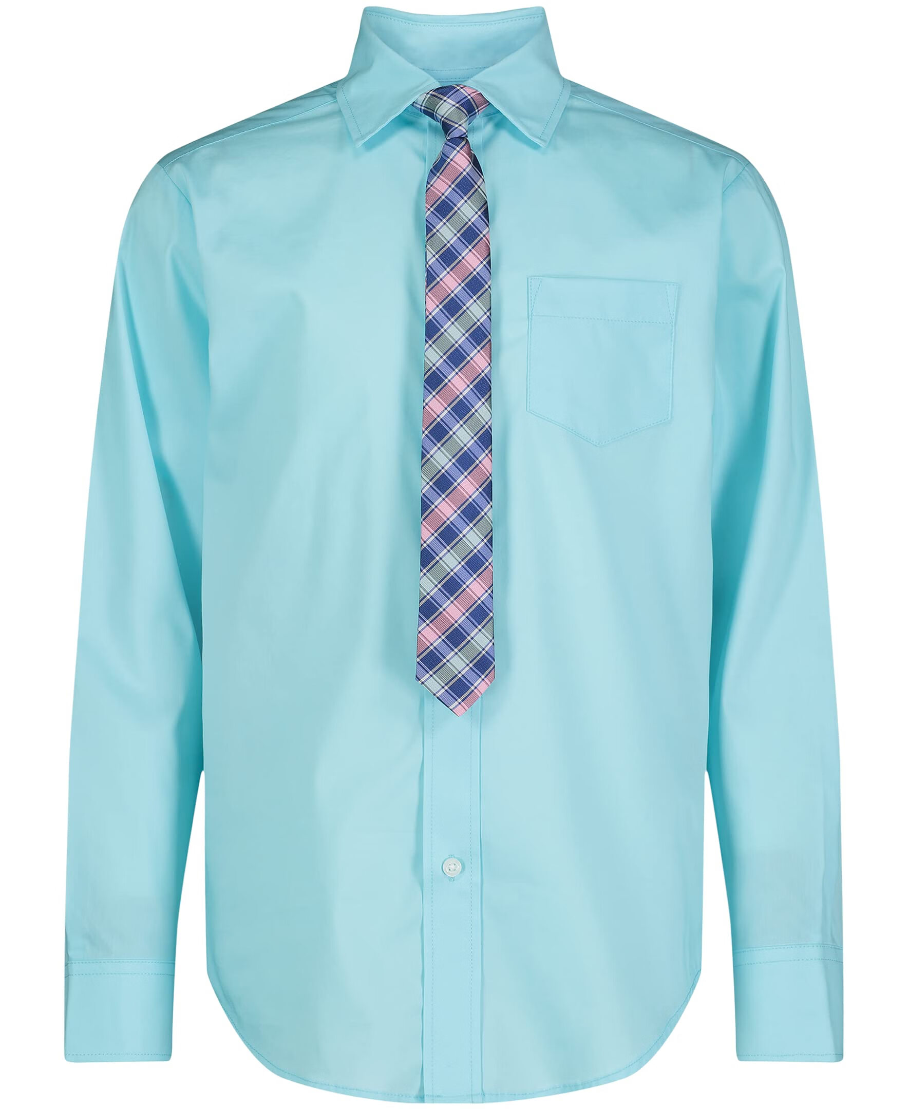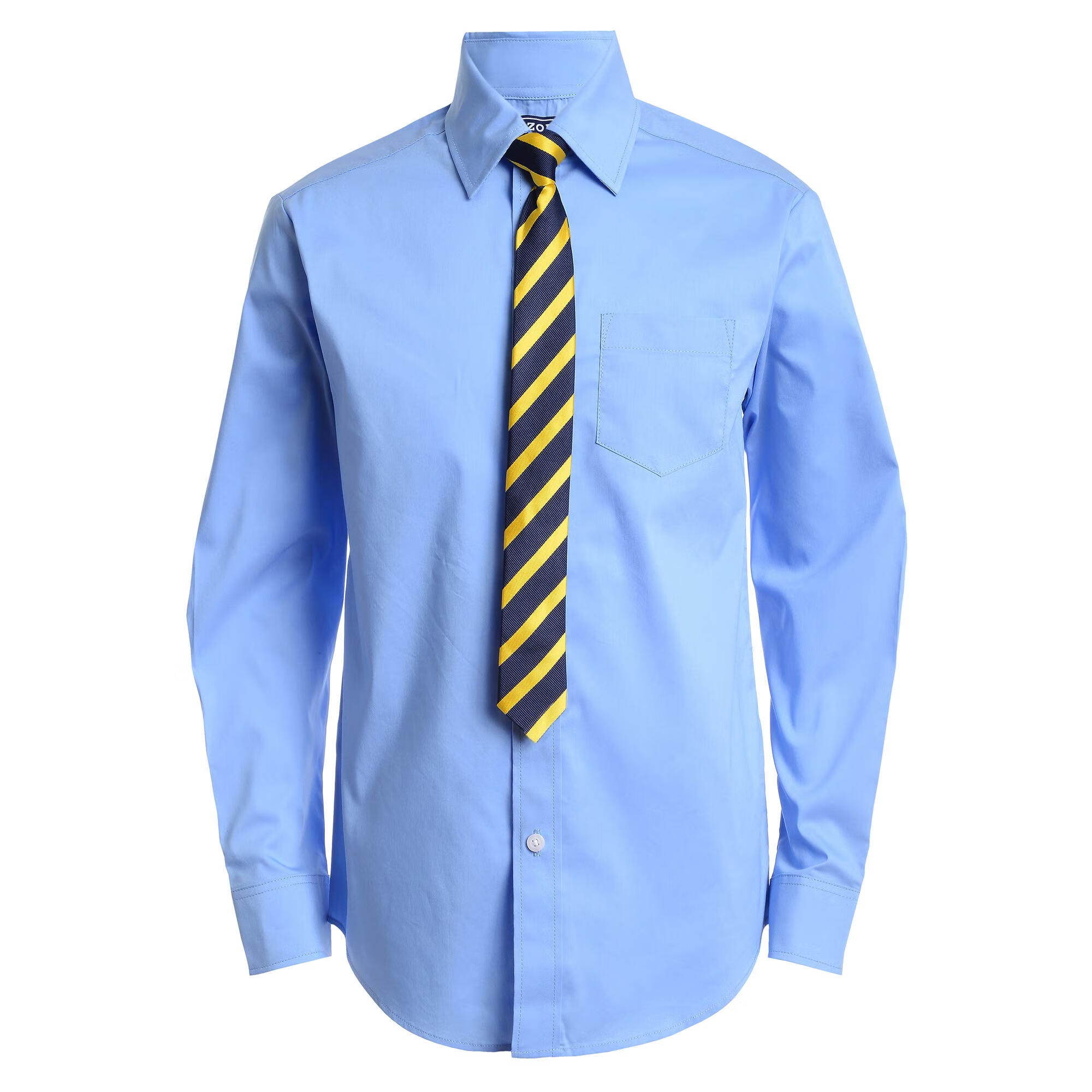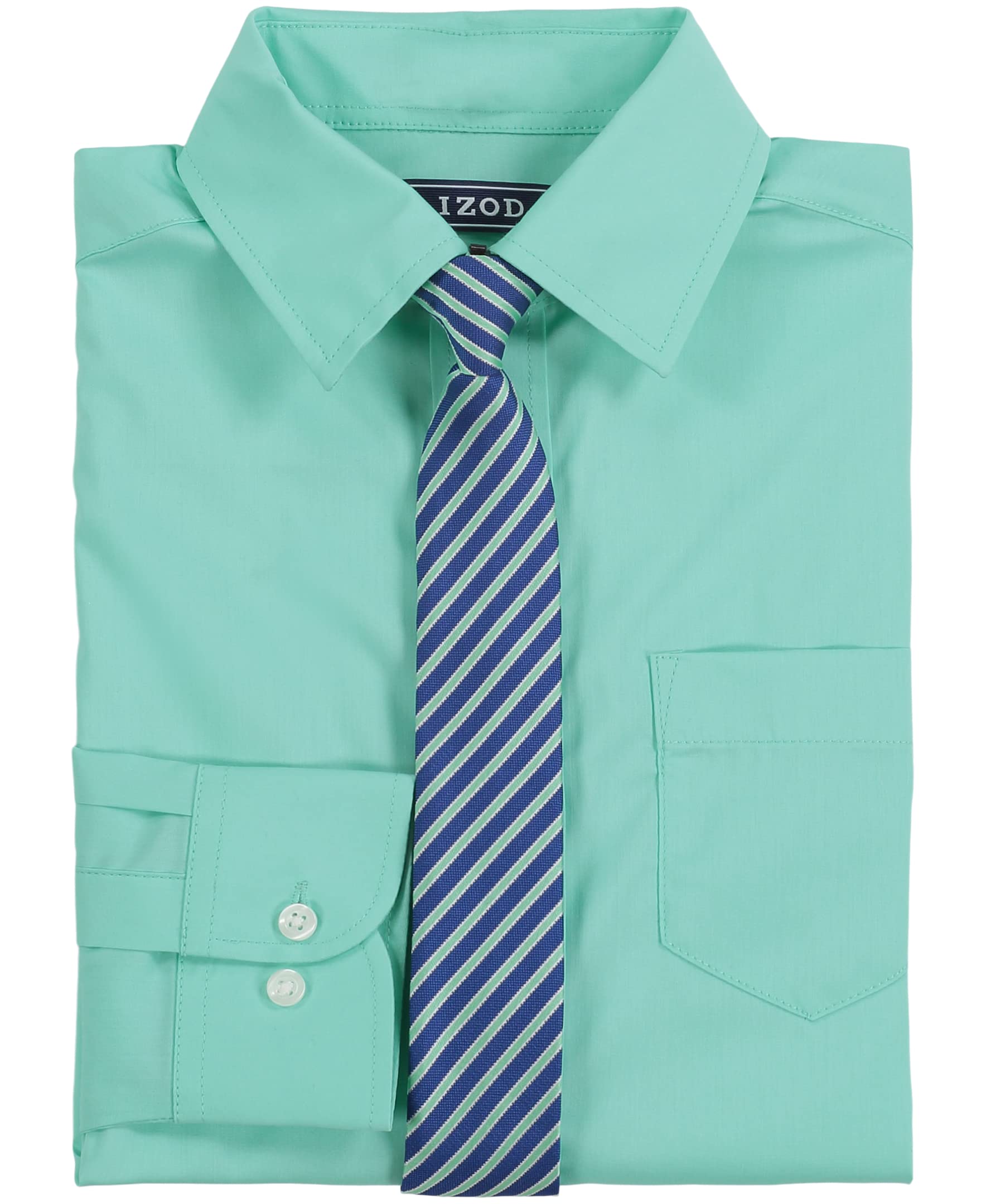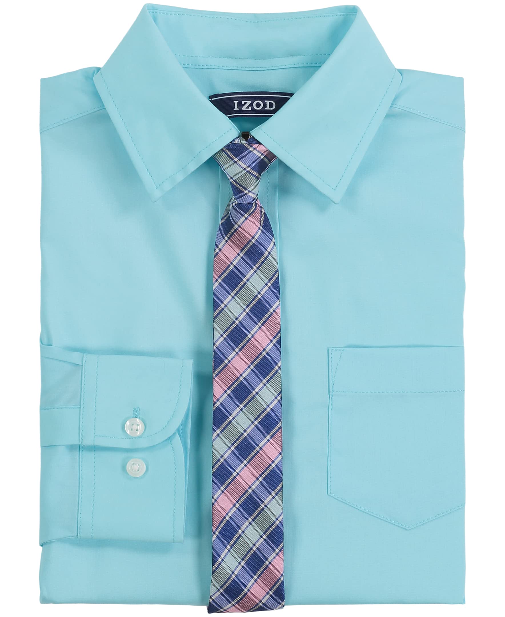 IZOD Boys Long Sleeve Button Collar Dress Shirt with Tie and Chest Pocket Dress White 18