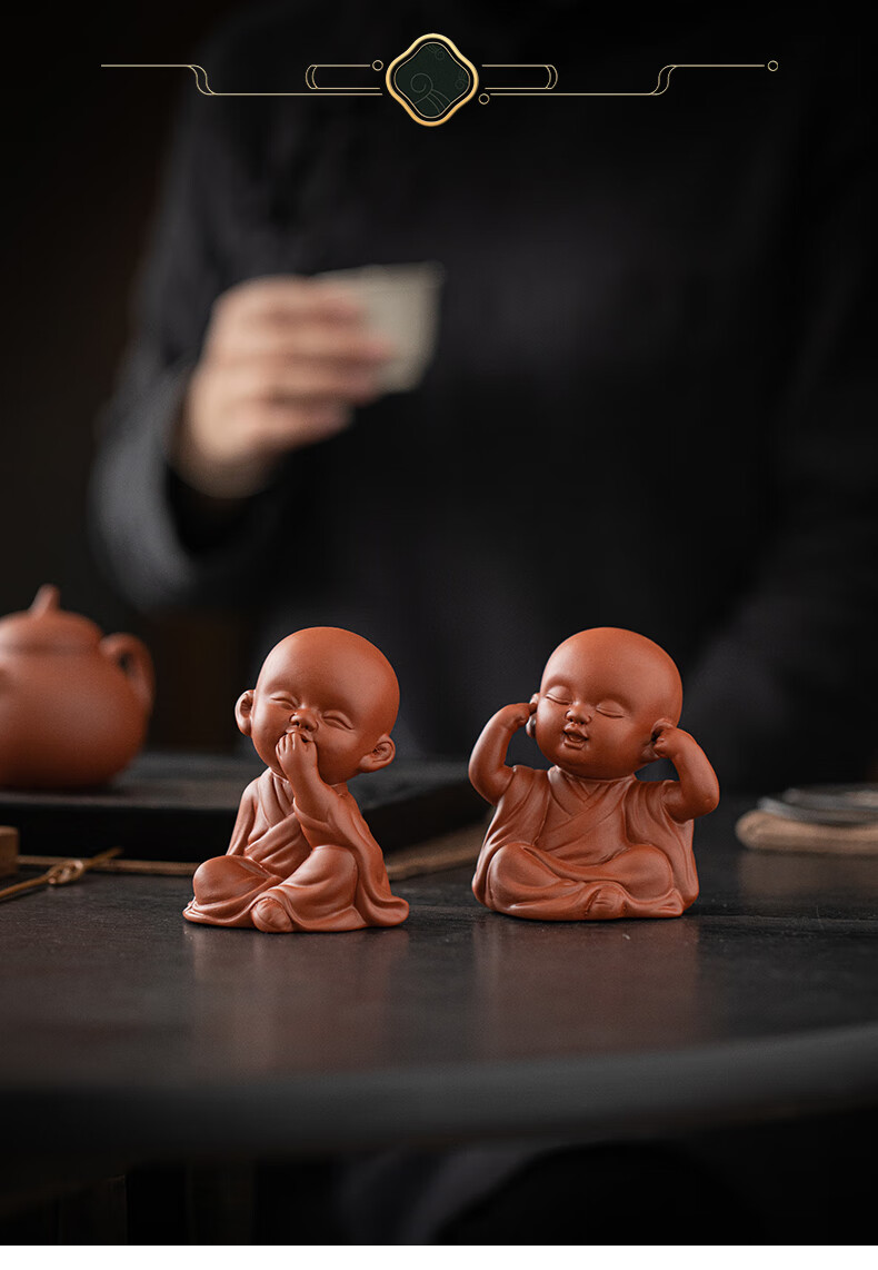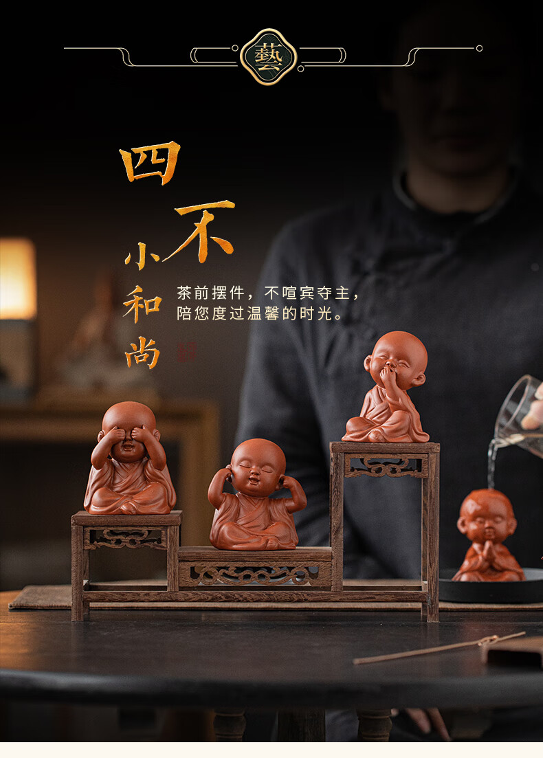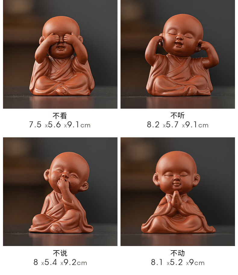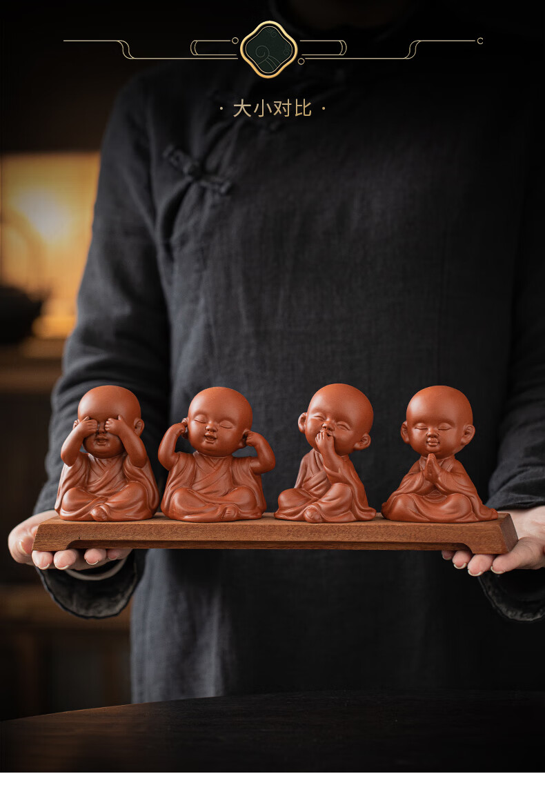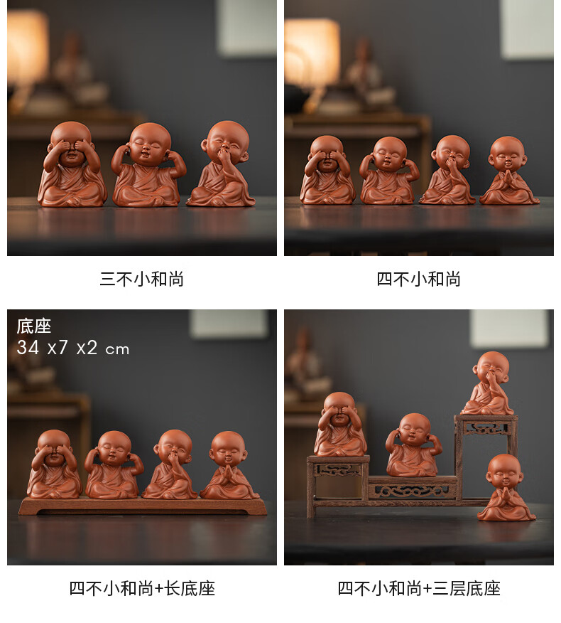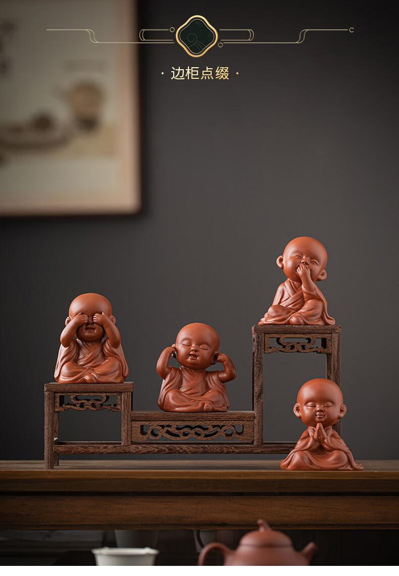 Creative purple sand four little monks tea pet ornaments Zen cute little novice monks boutique can grow tea table tea table decoration four little monks set + three-layer base/YZT