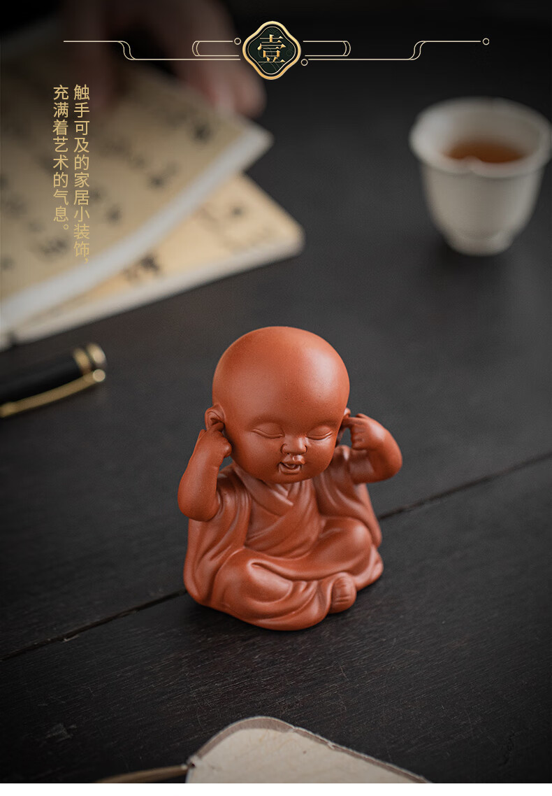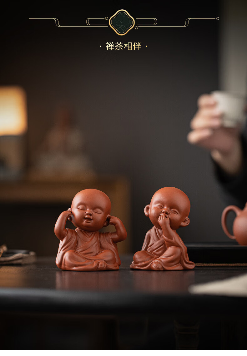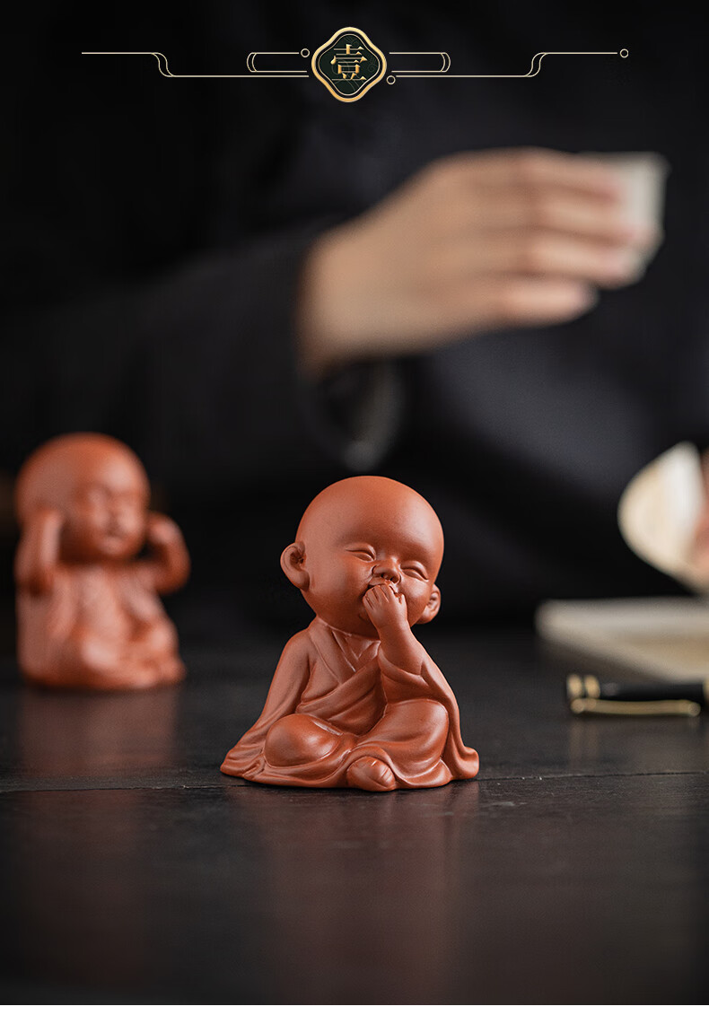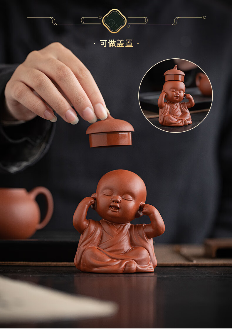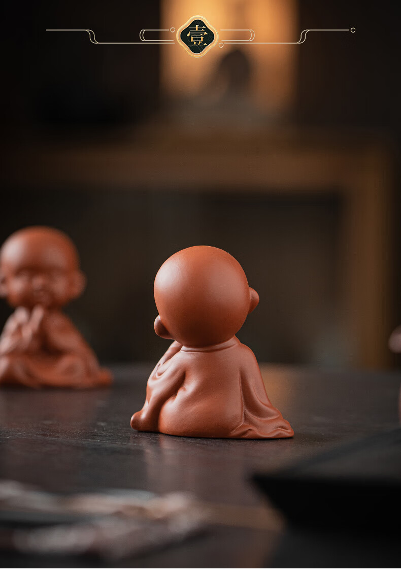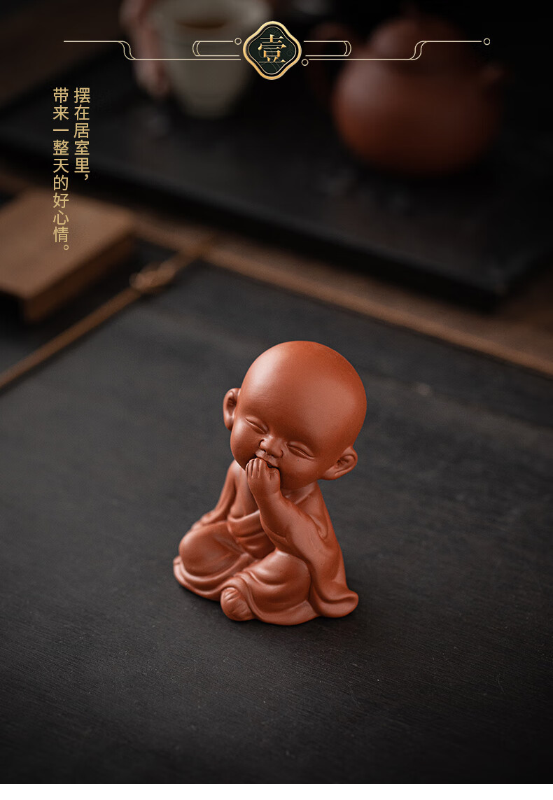 Creative purple sand four little monks tea pet ornaments Zen cute little novice monks boutique can grow tea table tea table decoration four little monks set + three-layer base/YZT