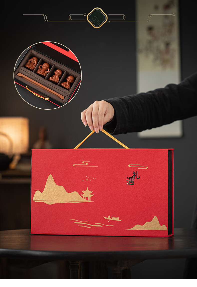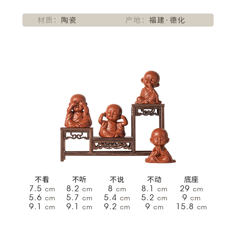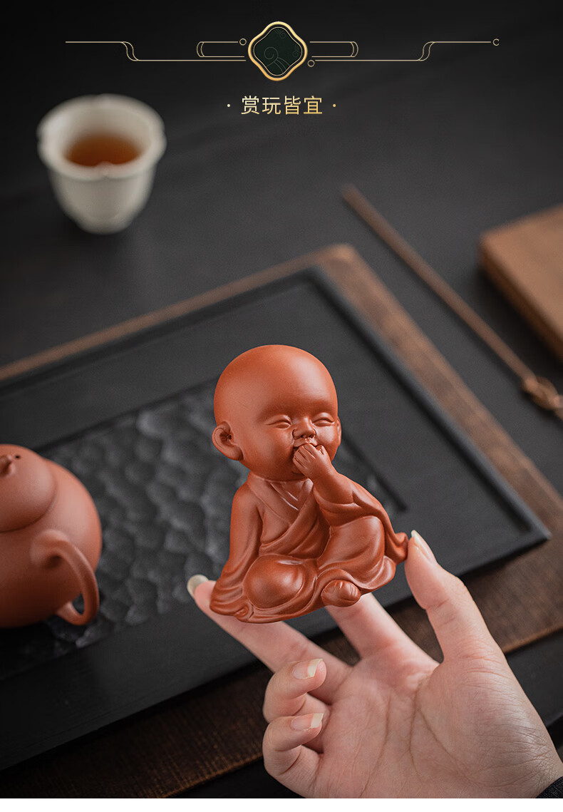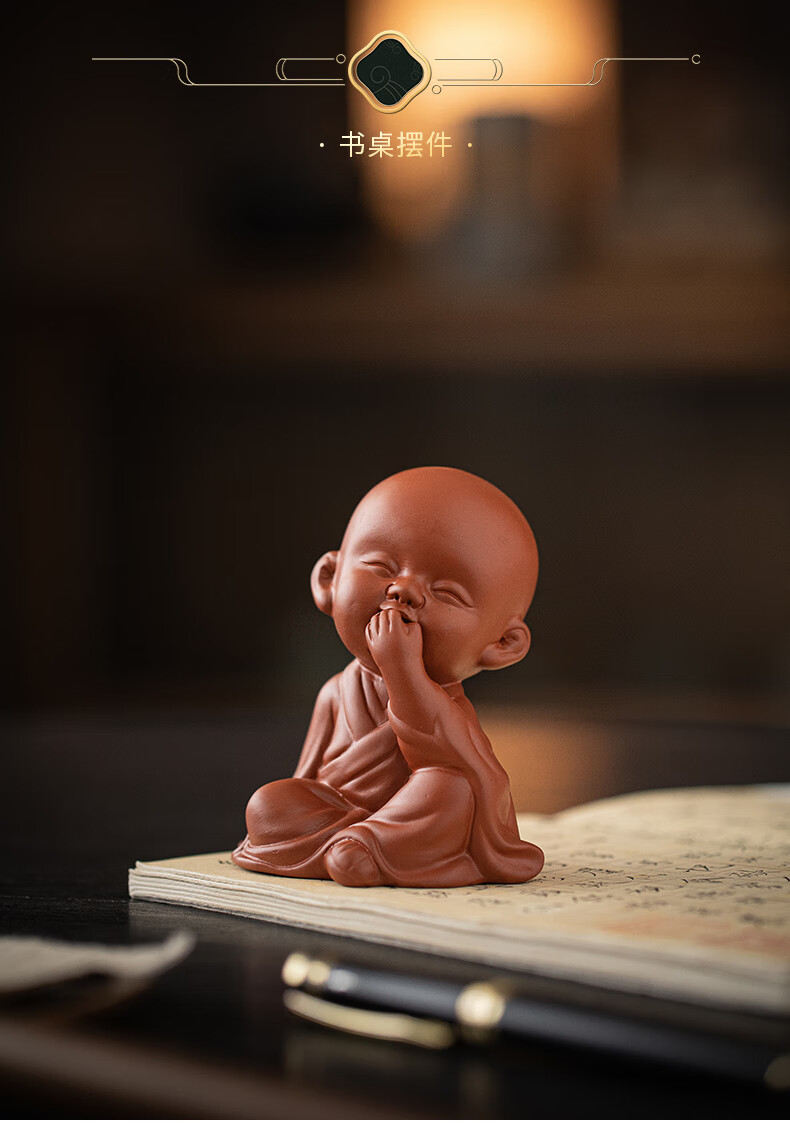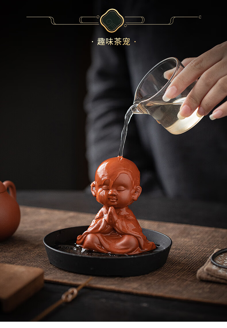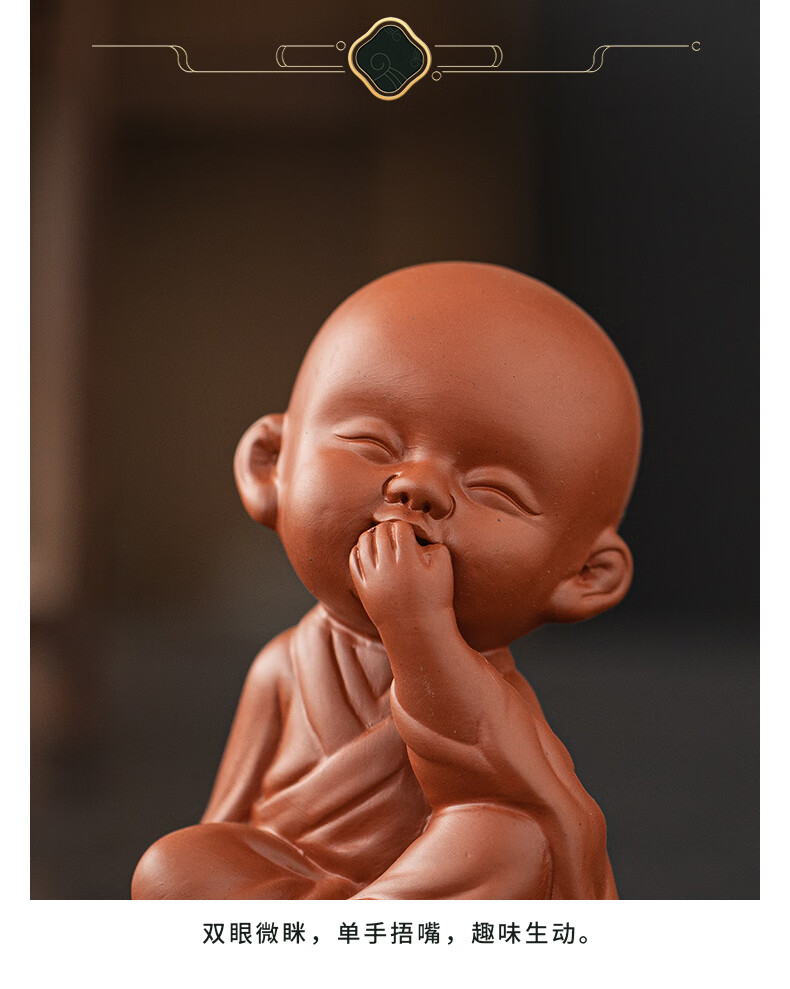 Creative purple sand four little monks tea pet ornaments Zen cute little novice monks boutique can grow tea table tea table decoration four little monks set + three-layer base/YZT