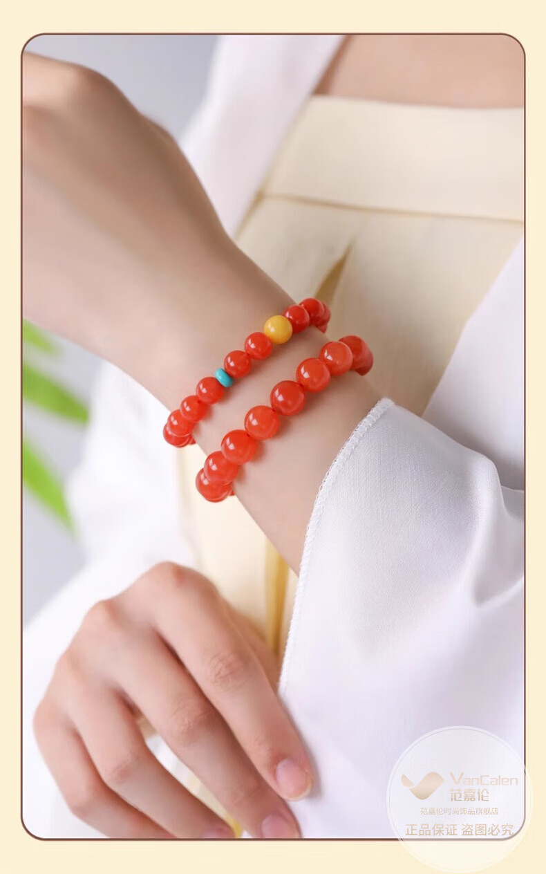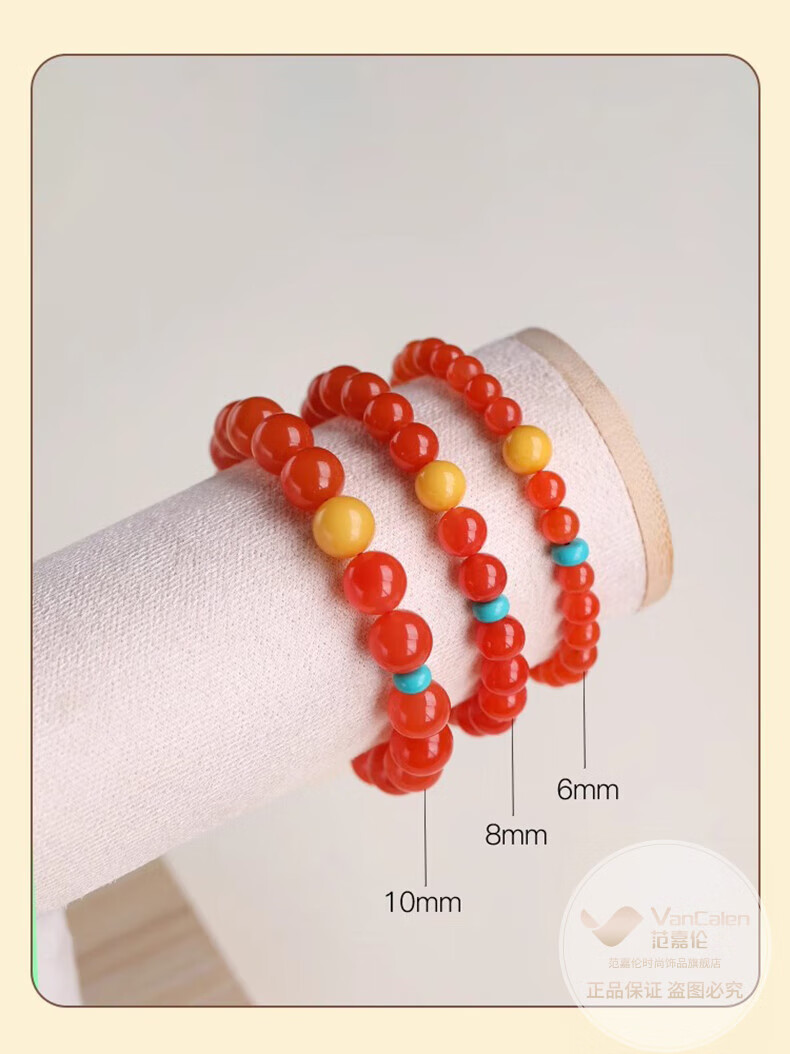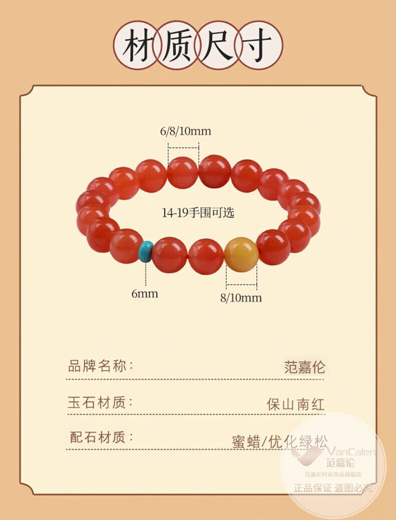 Fan Jialunnan red bracelet for women cherry red Baoshan ice red good luck gift full of raw mineral beaded beeswax high-end bracelet 6mm cherry bracelet
