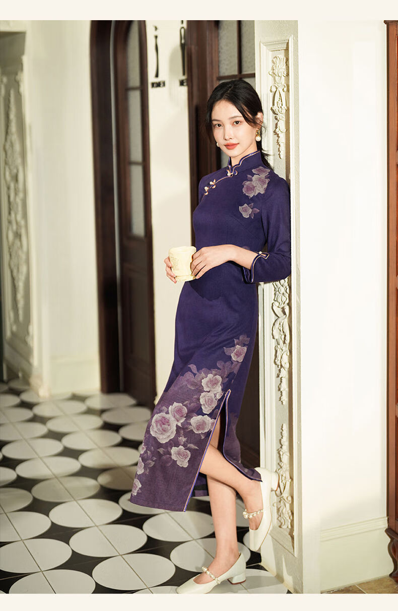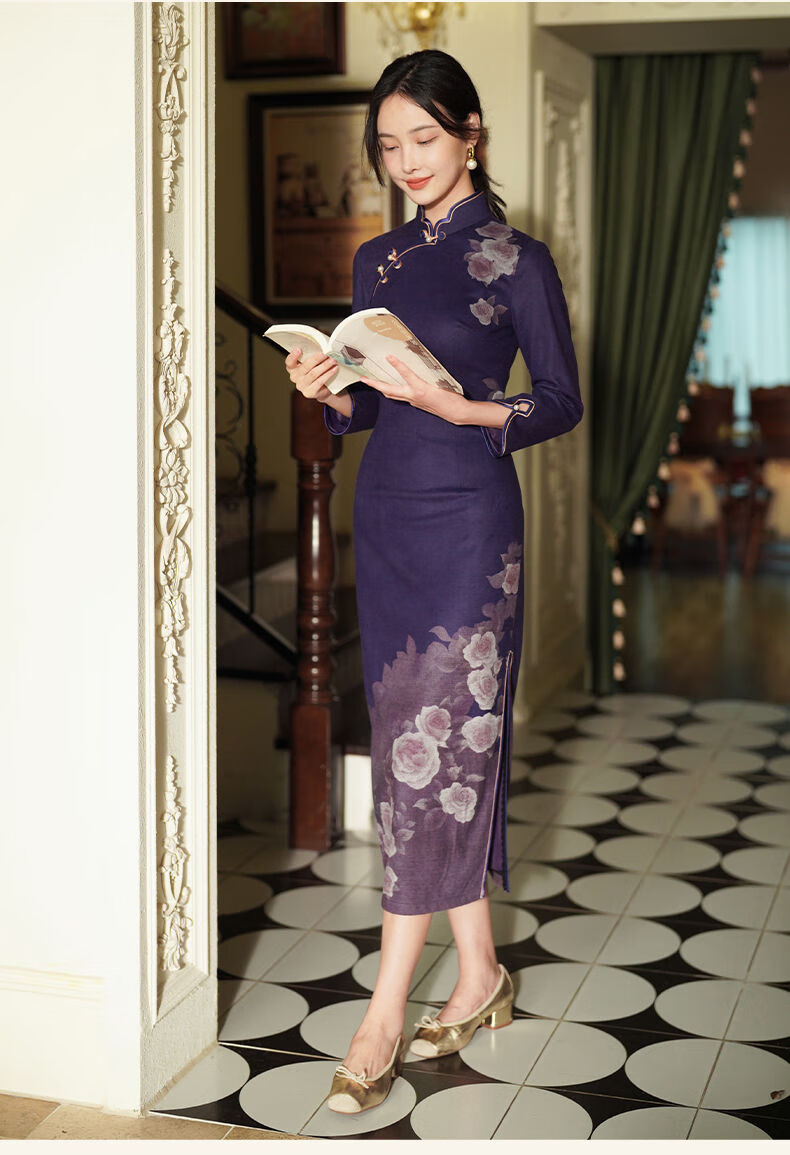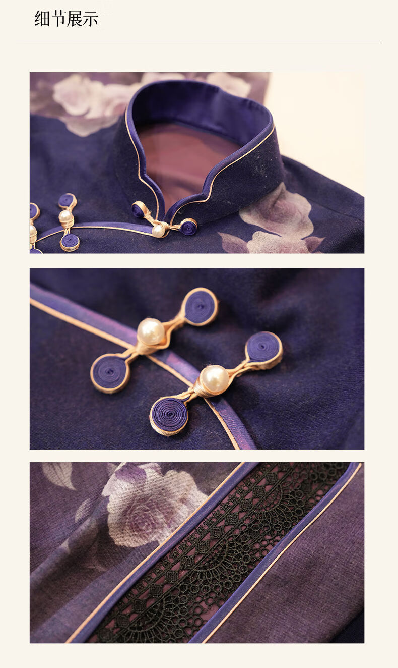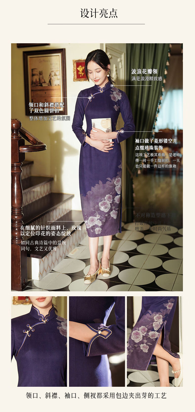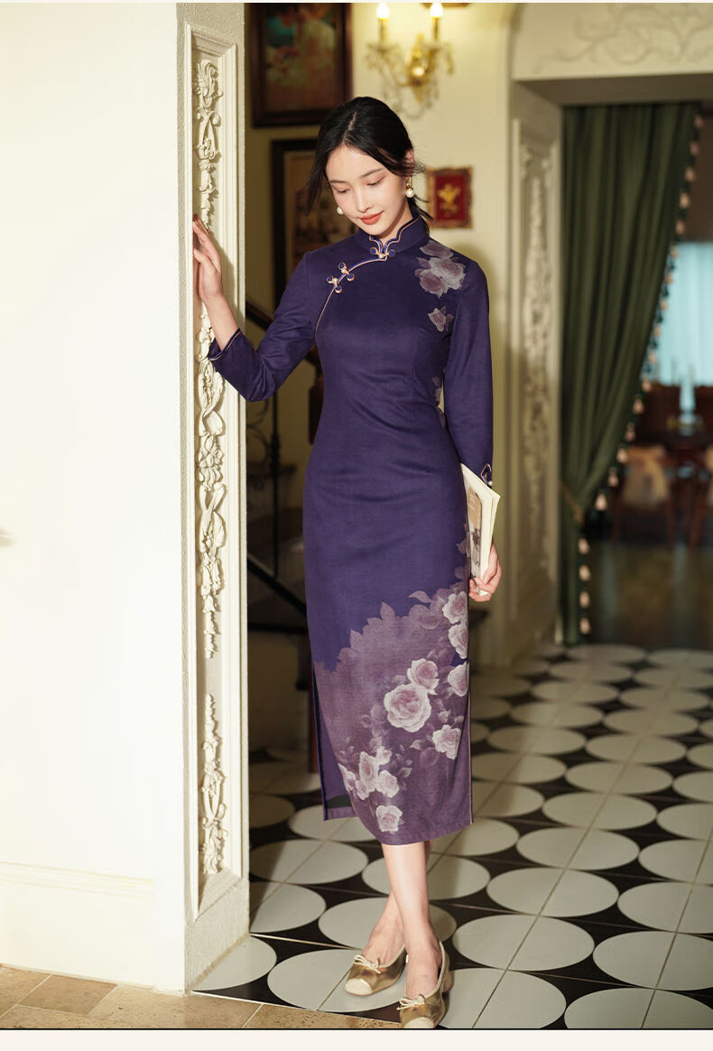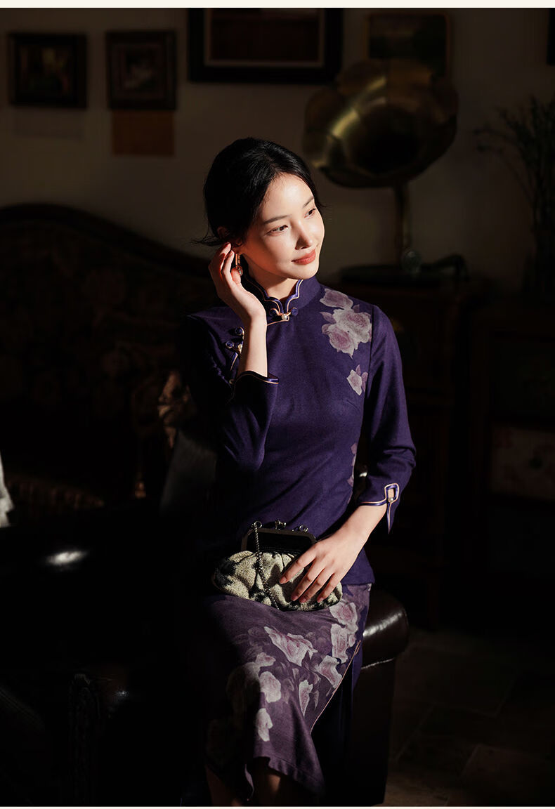 E.Beauty Shuyao 2025 early spring new positioning flower knitted brushed new Chinese style daily improved cheongsam dark jade purple 2XL