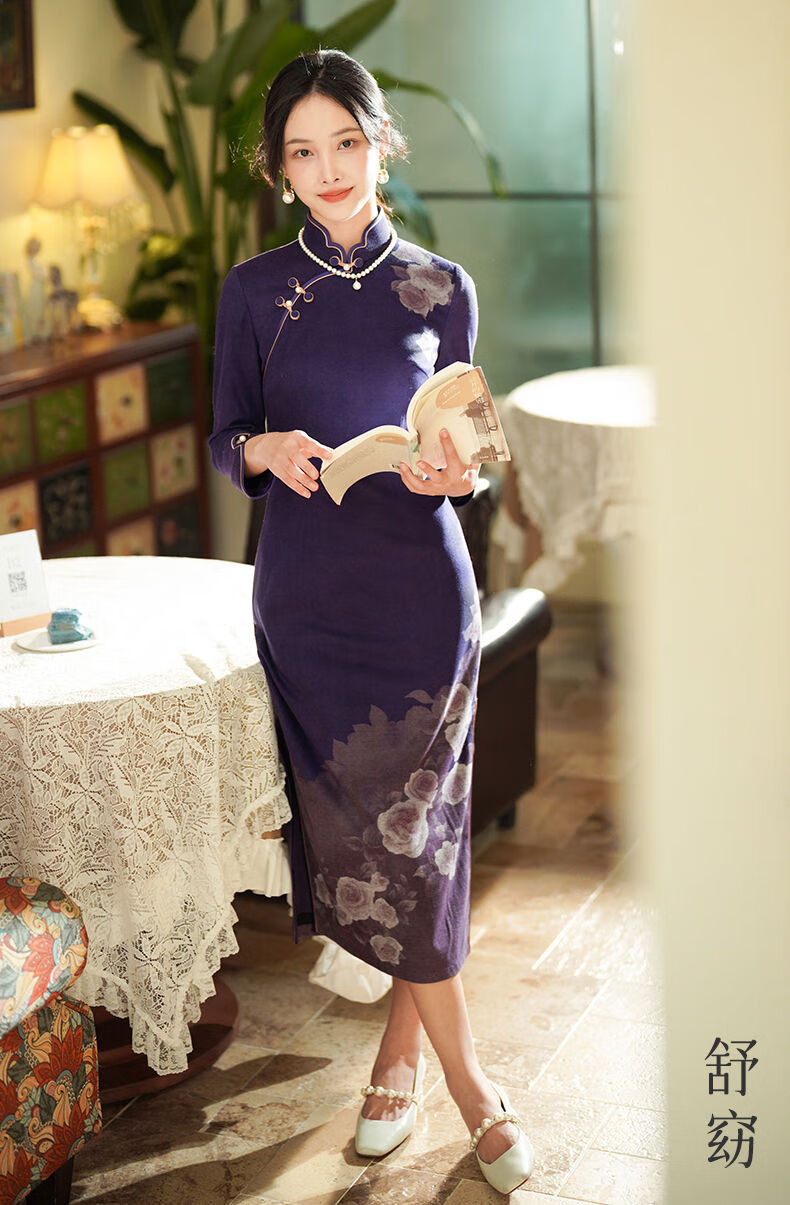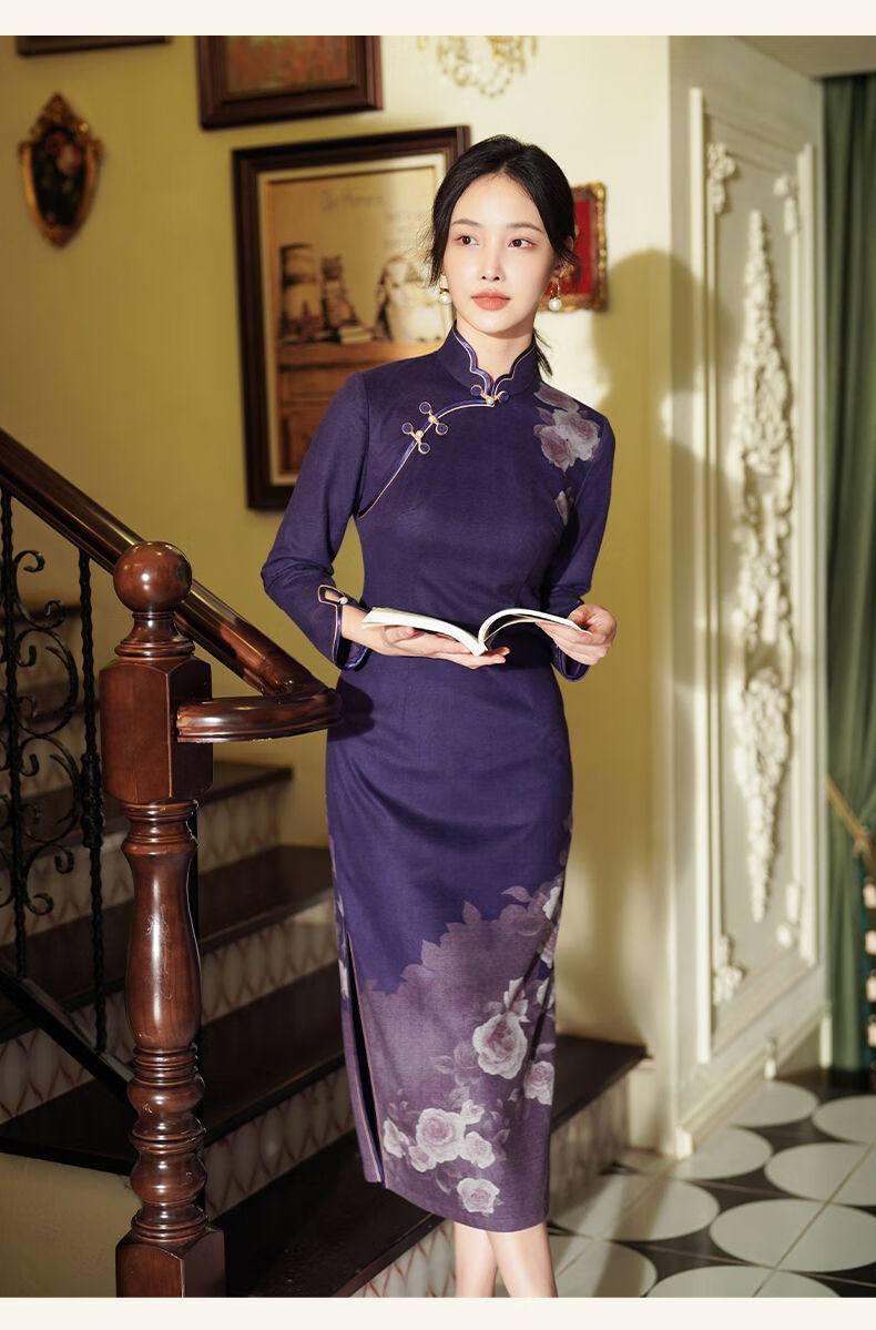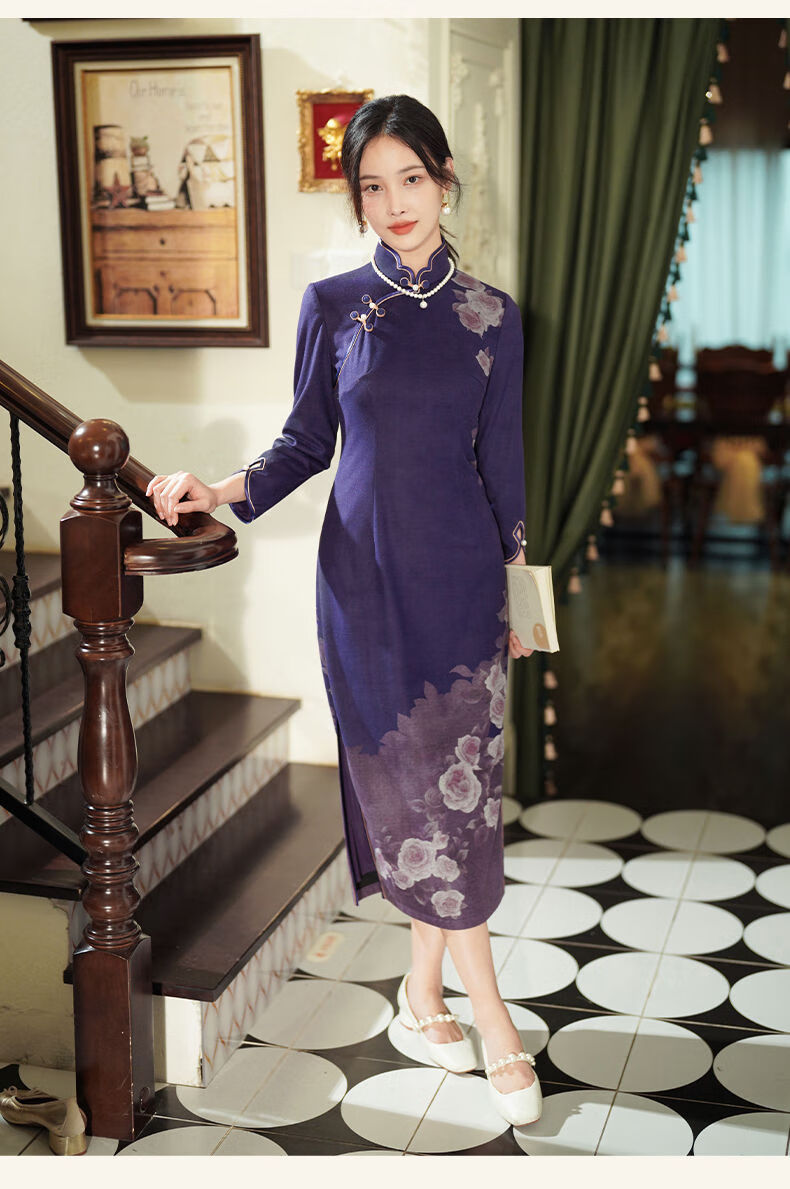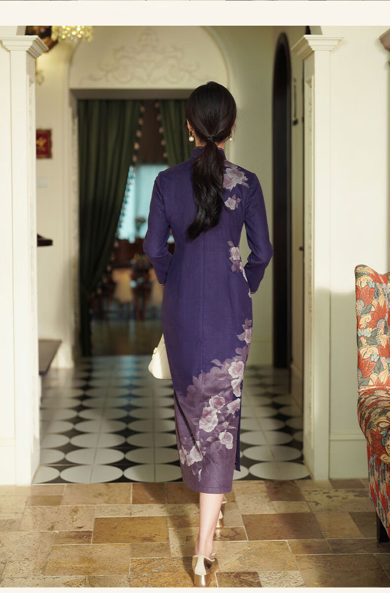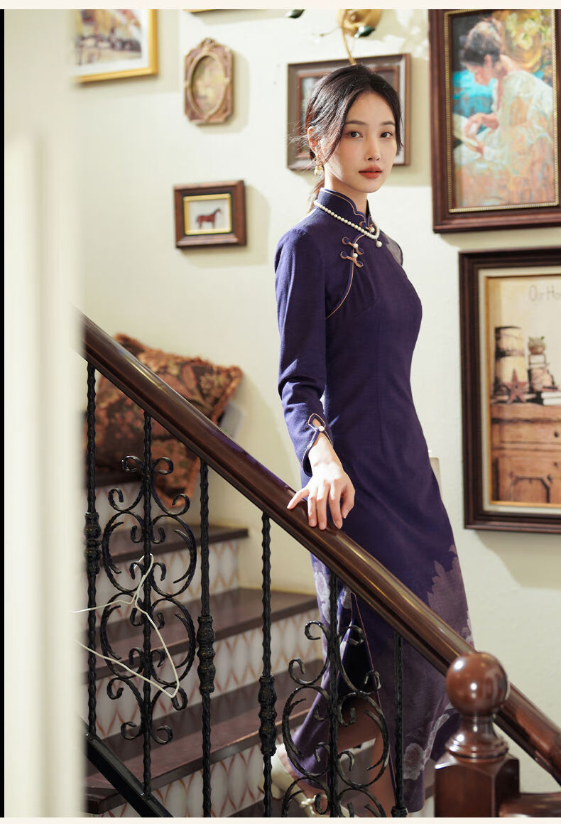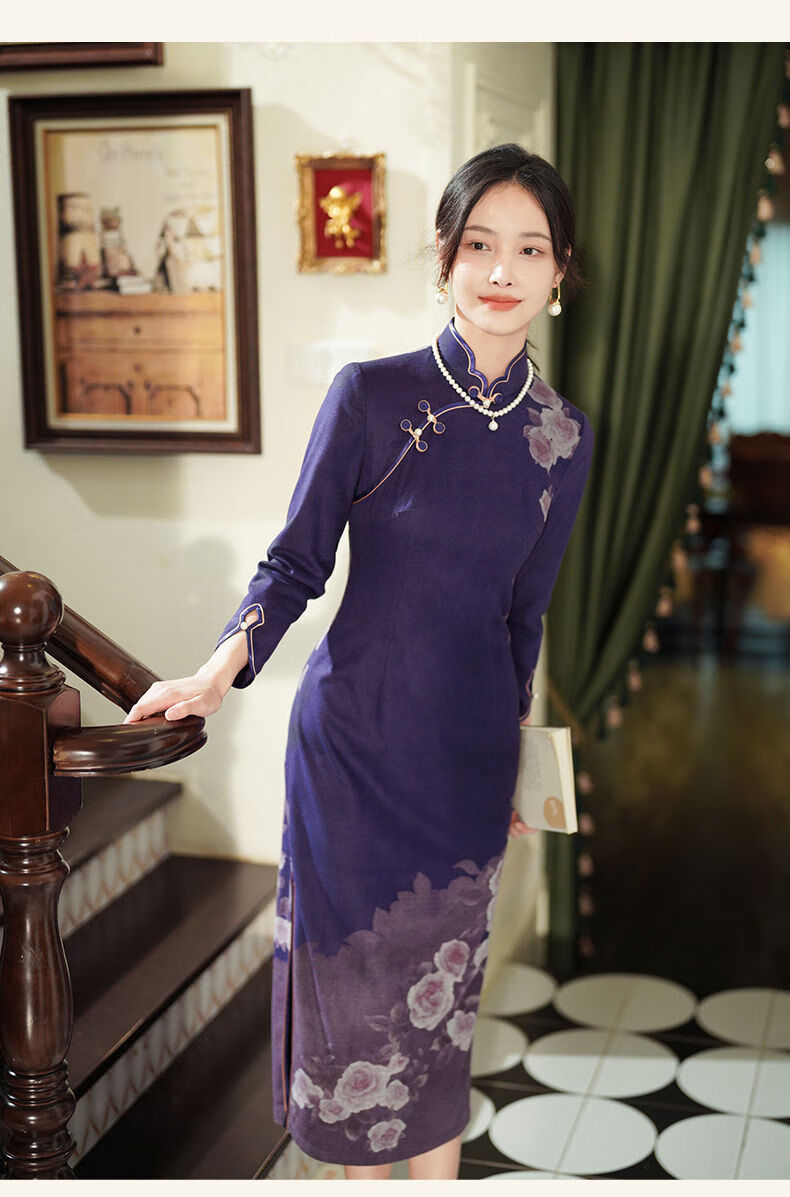E.Beauty Shuyao 2025 early spring new positioning flower knitted brushed new Chinese style daily improved cheongsam dark jade purple 2XL