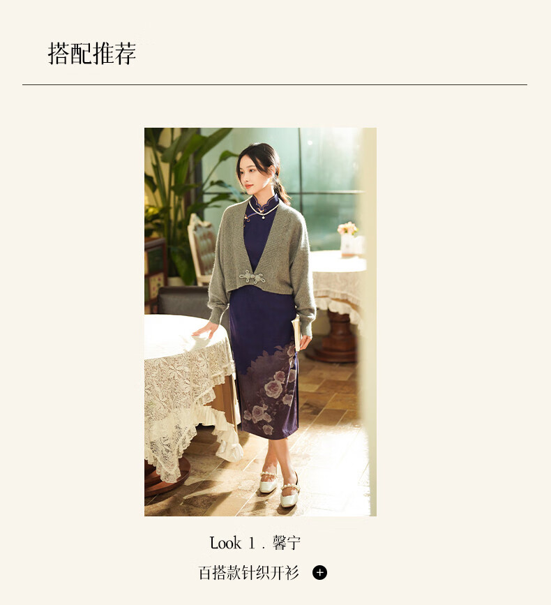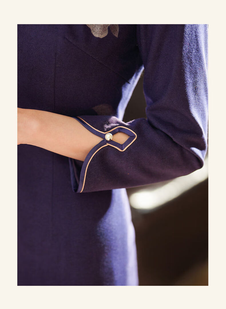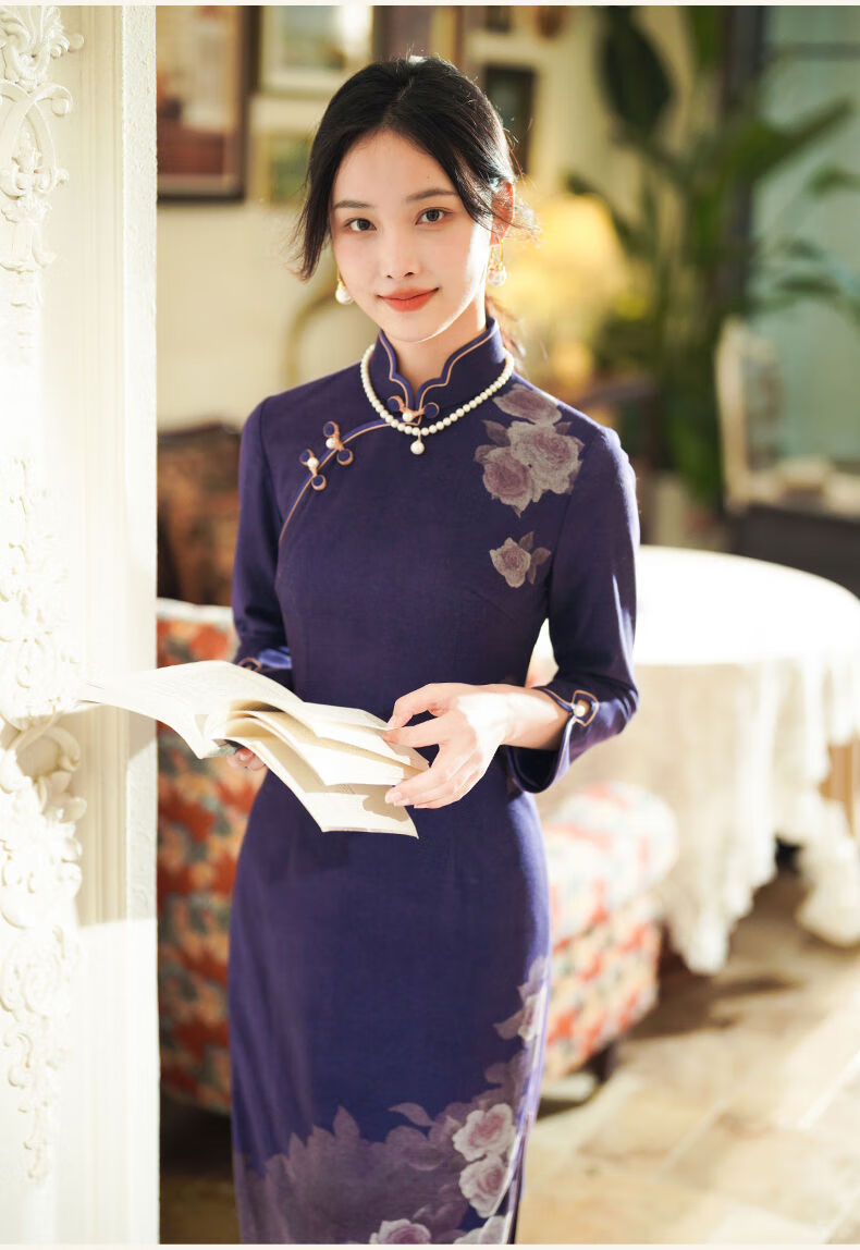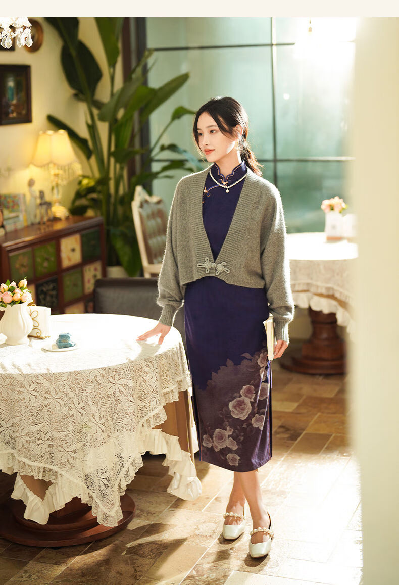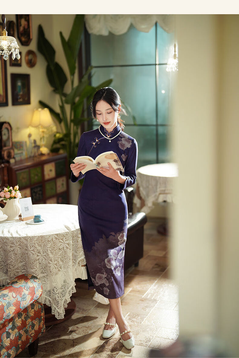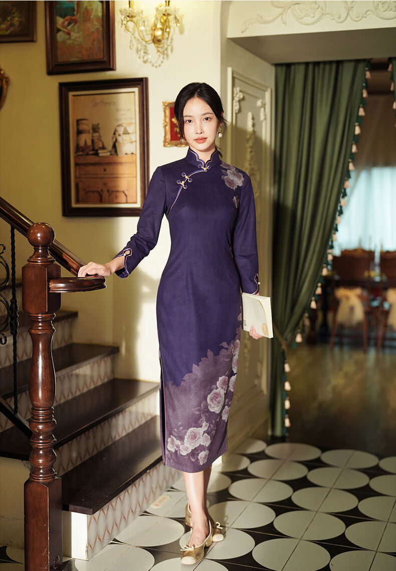 E.Beauty Shuyao 2025 early spring new positioning flower knitted brushed new Chinese style daily improved cheongsam dark jade purple 2XL