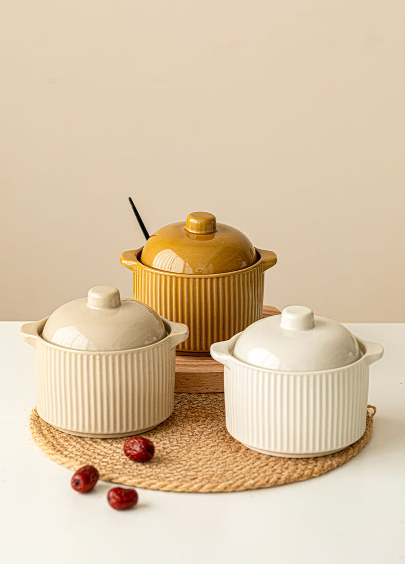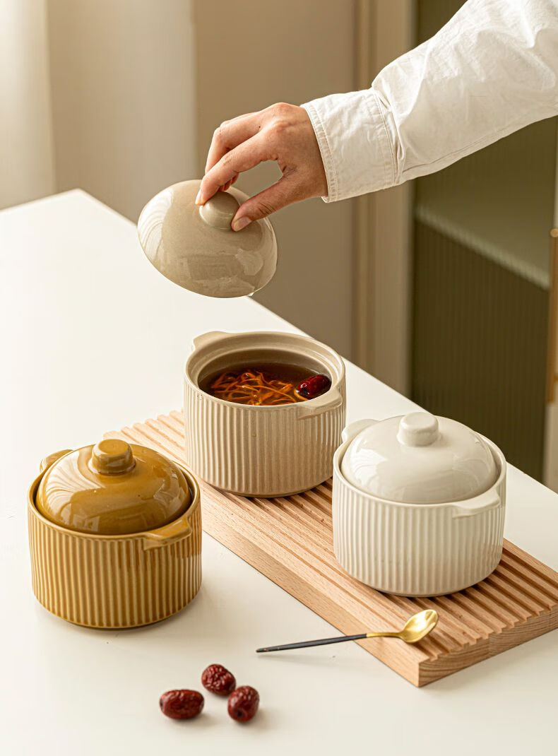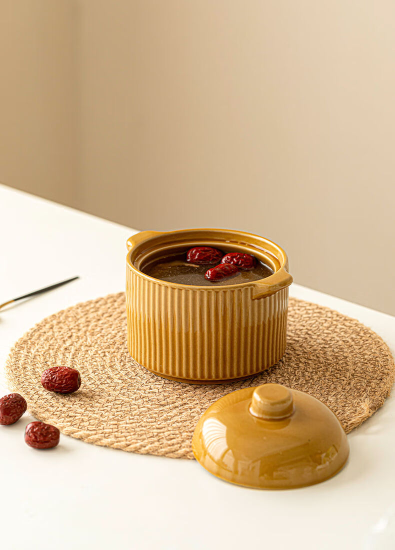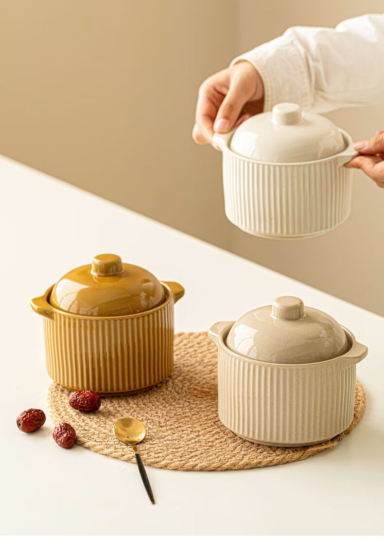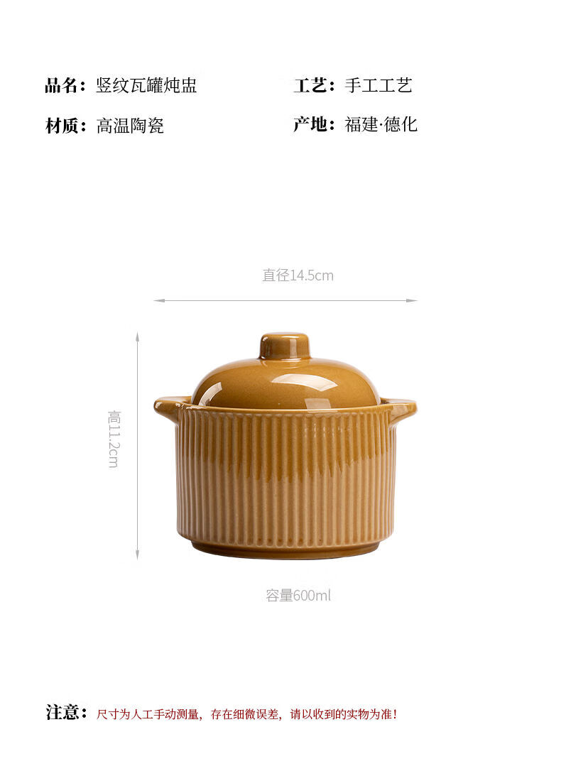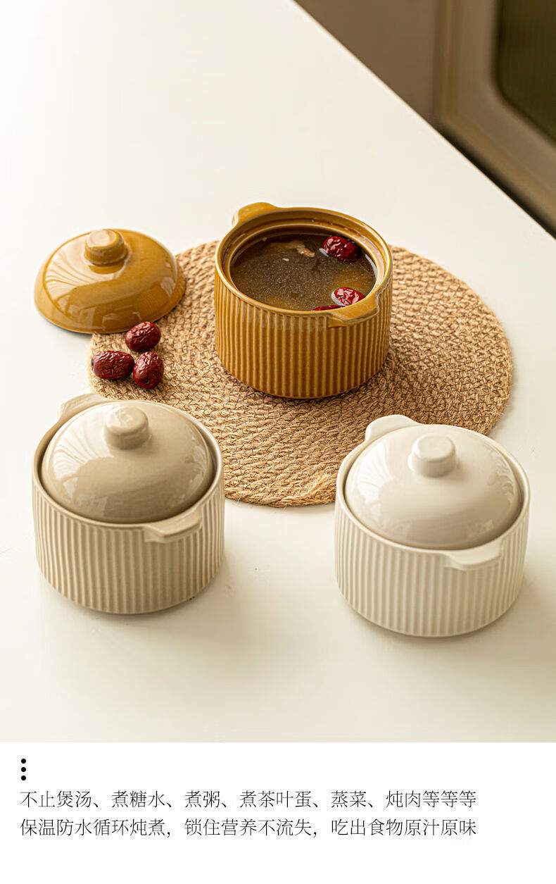 Yundi earthenware pot simmering soup ceramic steamed water-proof stew pot with lid small stew pot soup pot bowl household Shaxian snacks for one person earthen pot vertical pattern milk white 600 ml single