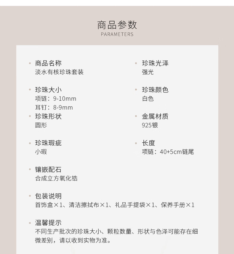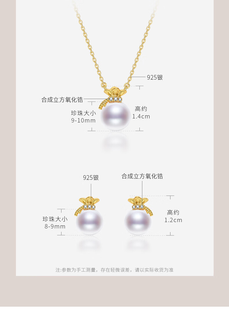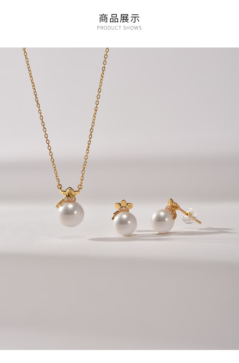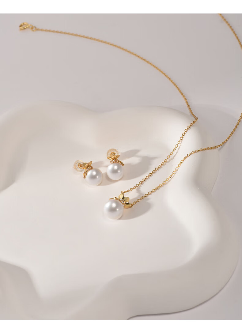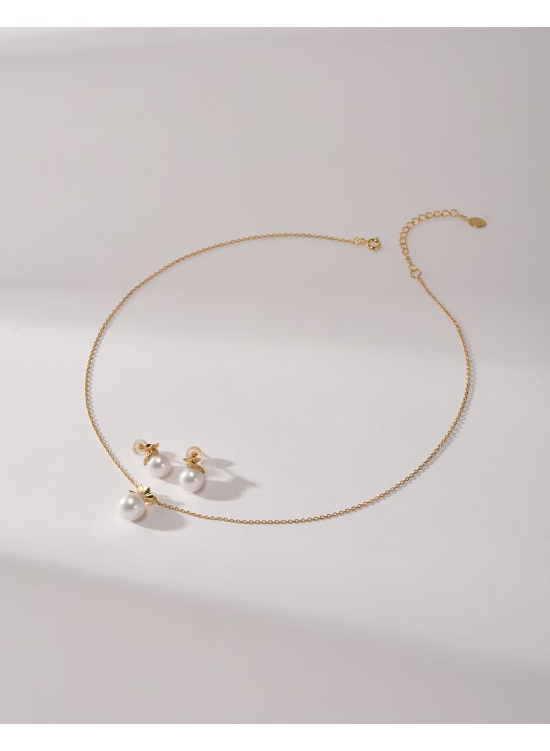 Jingrun Pearl Pendant Small Lucky Bag 925 Silver Freshwater Nuclear Pearl Round Pendant Chain Earrings Birthday Gift Pendant Chain 9-10mm 40+5cm Chain Tail