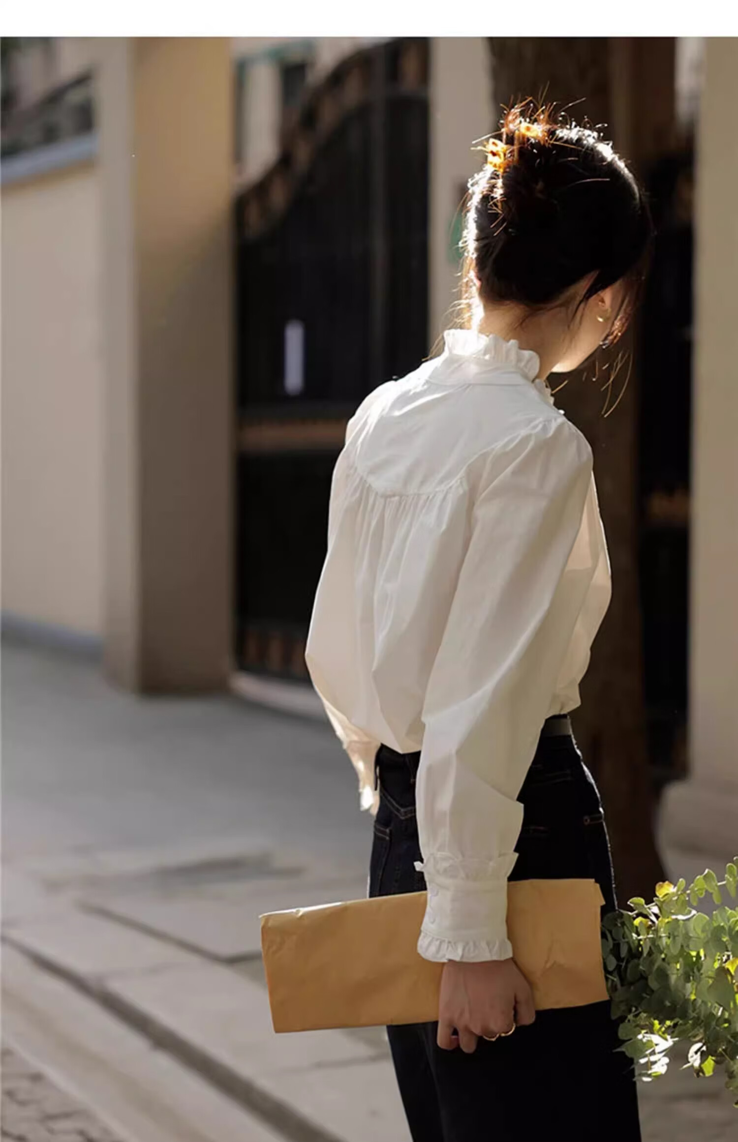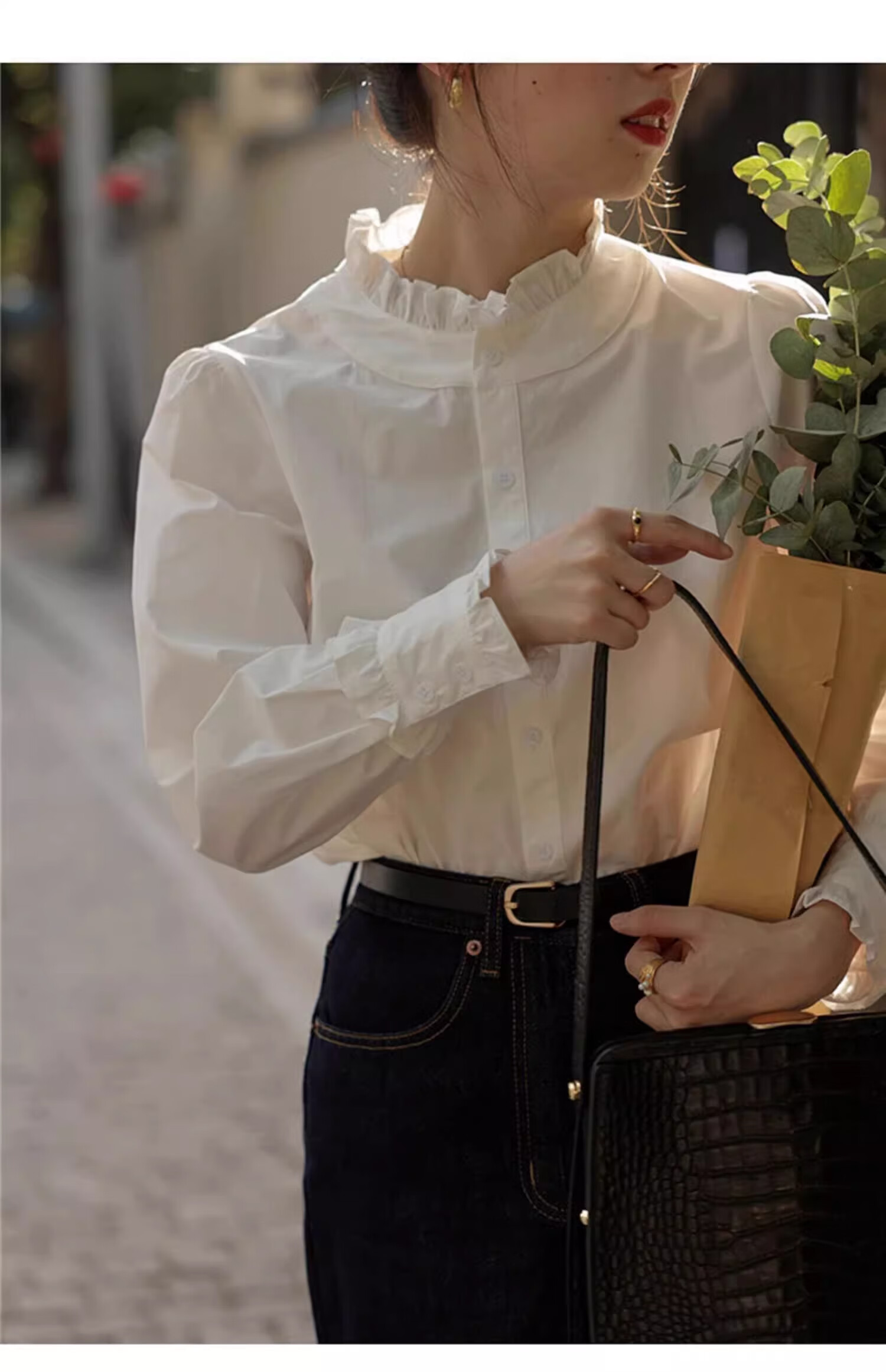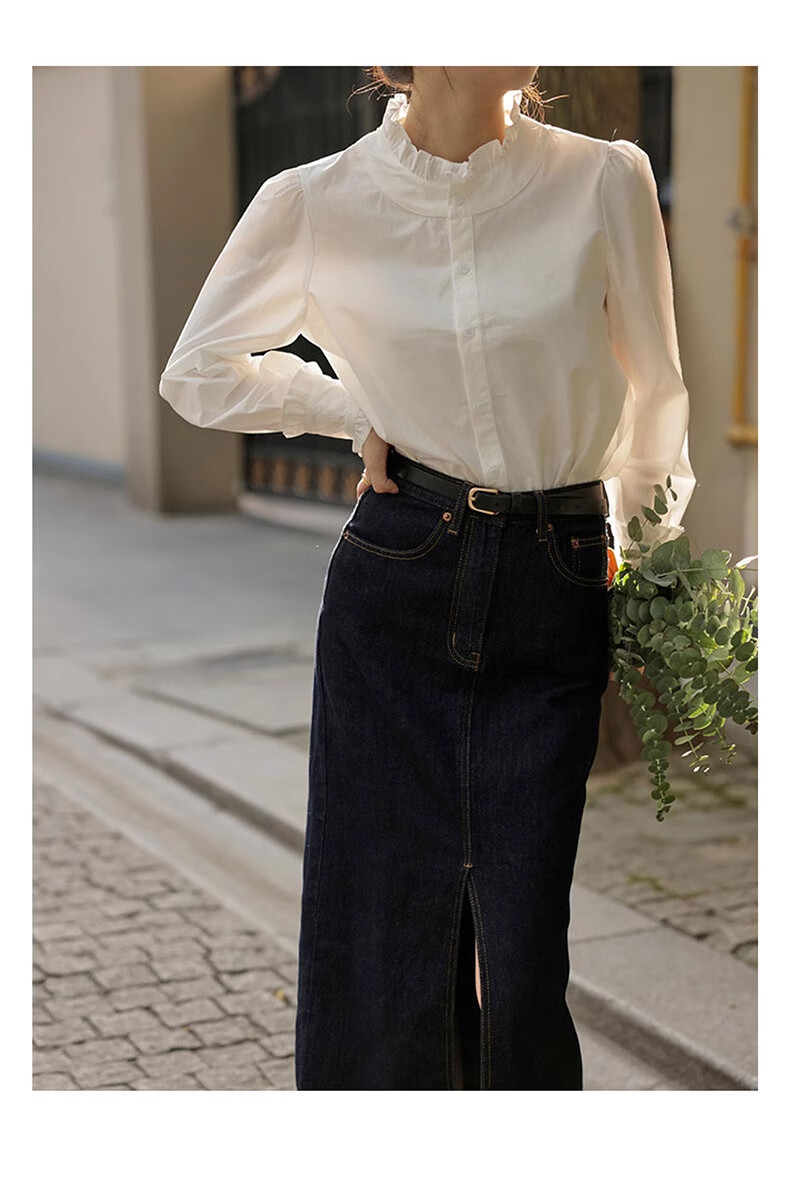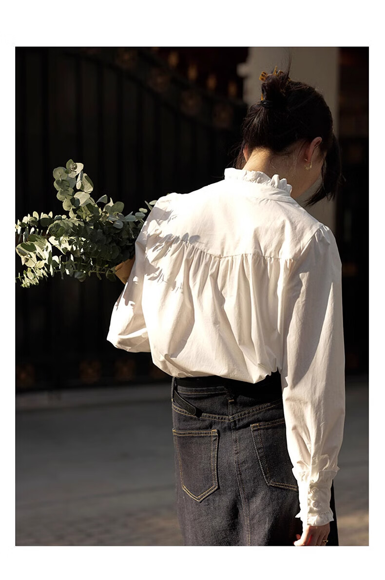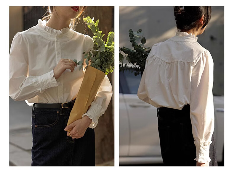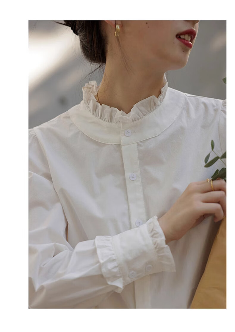 Shimmer shirt women's white lace collar 2025 new early autumn temperament shirt literary and versatile French shirt long-sleeved top lace shirt white M