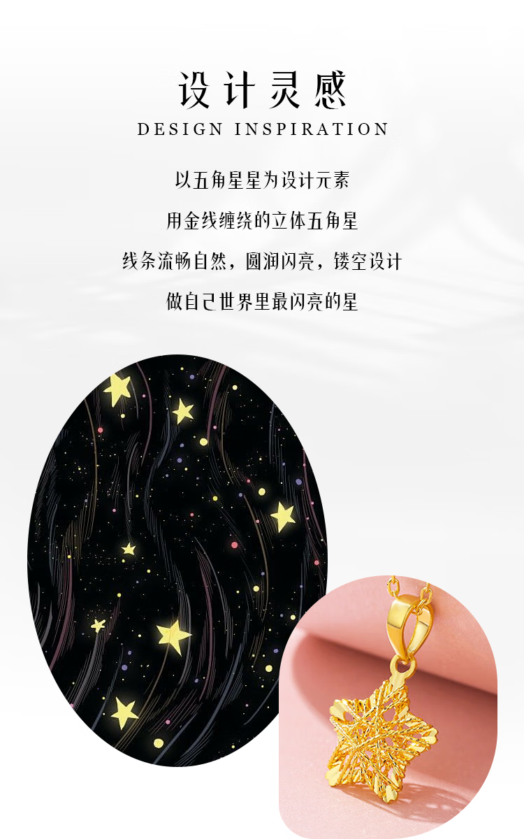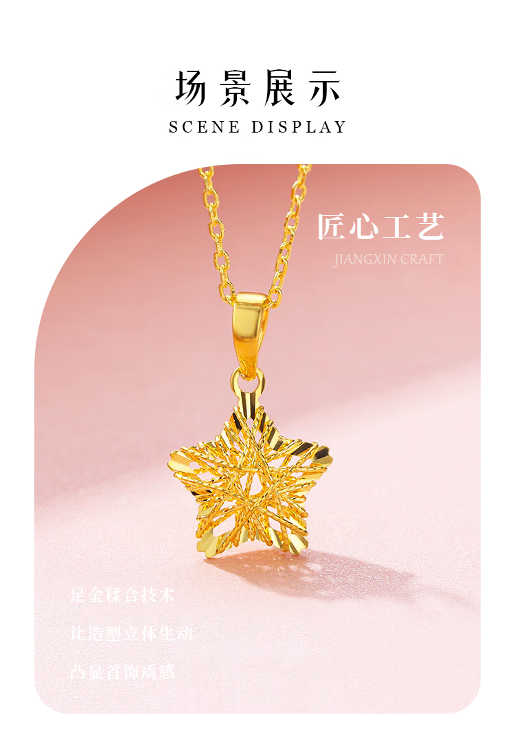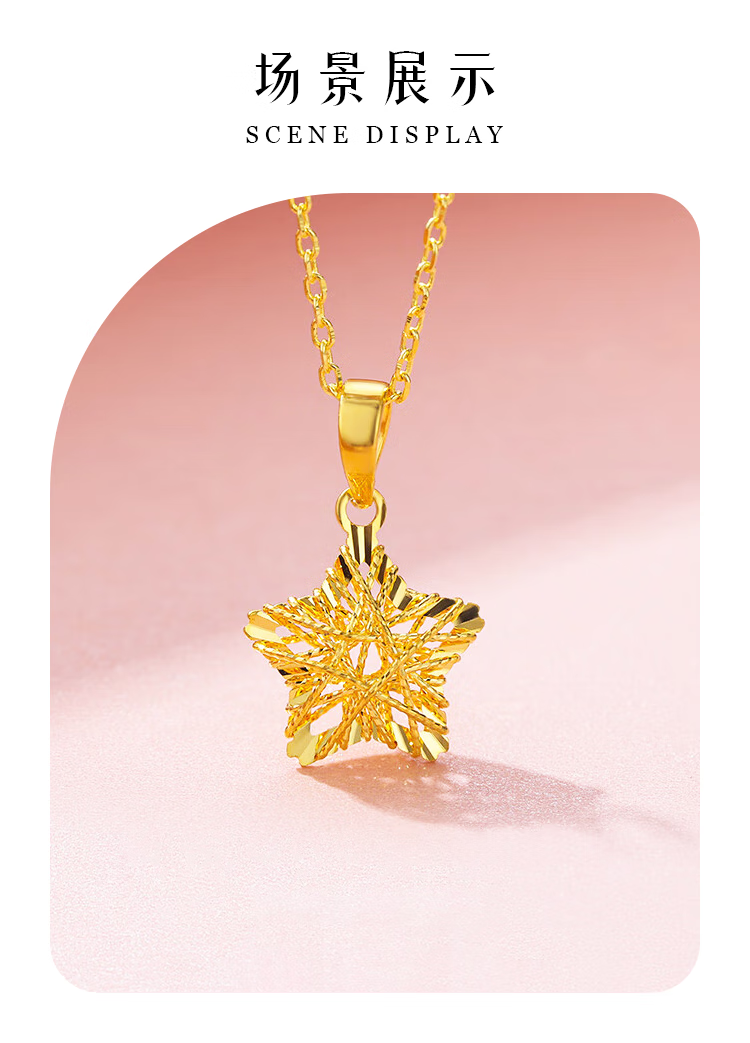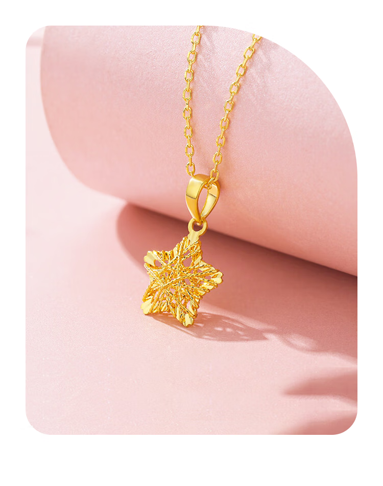 CHINA GOLD Wound Star Gold Necklace Women's Pentagram Pure Gold Pendant Pendant Valentine's Day Birthday Gift for Girlfriend Today/Next Day Delivery Wound Star Pendant + S925 Silver Chain About 1g