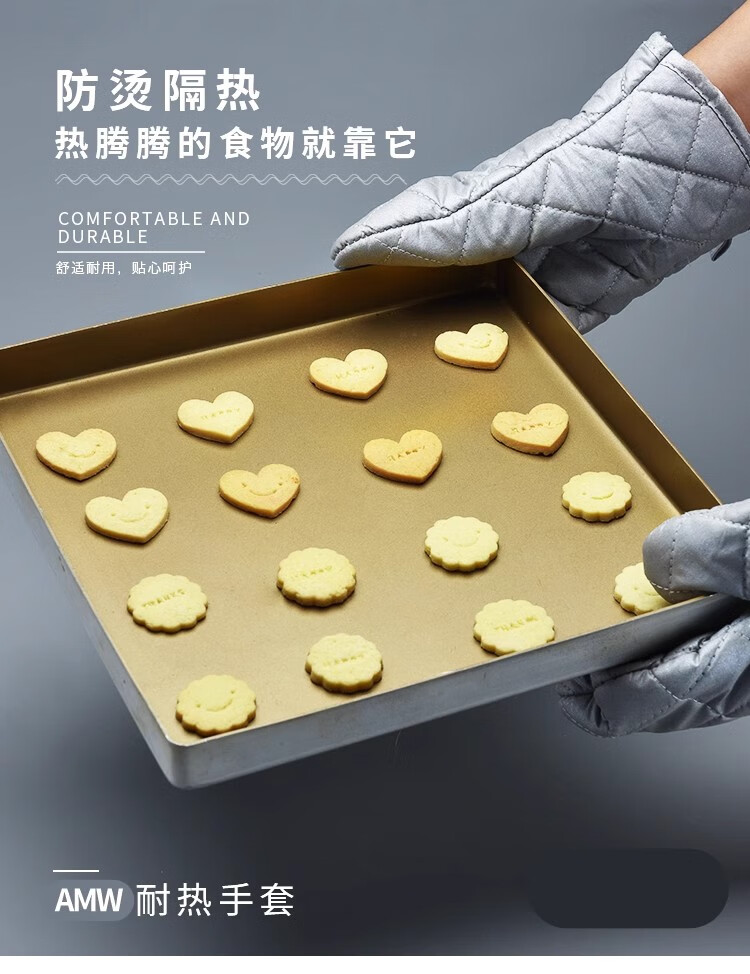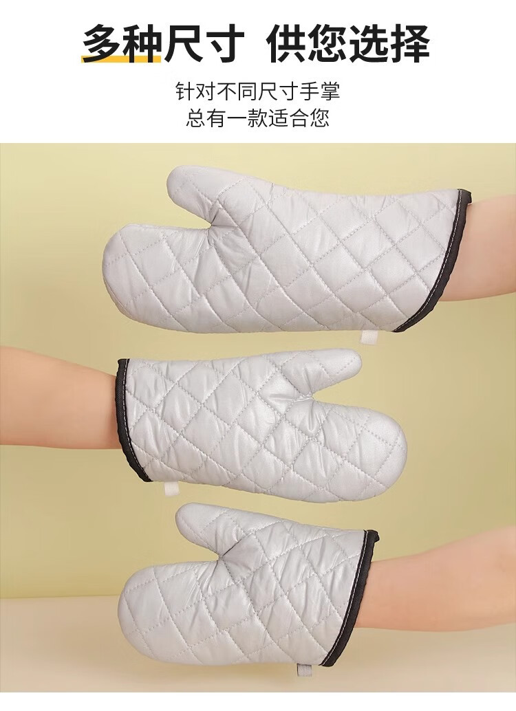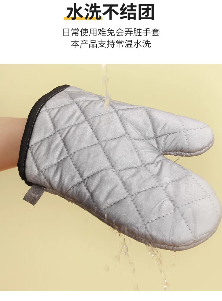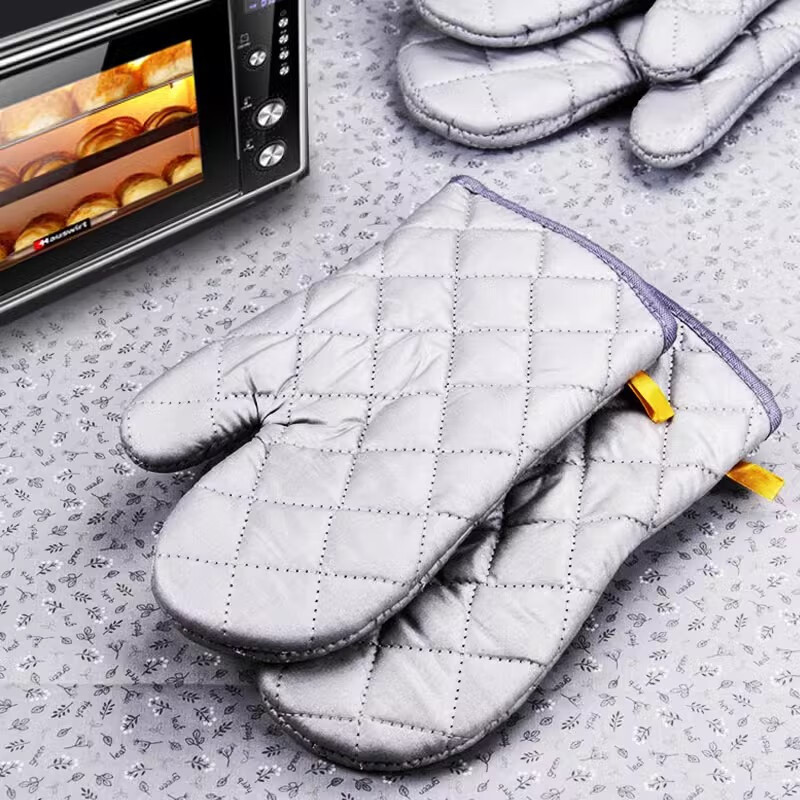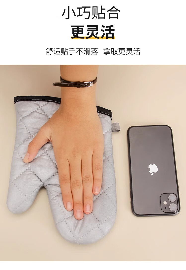 Anti-scalding heat-insulating gloves kitchen thickened oven microwave oven high-temperature household baking set 2 pairs packed five-layer thickened large silver