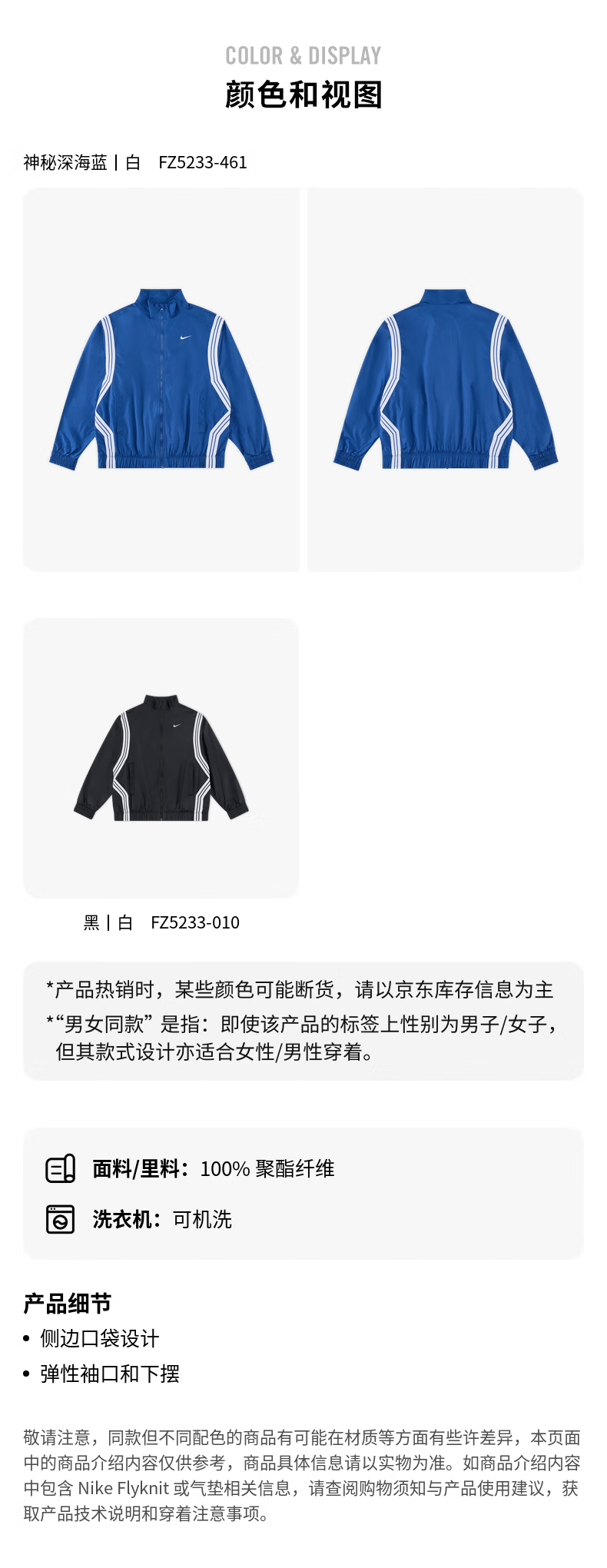 Nike Big Children's Loose Water-Repellent Basketball Jacket for Boys and Girls Lightweight Woven Sports Jacket NIKE FZ5233 010 Black/White 160 XL