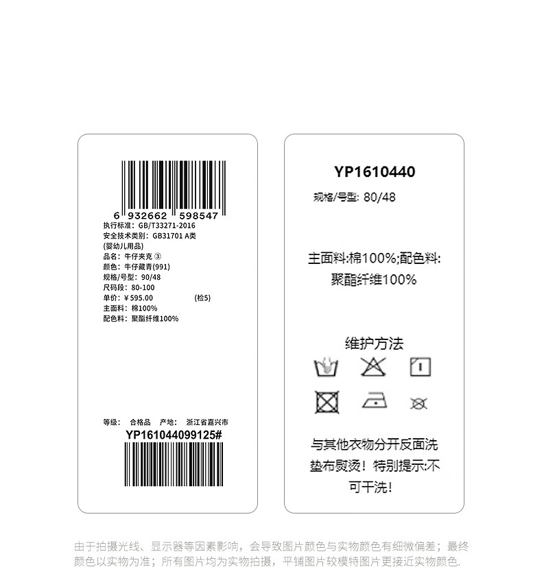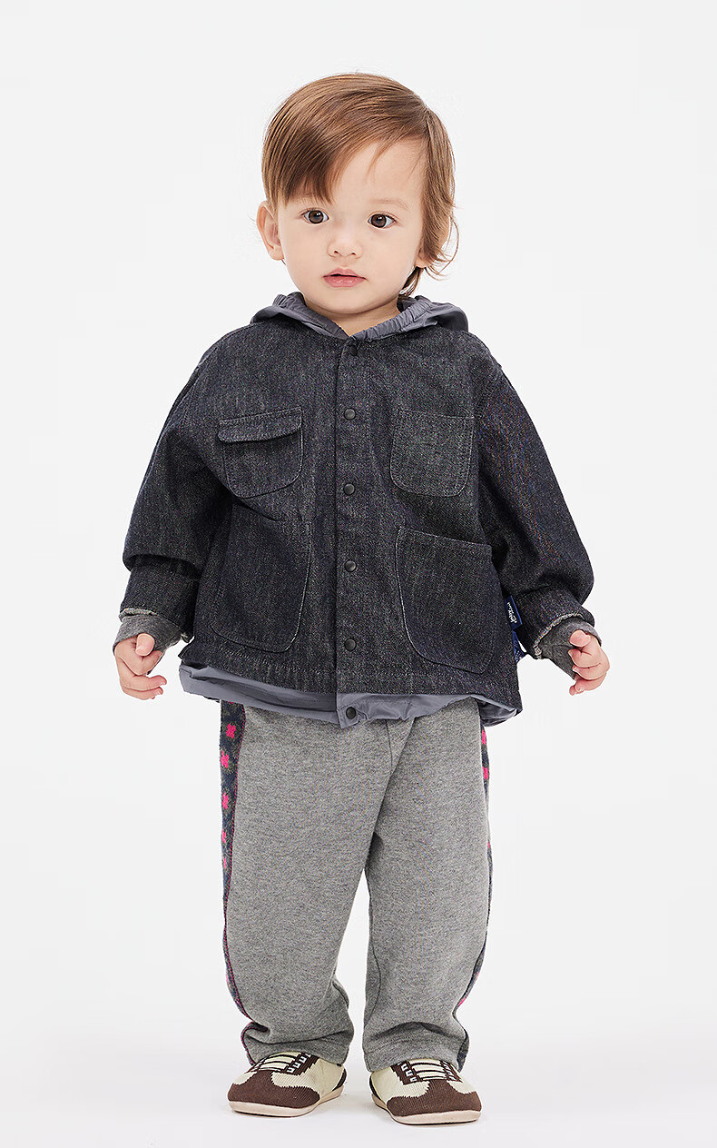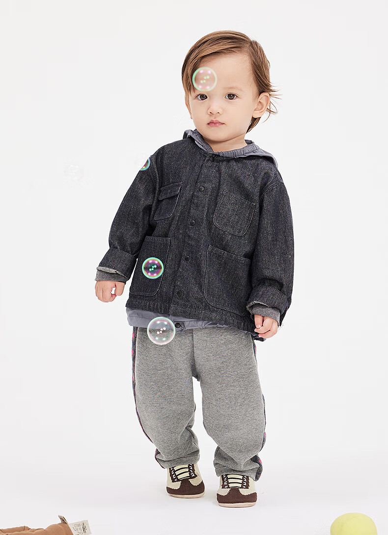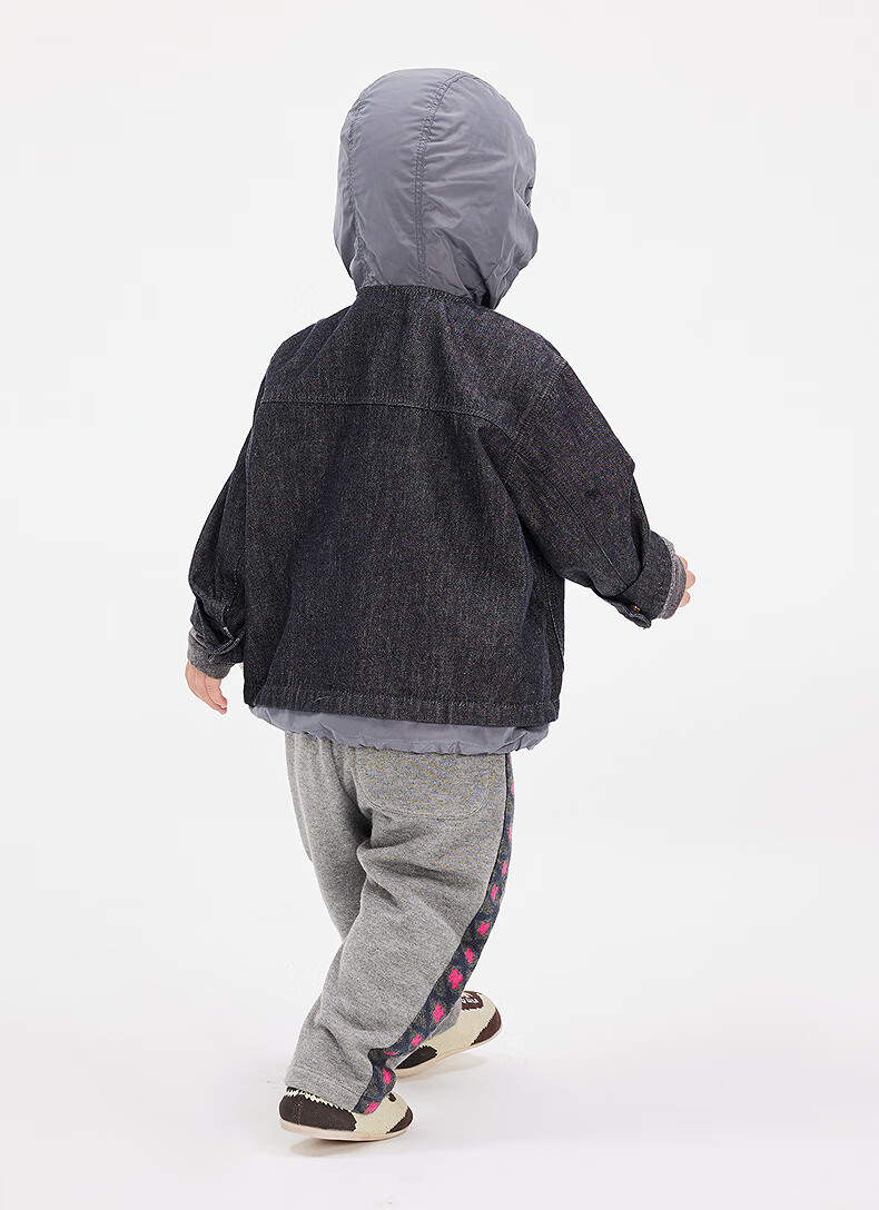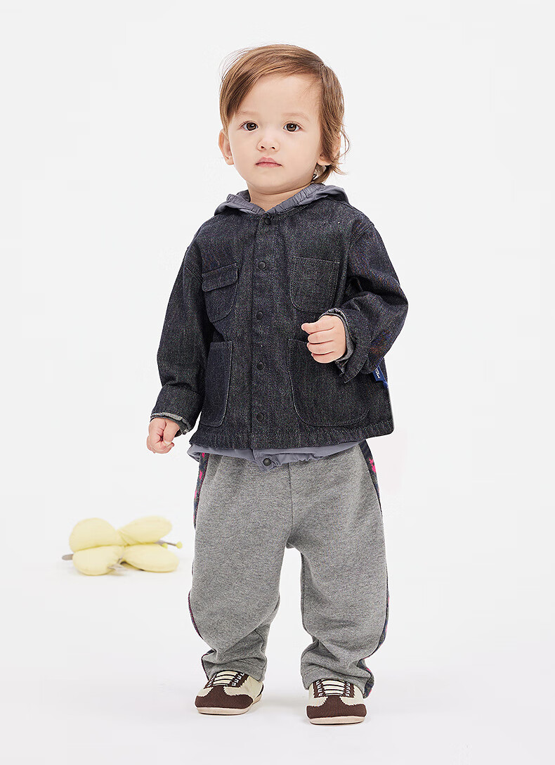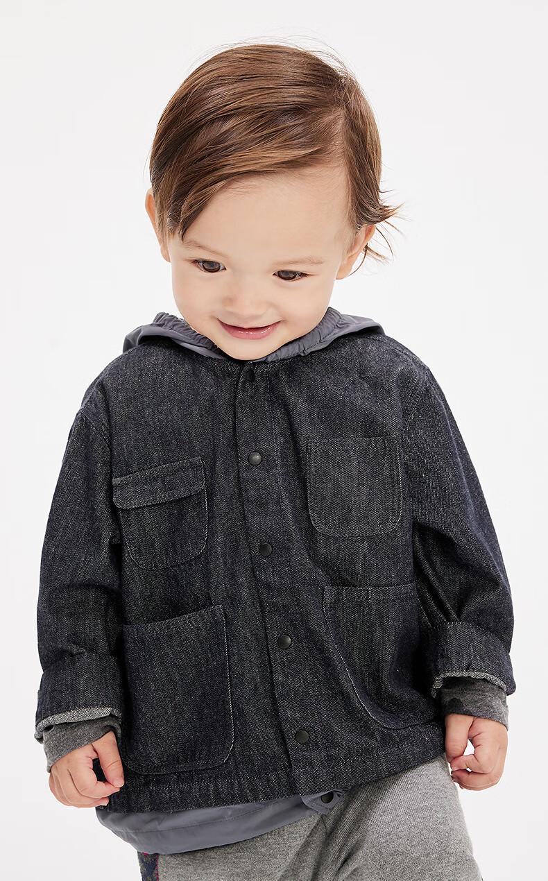Jnby by JNBY new model Jiangnan Buyi baby hooded denim jacket plus velvet jacket 25 spring boys and girls baby YP1610440 991/denim navy 80 cm