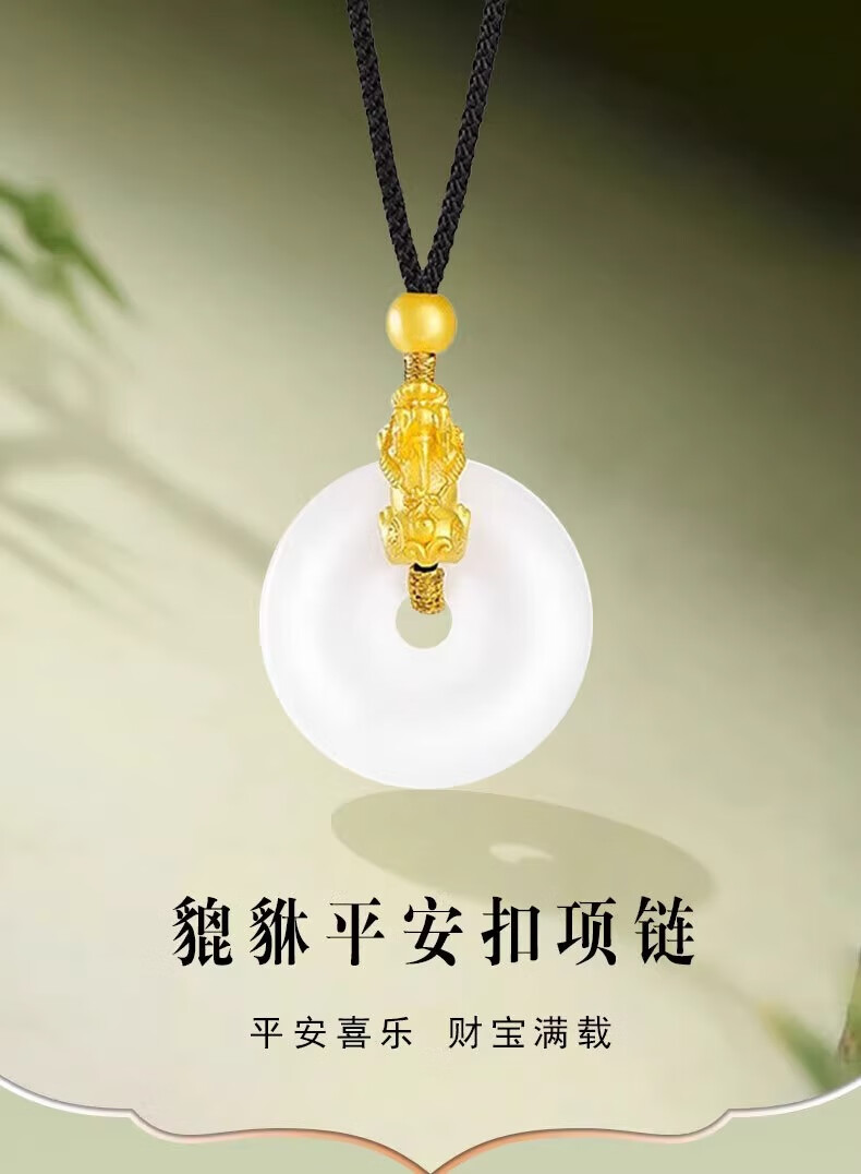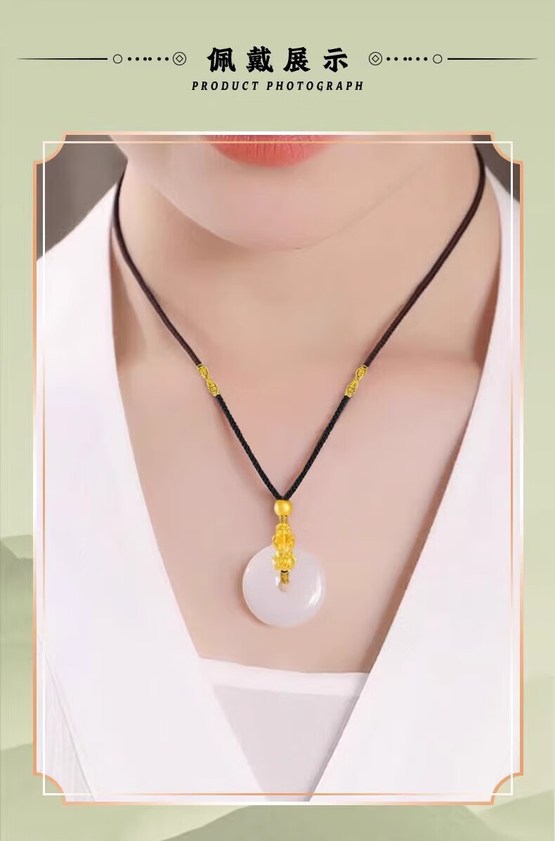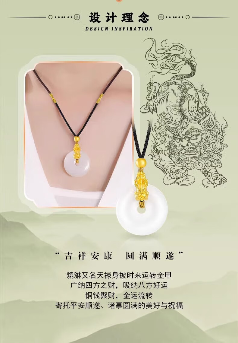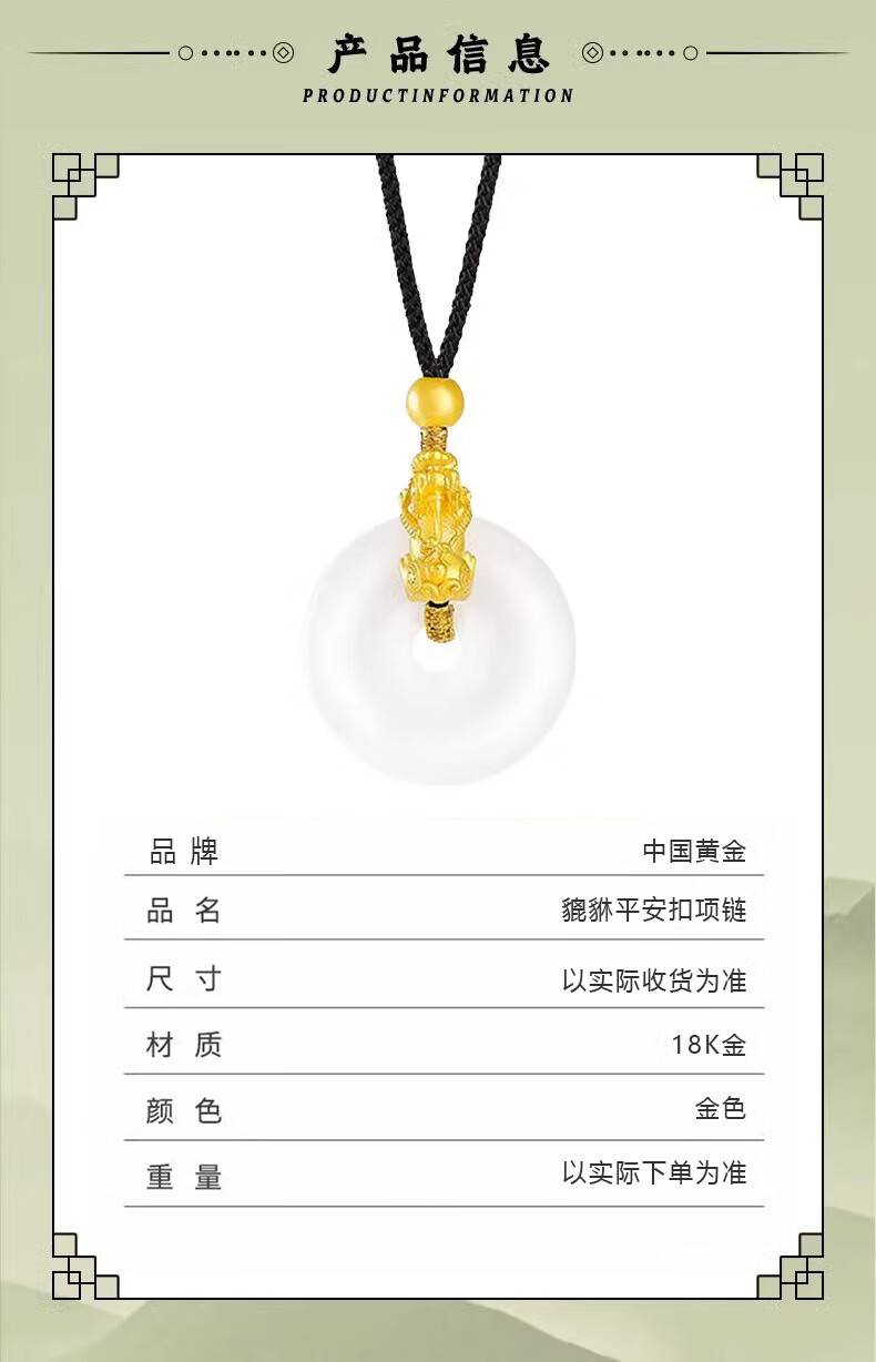 Chinese Gold 18K Gold Peace Buckle Necklace for Men and Women Pixiu Pendant Birthday Gift for Girlfriend, Boyfriend, Wife, Husband 18K Gold Pixiu Peace Buckle Necklace