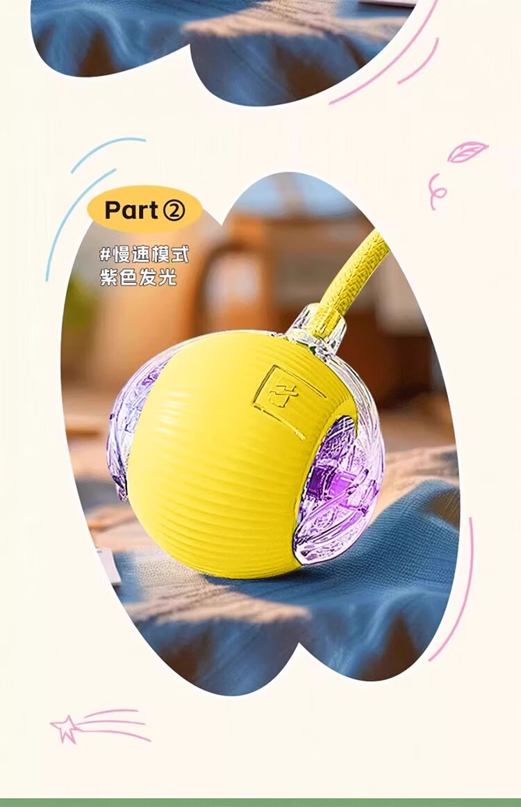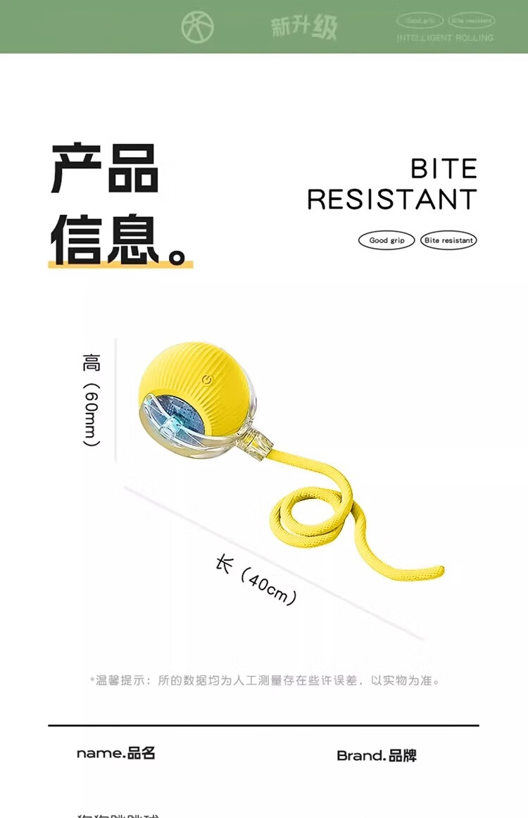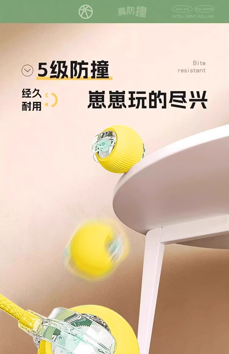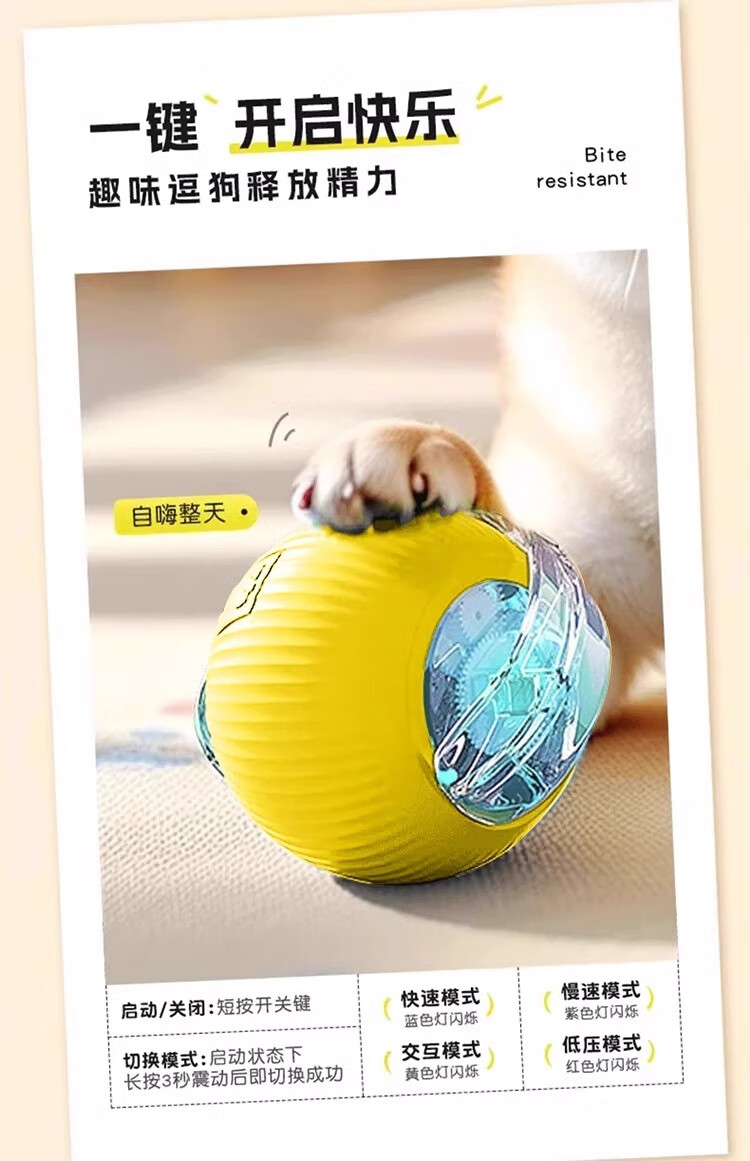 QiOh Dog Toy Ball, Automatic Dog Walking Ball, Intelligent Self-Entertainment, Bite-resistant Artifact, Physical Exhaust Dog Supplies, Yellow, Three Modes, USB Charging