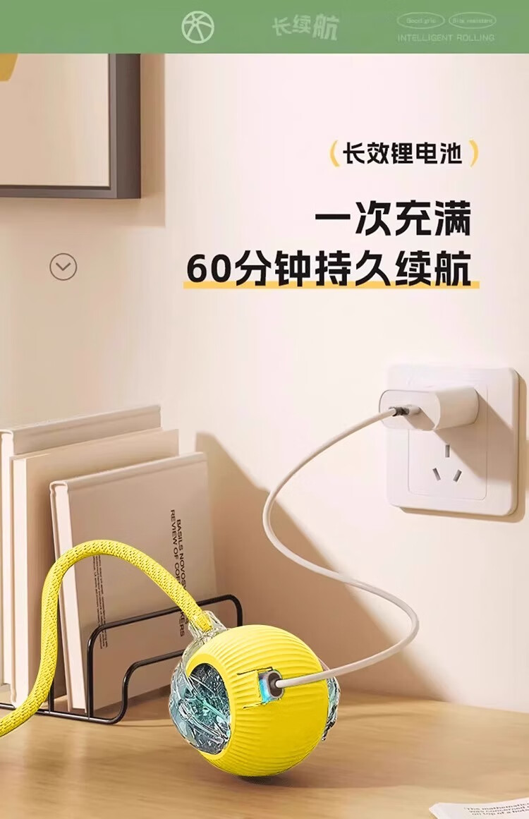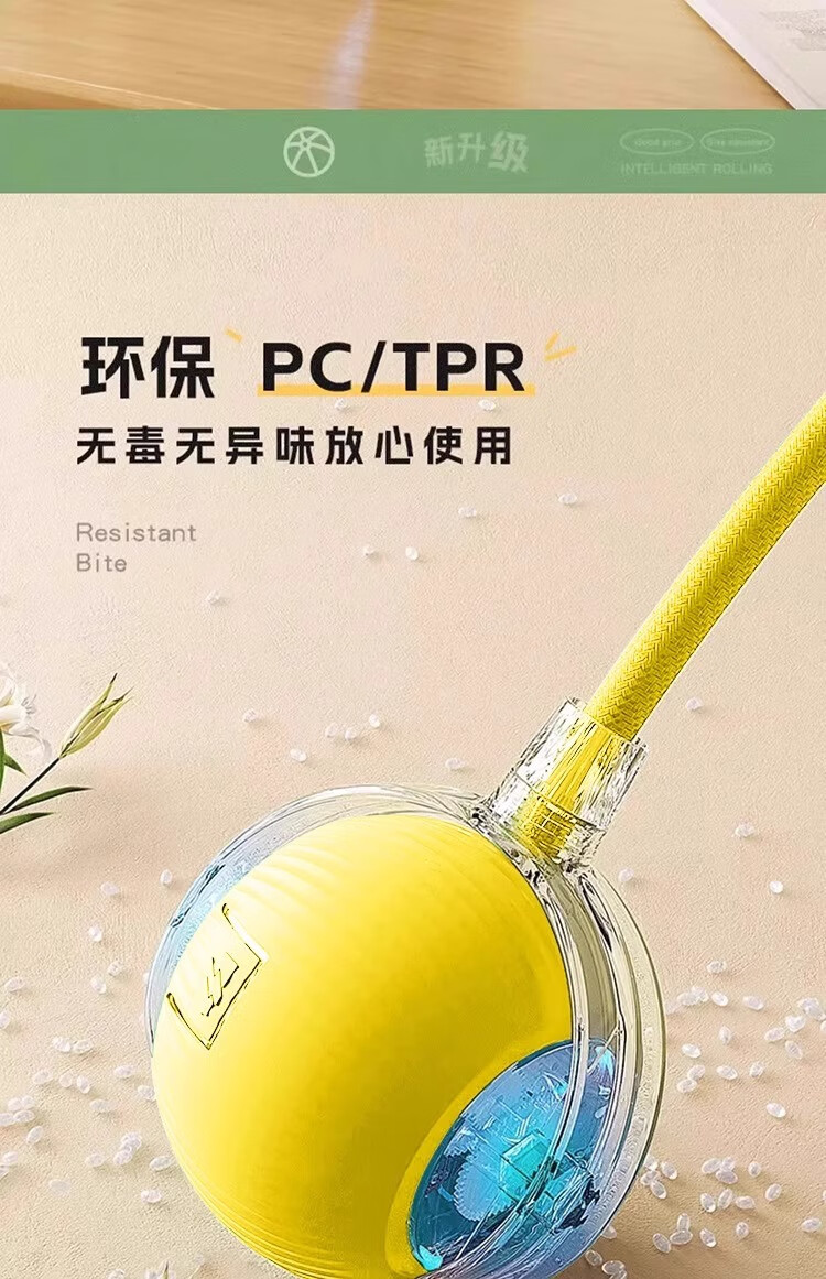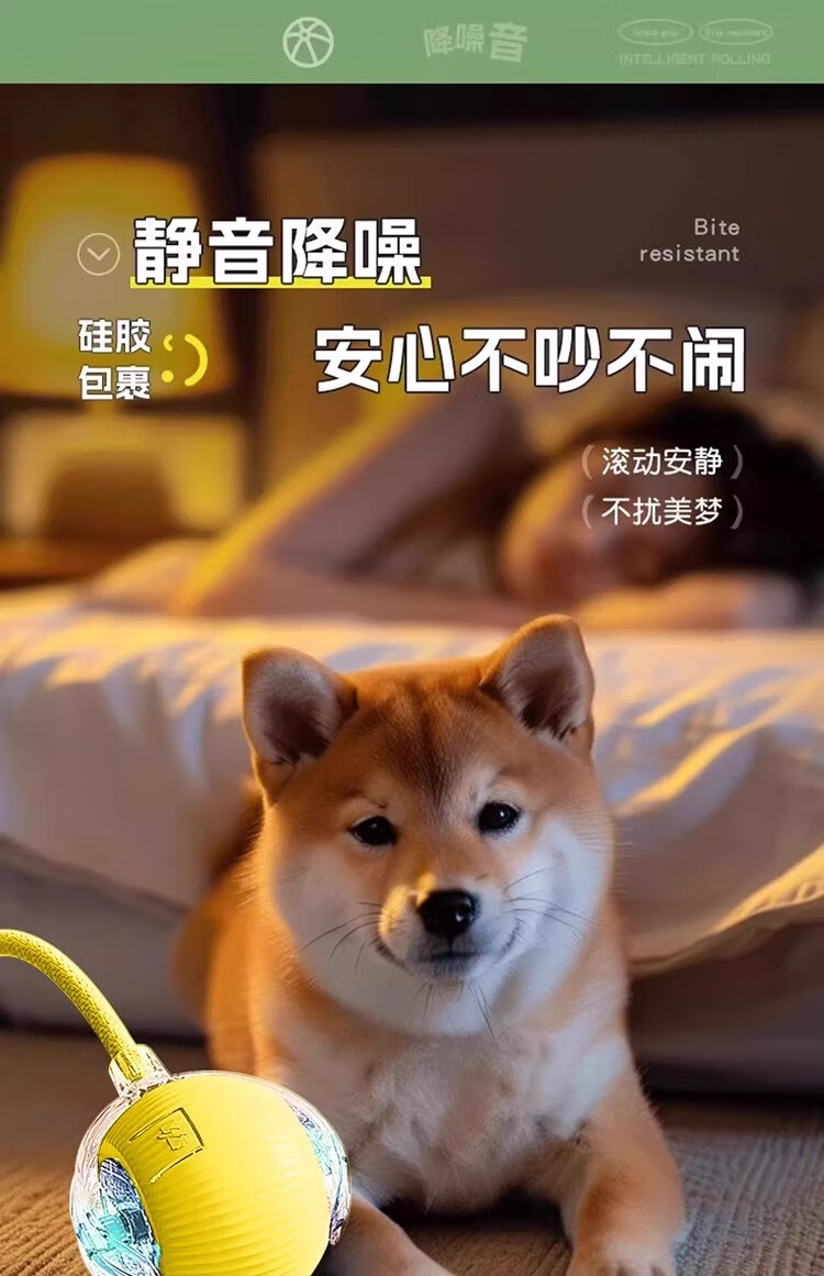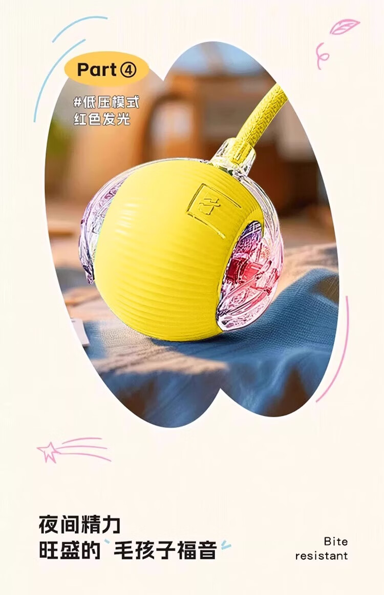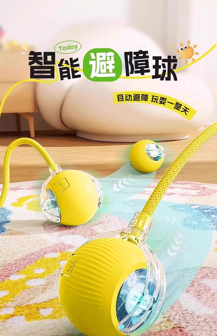 QiOh Dog Toy Ball, Automatic Dog Walking Ball, Intelligent Self-Entertainment, Bite-resistant Artifact, Physical Exhaust Dog Supplies, Yellow, Three Modes, USB Charging