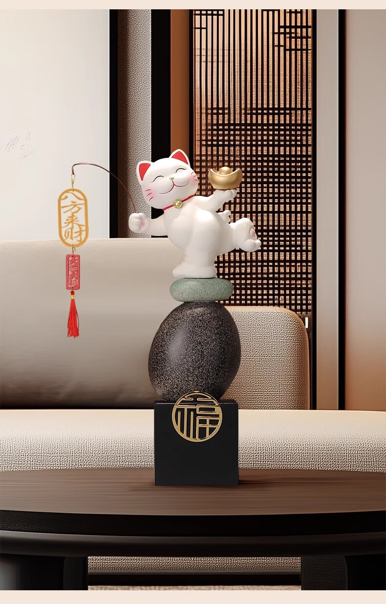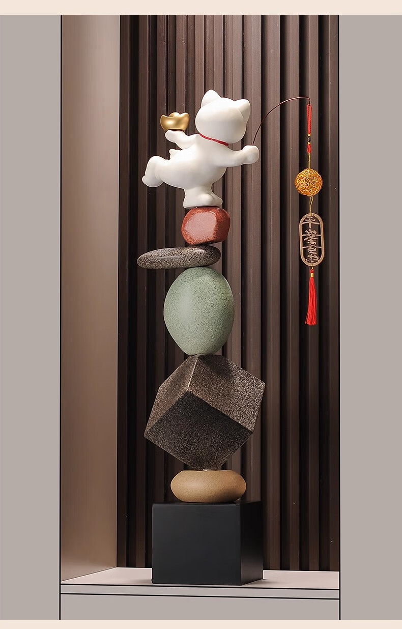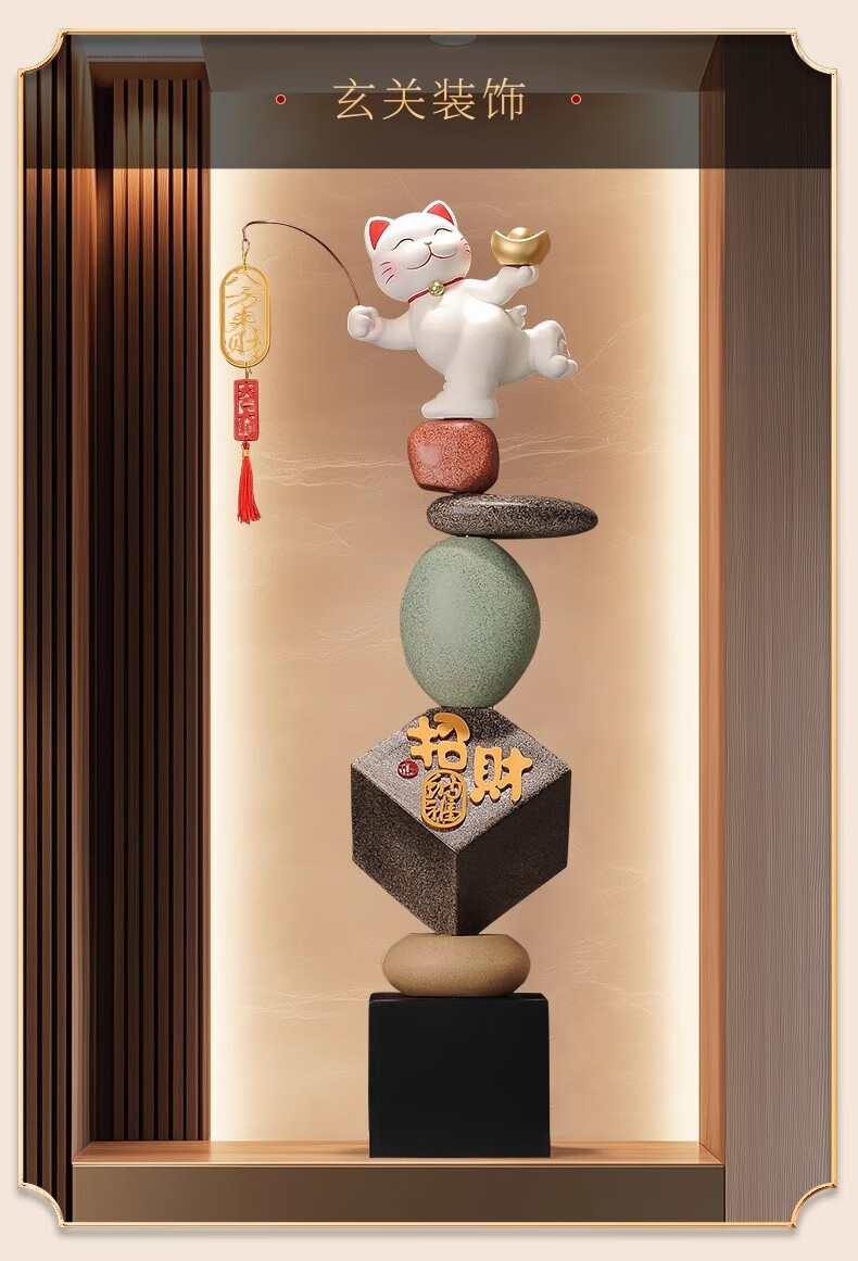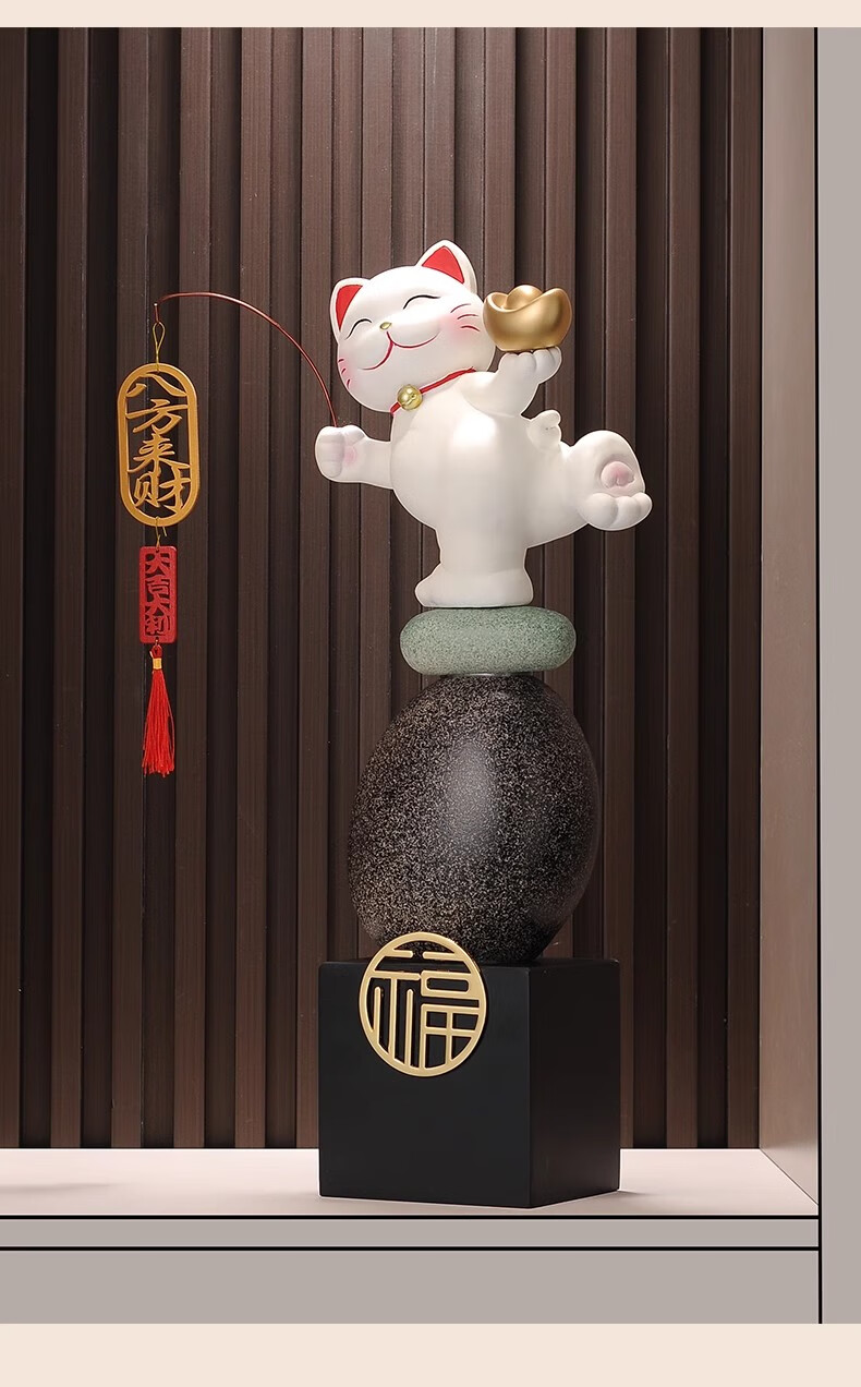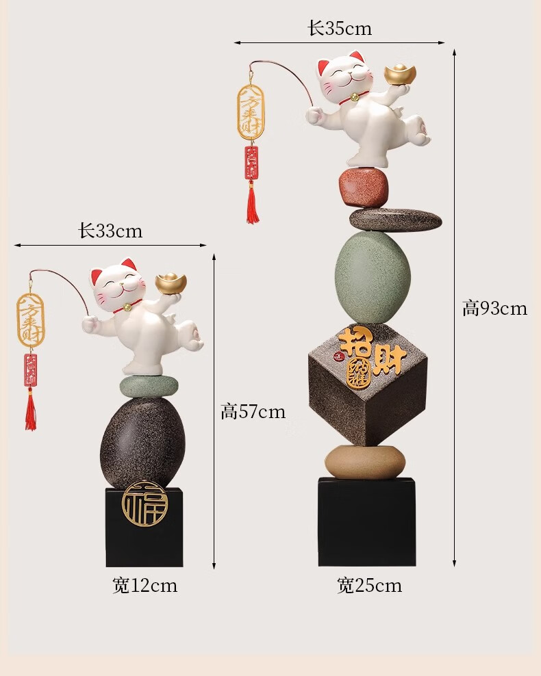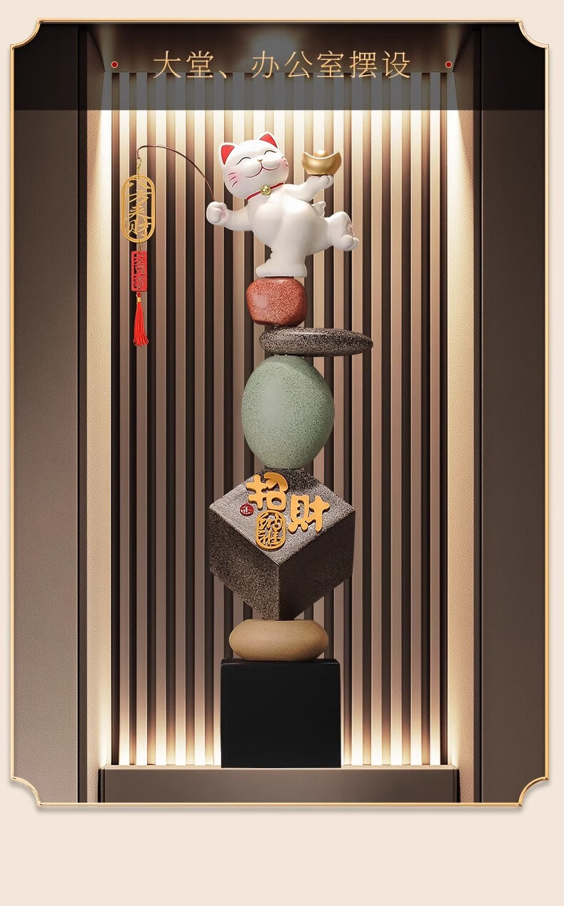 Yunya enters the entrance hall to attract wealth and luck, large-scale floor-standing ornaments for opening, living room and office decorations for the opening of the house, Lucky Cat Stone for fortune (height 93cm)