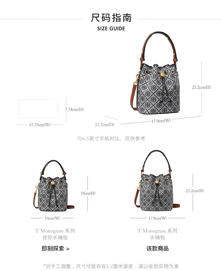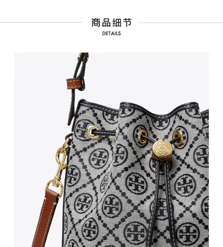 Tory Burch Valentine's Day Gift T MONOGRAM Jacquard Crossbody Bucket Bag Women's Bag 166414 Tory Navy Blue 405 OS