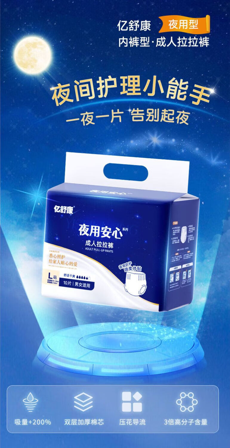 Yishukan adult pull-up pants, night-use diapers for the elderly, thickened underwear-style diapers for the elderly, men and women, night-use type, adult pull-up pants, M10 tablets