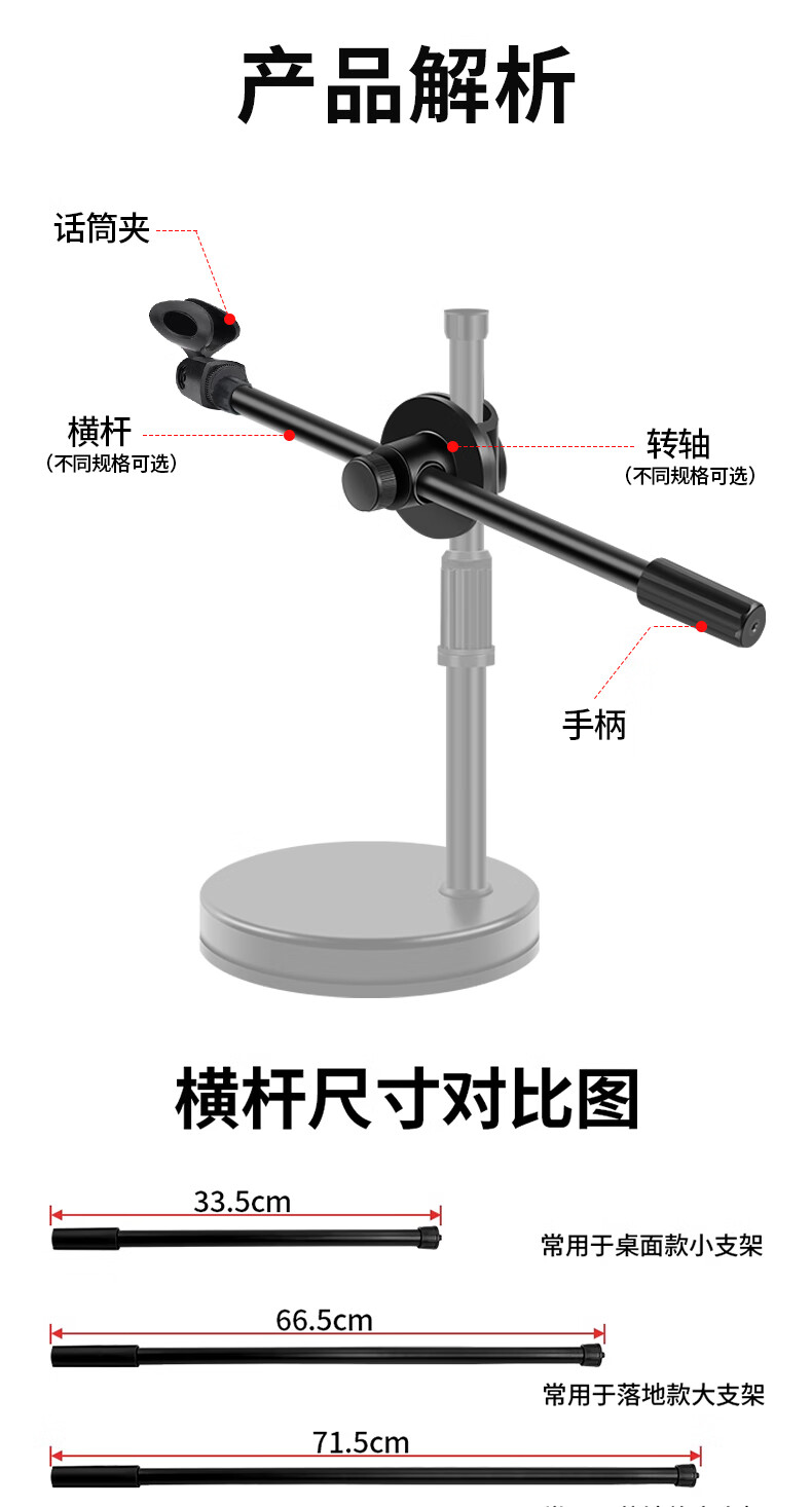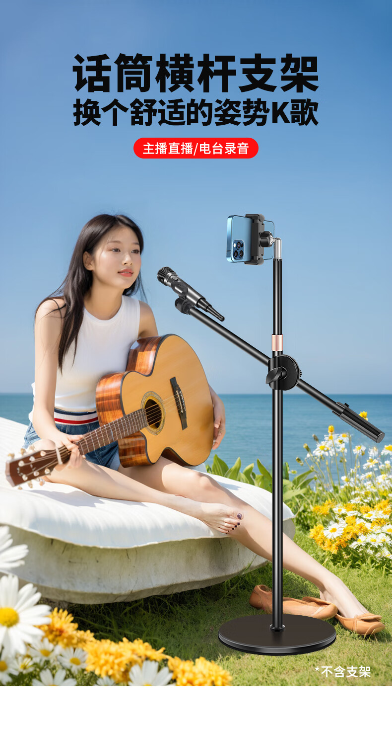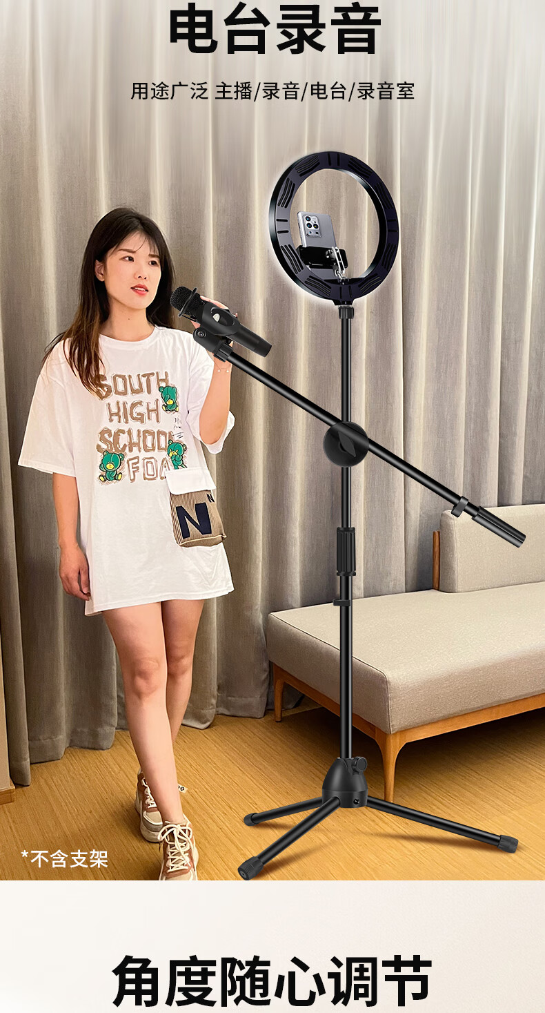 Duobolai microphone stand floor-standing tripod cantilever condenser microphone live broadcast microphone stand mobile phone integrated shock mount clamp aperture 19mm* crossbar shaft ZP60+crossbar+microphone clip