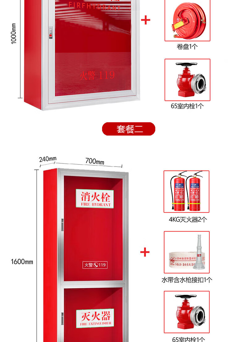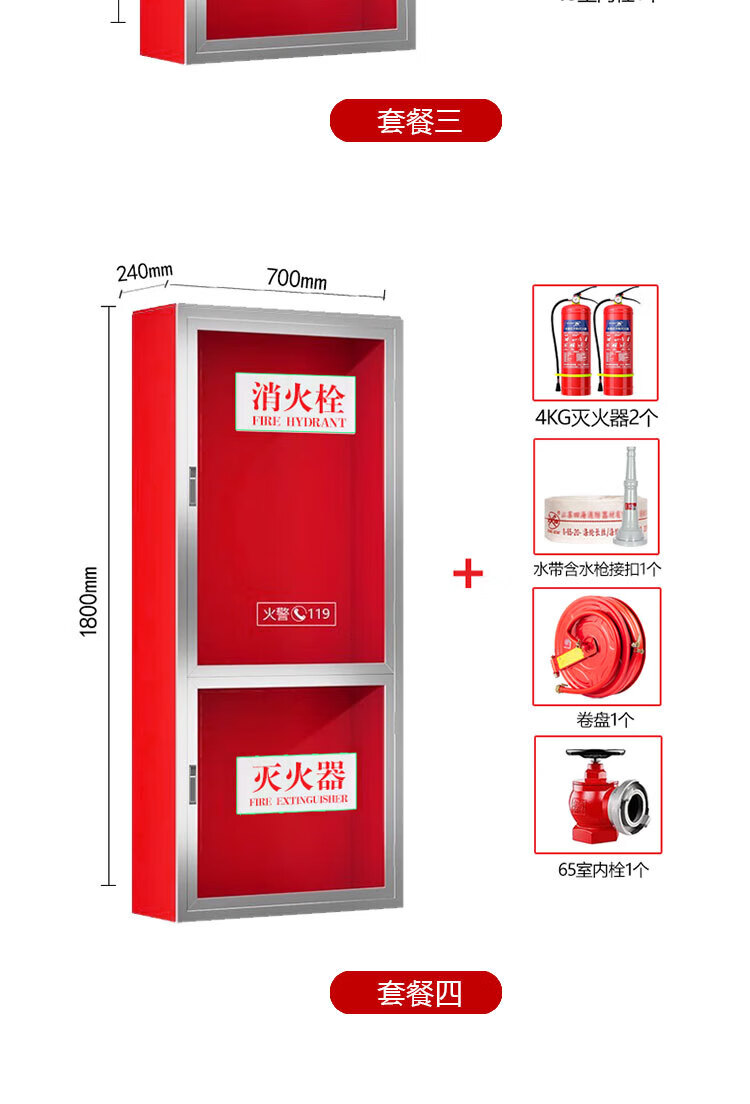 Fire hydrant box cabinet thickened fire self-rescue hose reel wall-mounted box shopping mall indoor fire hydrant box complete set 800*650*240 fire hydrant box
